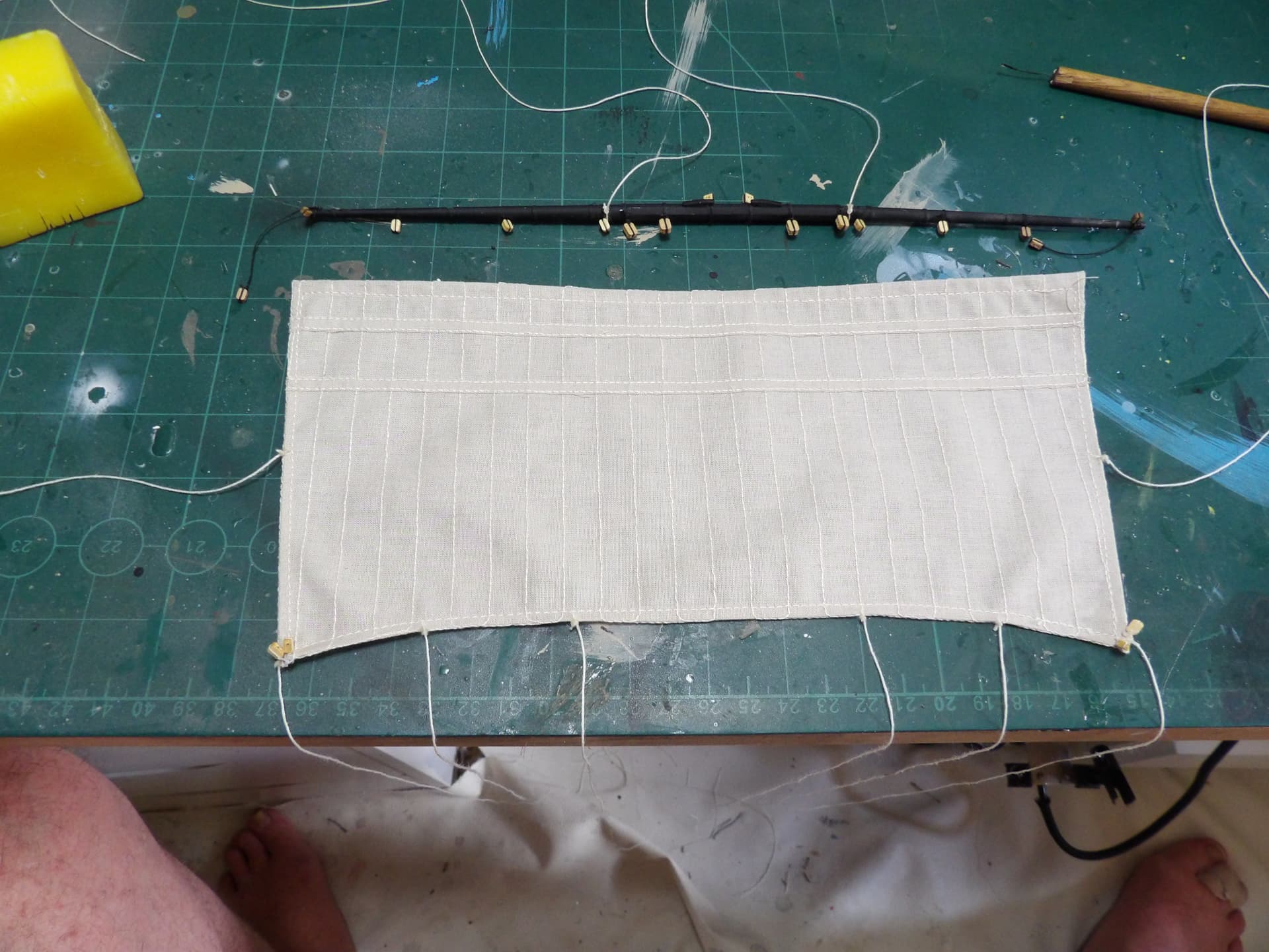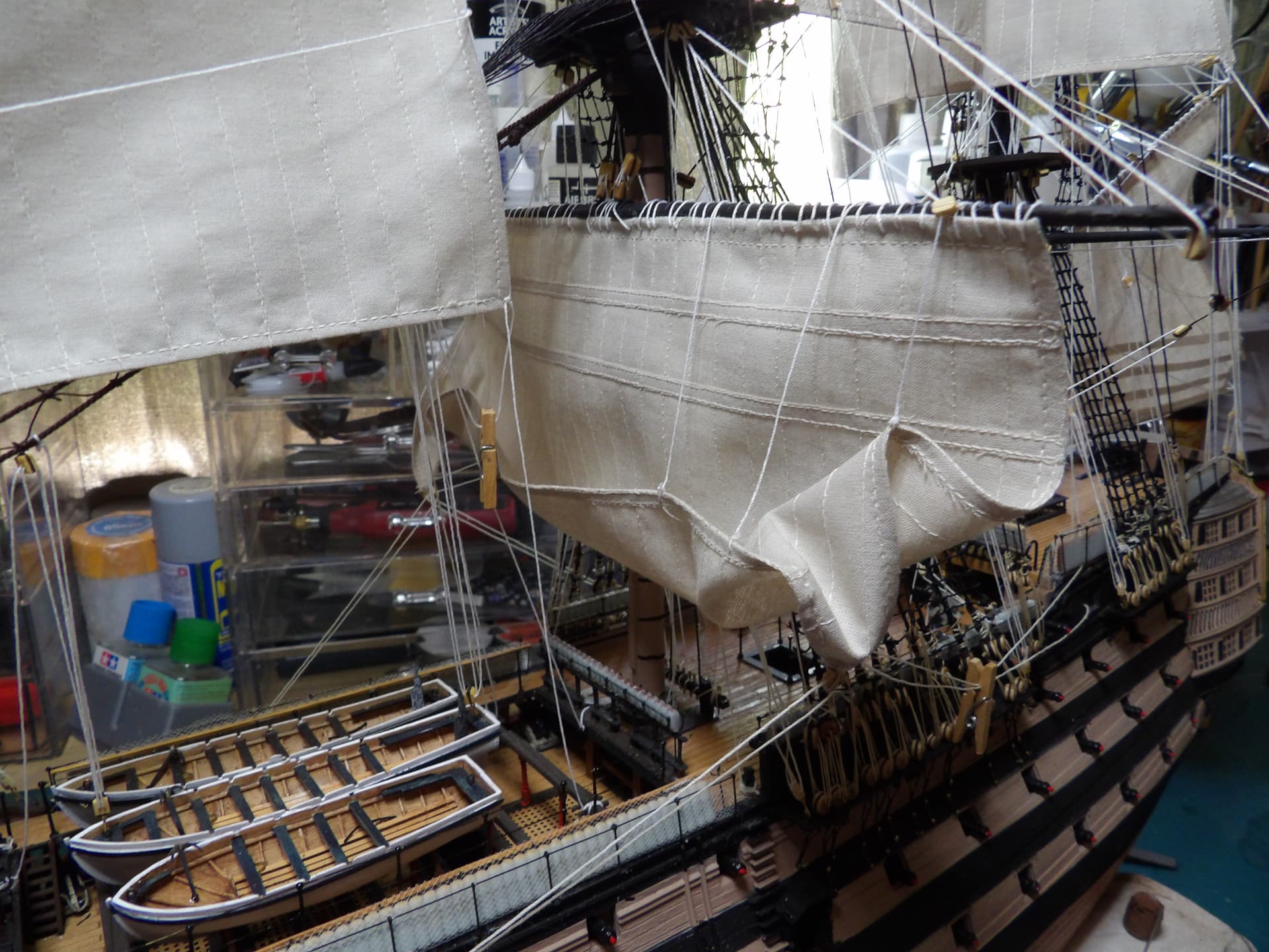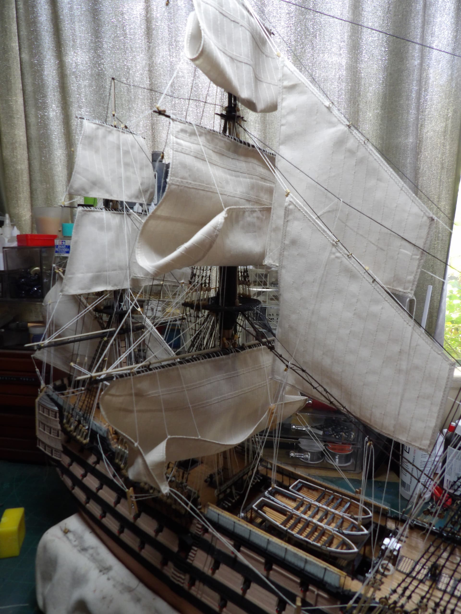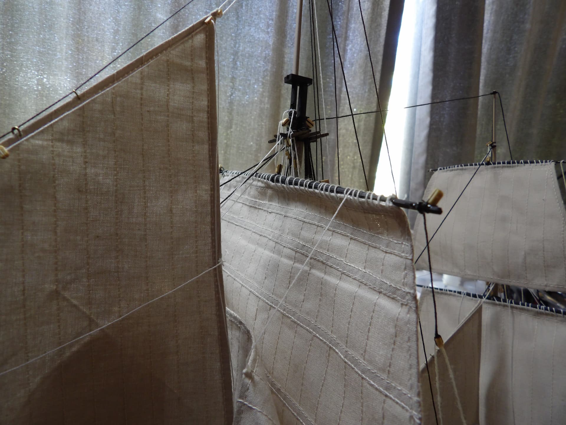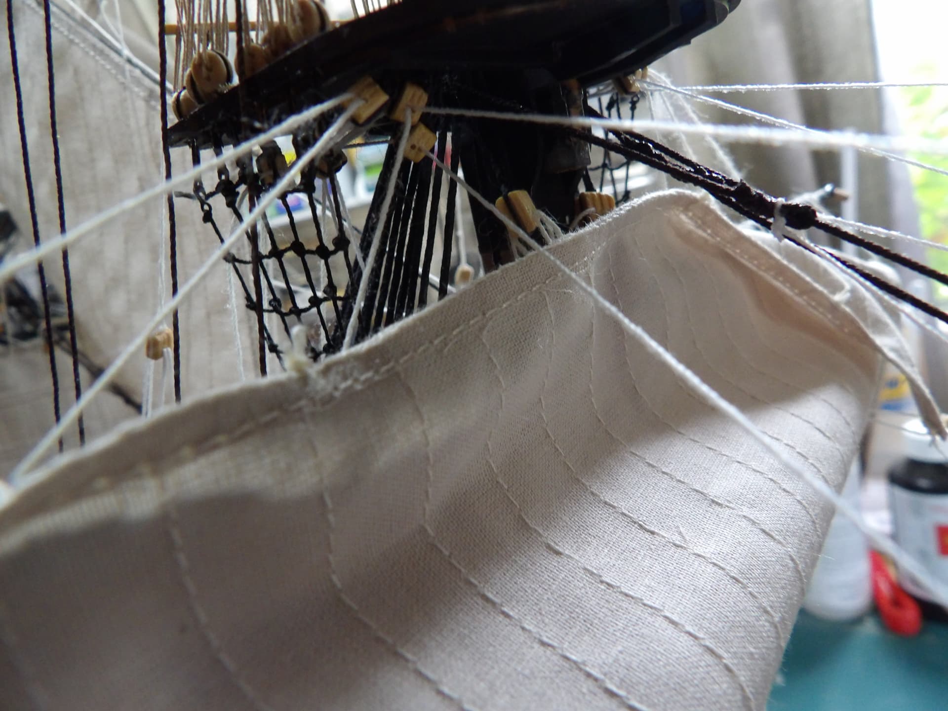 the main topsail is in place , it’s not tied down yet , I needed a break after this .