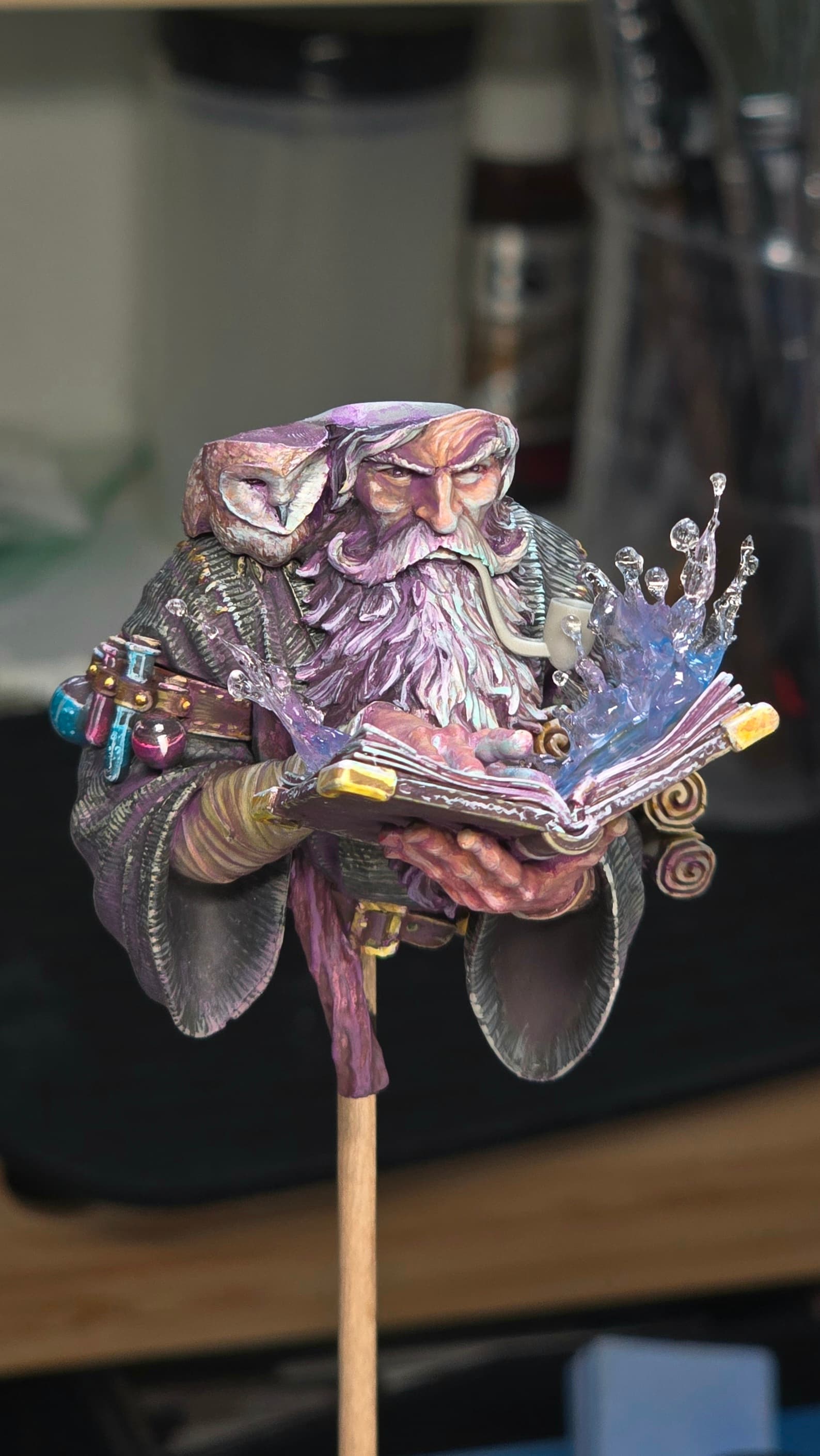 I think the real wizard here is you. The effect you’ve managed on the vials is top notch. I can’t believe they are solid resin and not clear pieces. Looking forward to the final product.