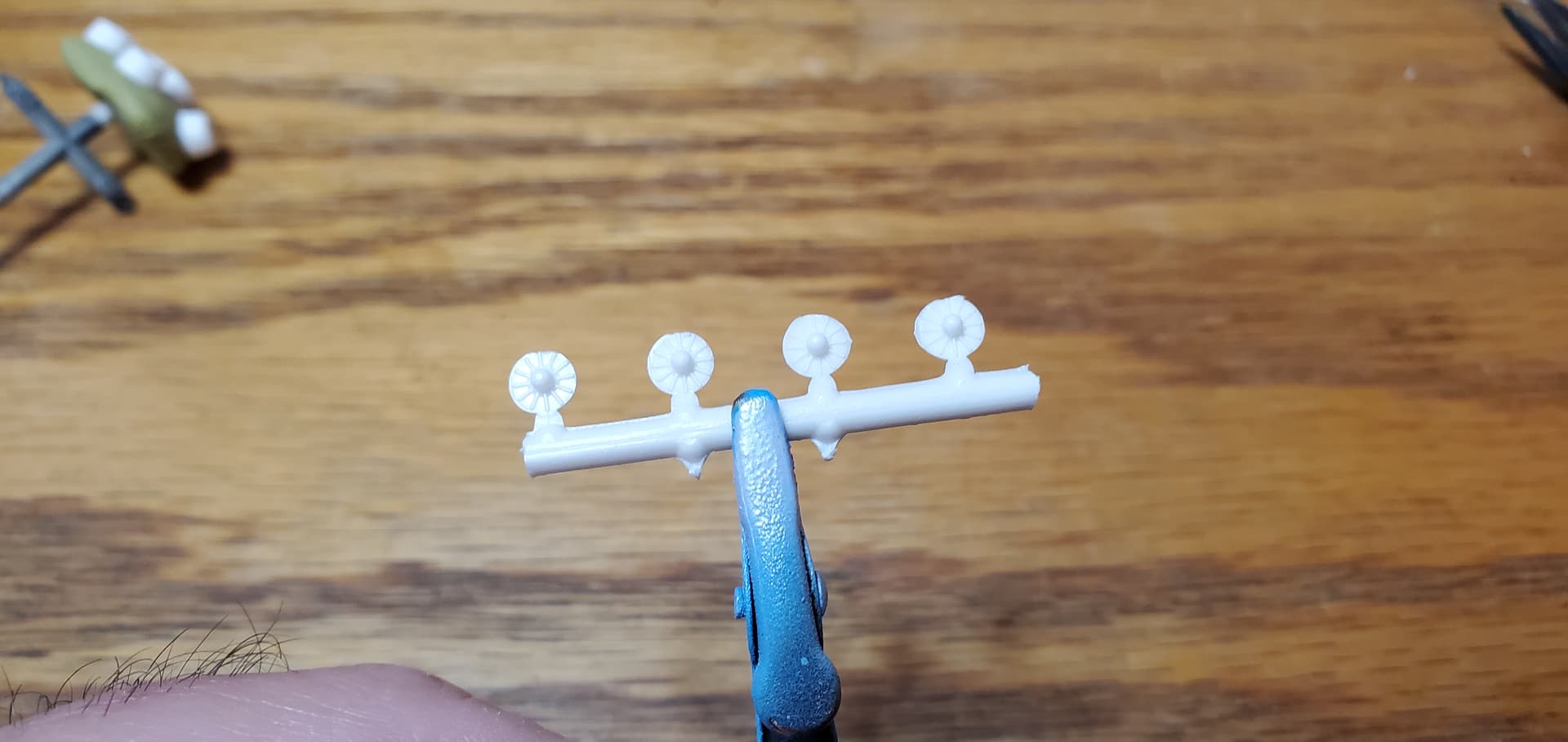 To start the build I attached the two lower pieces and glued the two halves of the stand together. Included a quick test fit of how it will look when connected to the stand. Lastly today I clipped off the exhausts and the compressor fans. A good start to what should be a quick build.