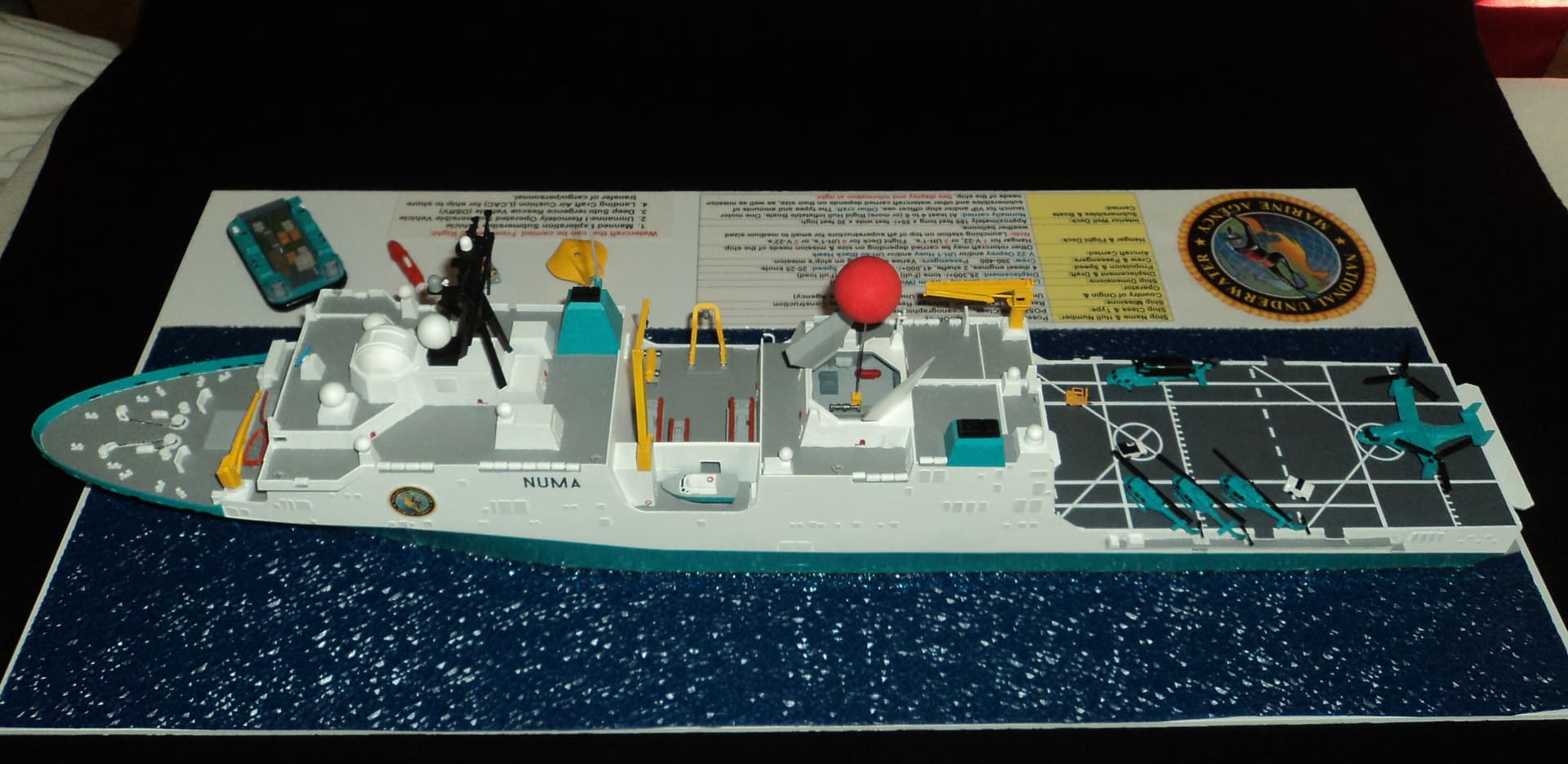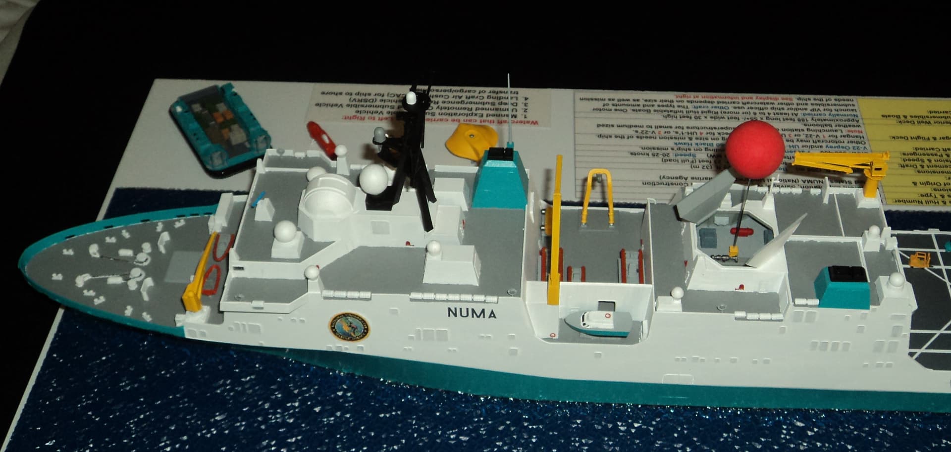 Finally finished this morning my what if fictional 1/350 large scale NUMA (National Underwater & Marine Agency) oceanographic research and exploration ship based on the Clive Cussler novels.