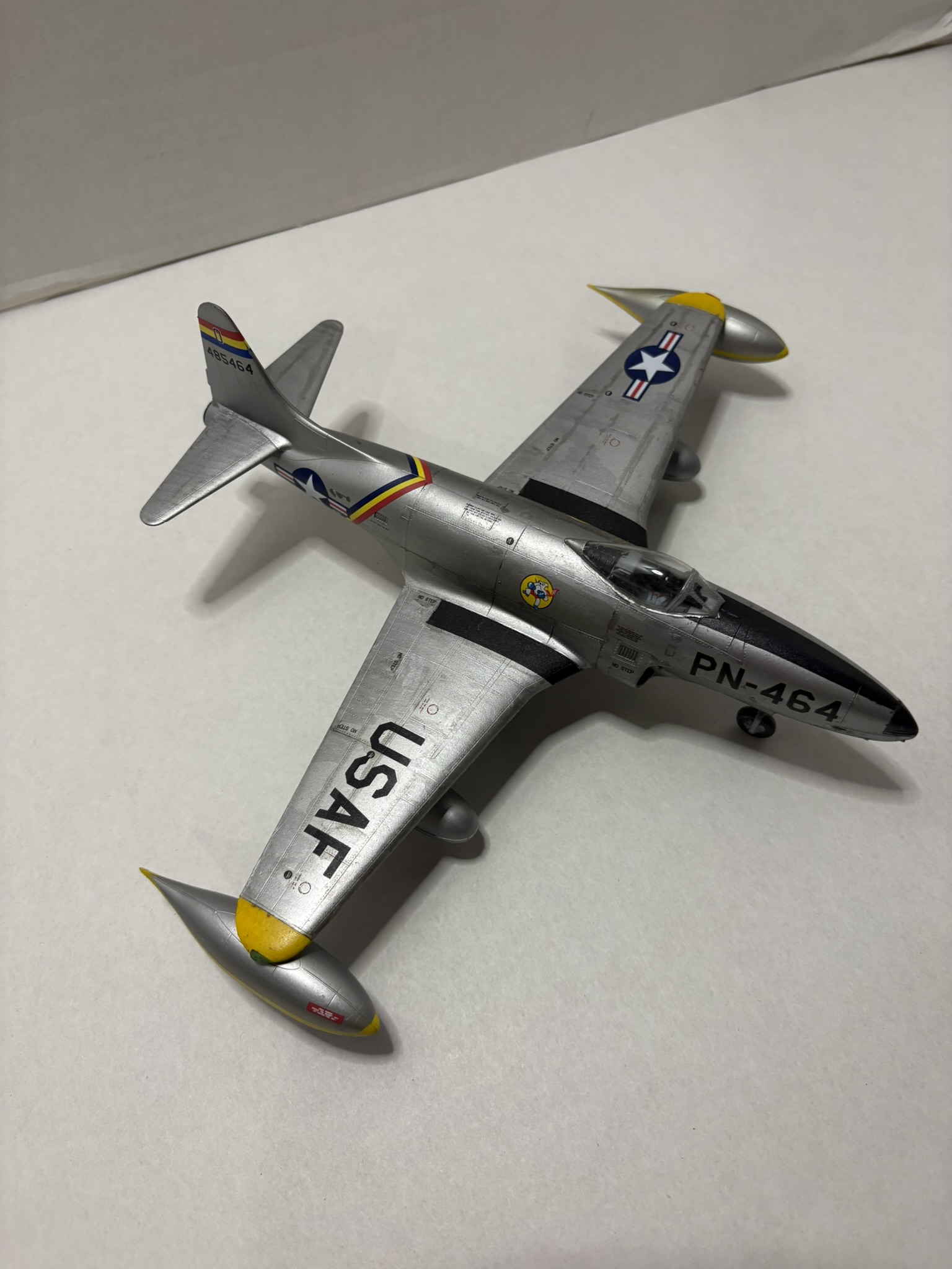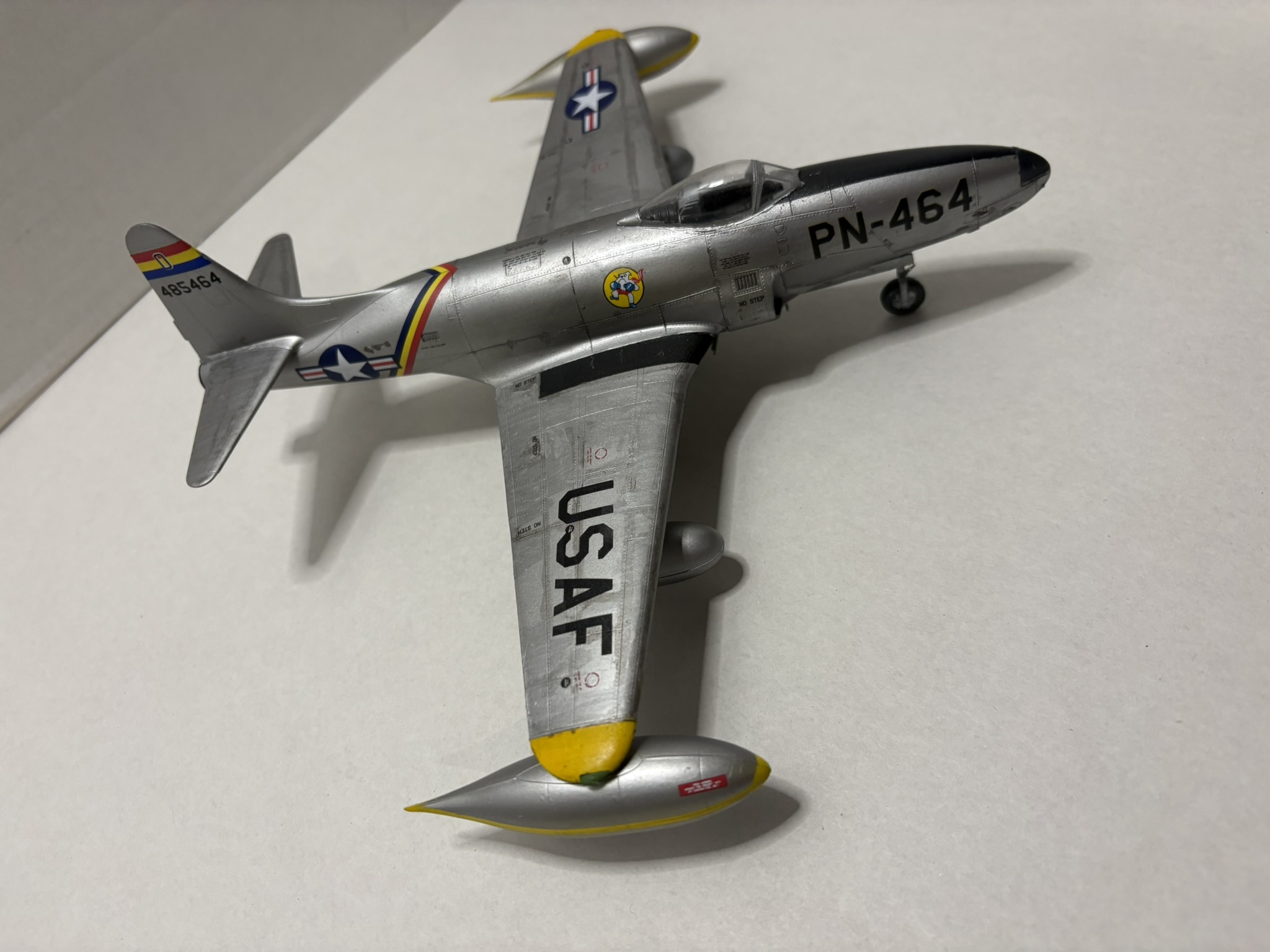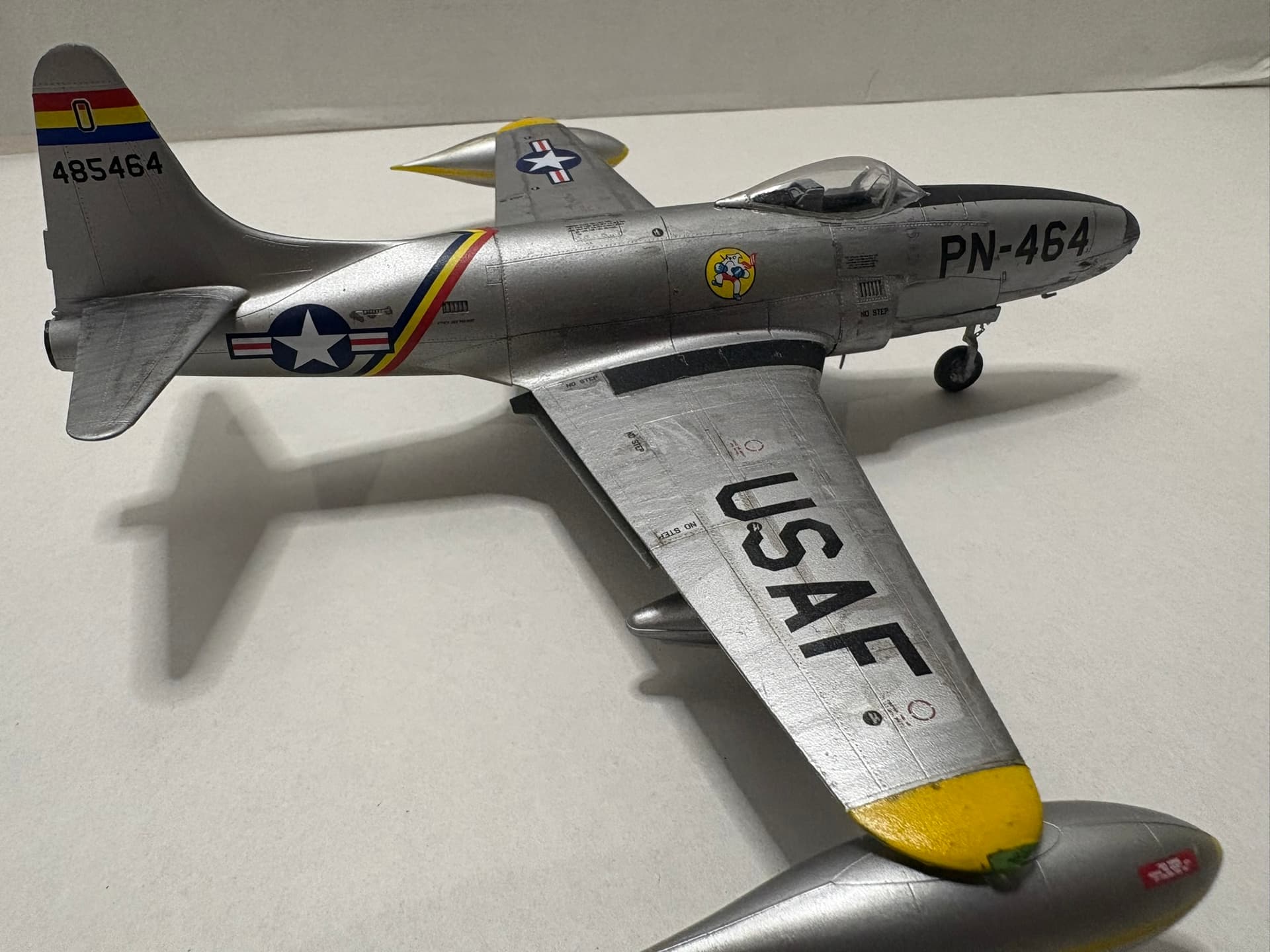 Took a while to finish this F-80 as I was trying a few new things and had a bit of analysis paralysis at points. First time doing photoetch, first time natural metal, first time trying Tamiya panel liner… which was a disaster.