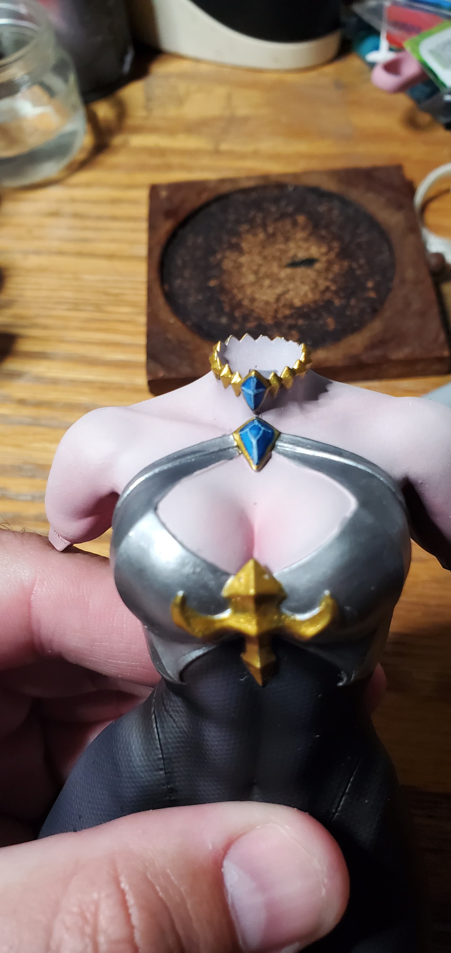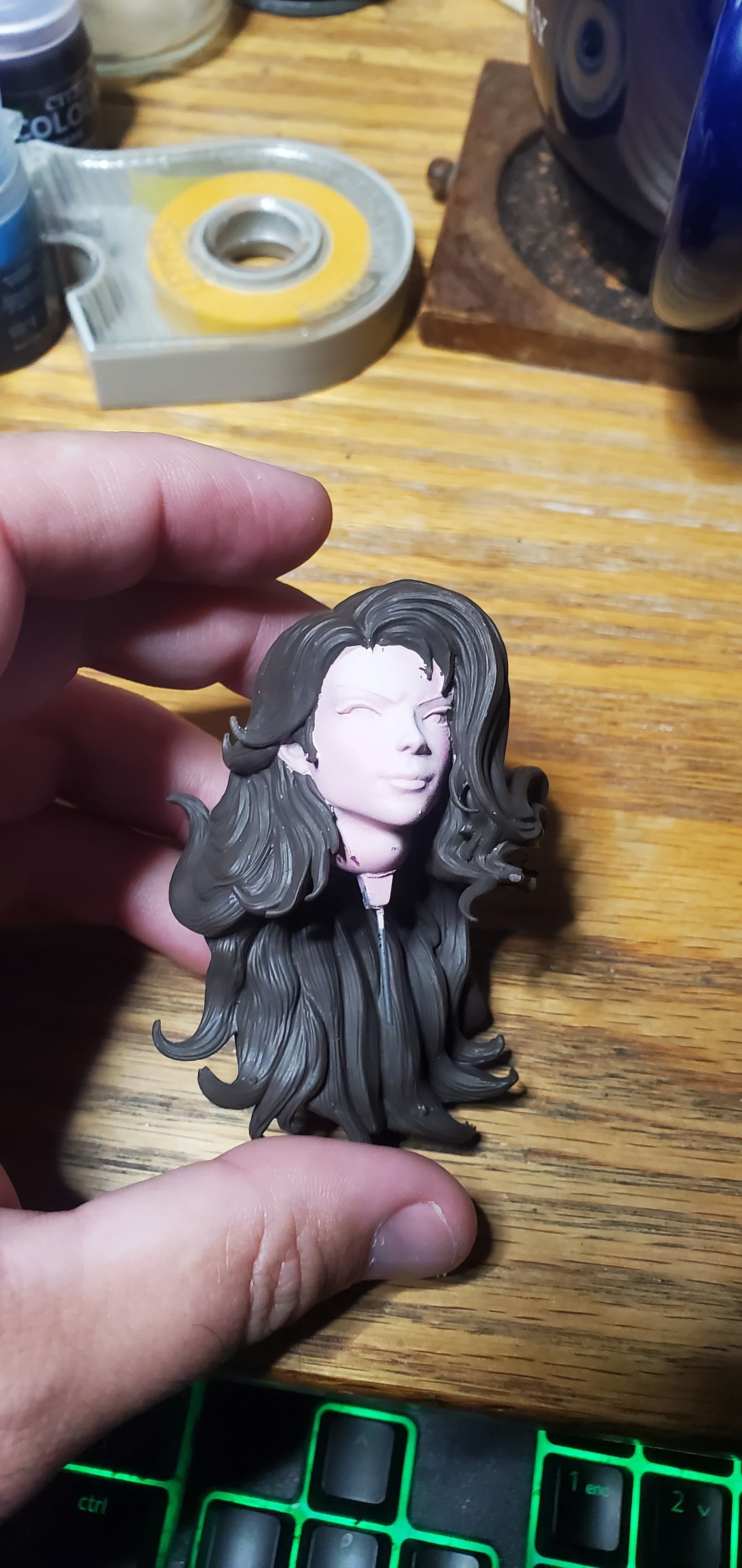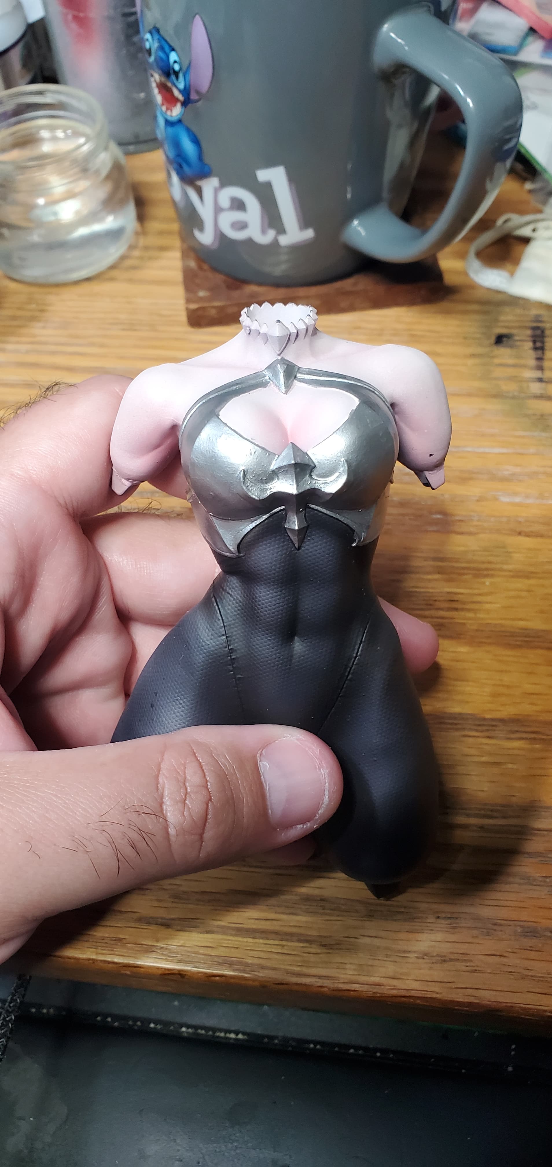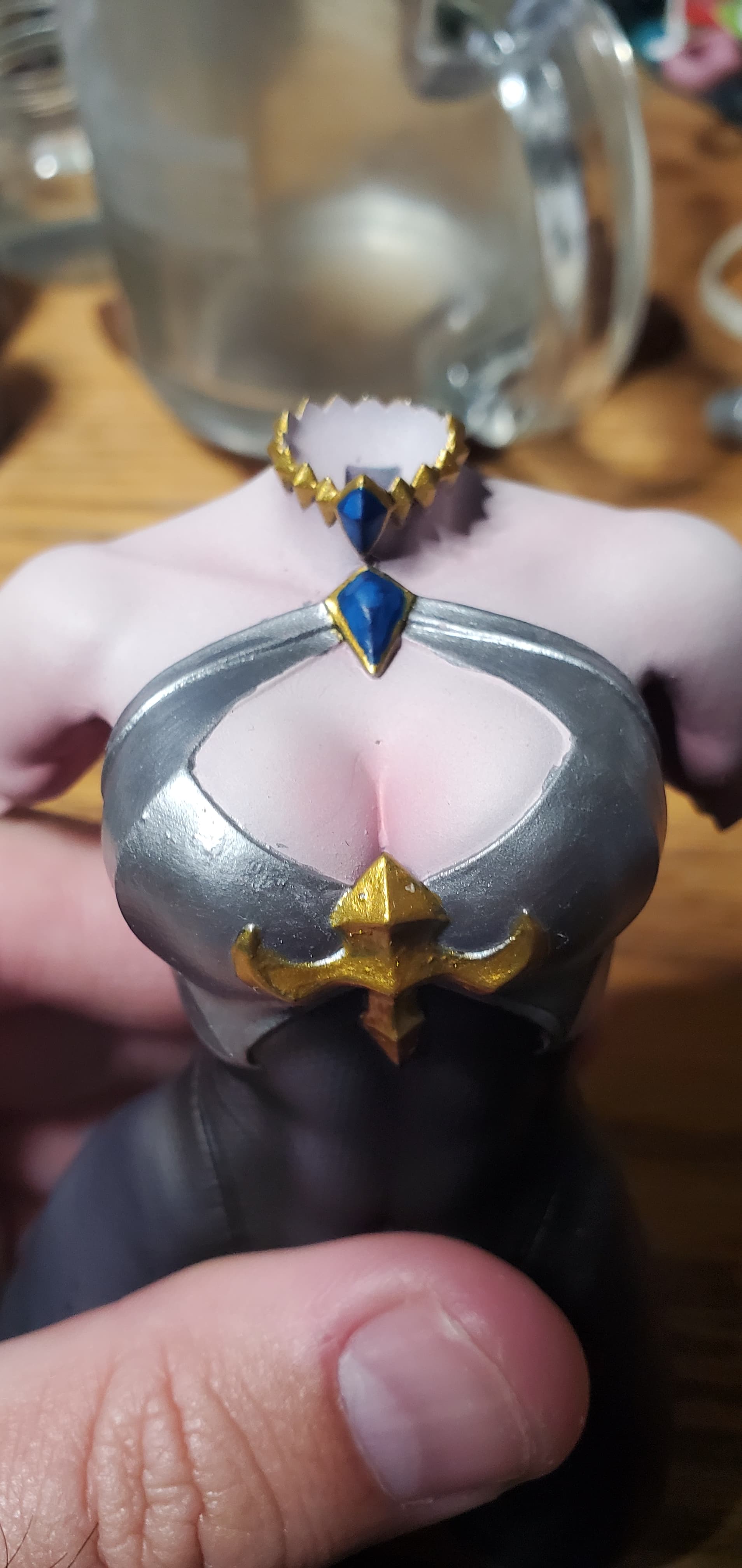 So first up, aside from the areas that will need repainting, a couple of the attachment point broke. These should be easy to fix with some CA glue. No real problem there. Where i have a more serious problem is the hair. The small breaks i can fix relatively easily to make then appear as natural terminations. Its this large break where i am unsure what to do. Its too thick to easily sand to an end, i really dont want to try and create a new extension (both for doubts on my ability to make it look natural and time constraints as i would still like to try and get her done by the 7th of June to make the contest). What i am leaning towards is using a dremel to reshape the end some first and then truncate it. However i would like to hear some other opinions first on how i might proceed, see if there is another solution i am not seeing.
