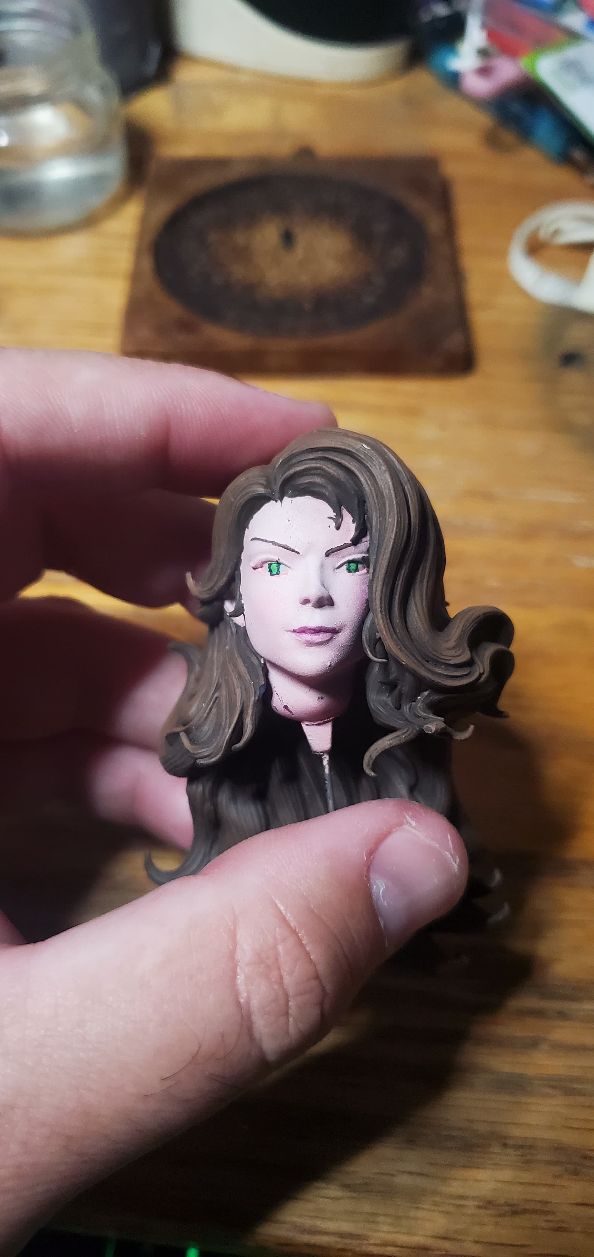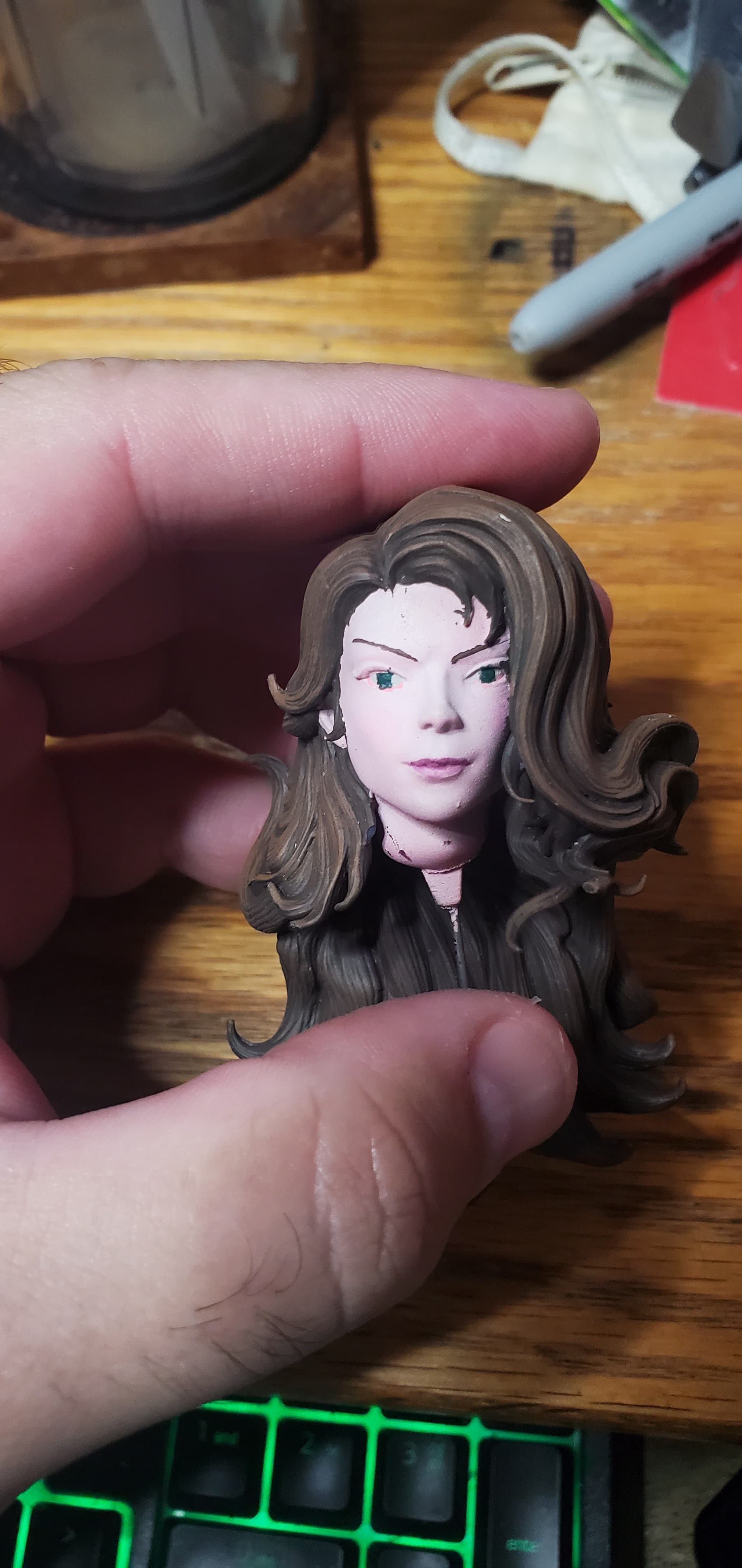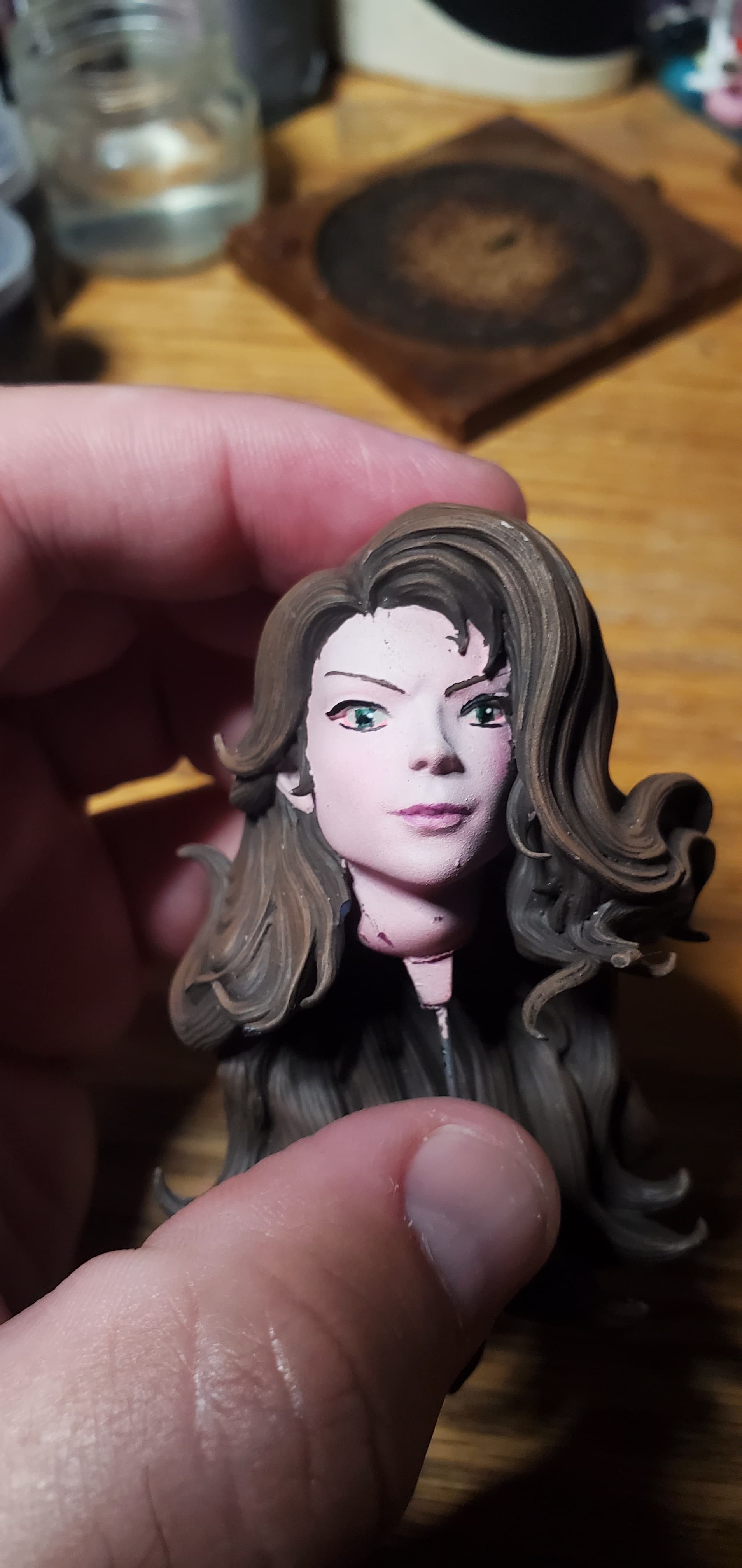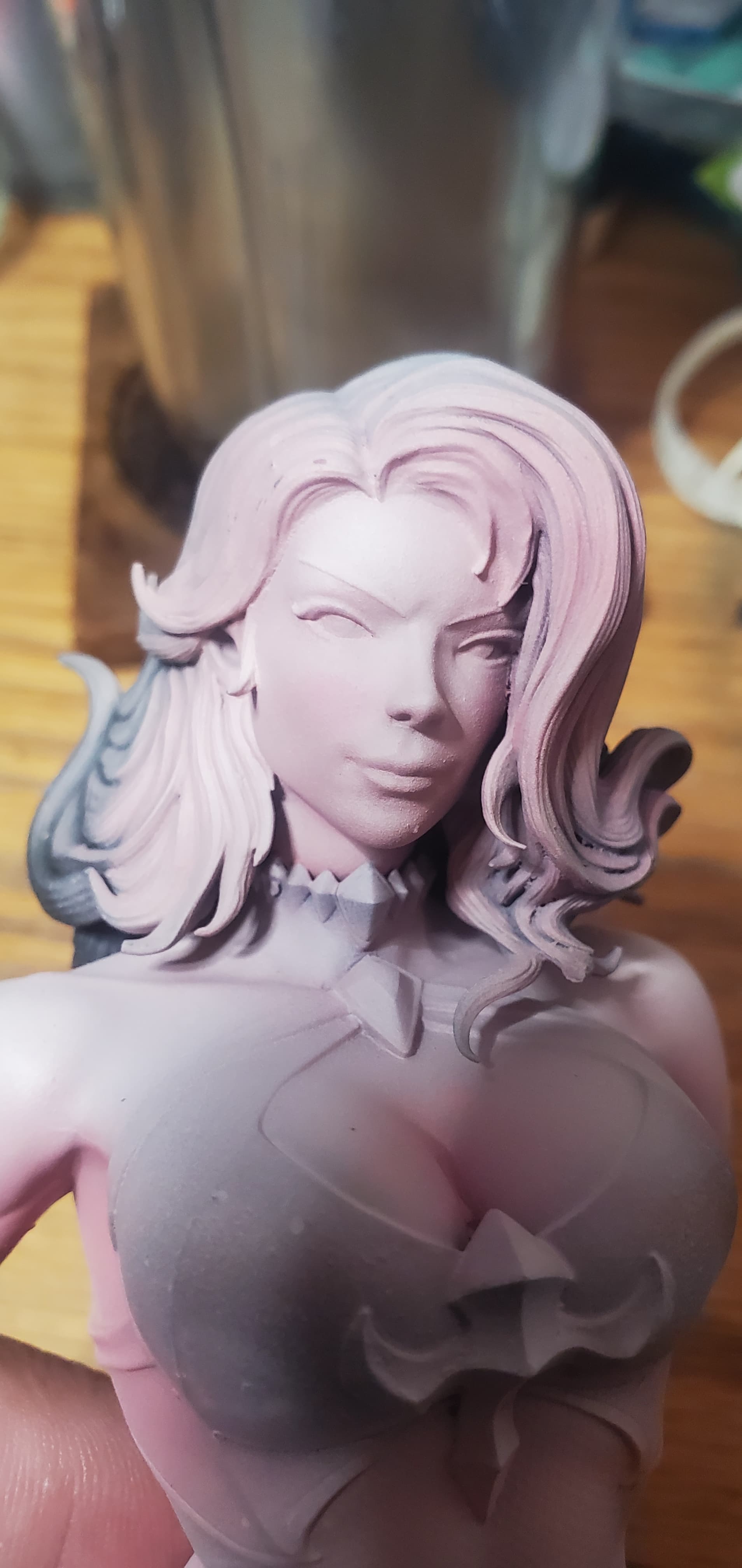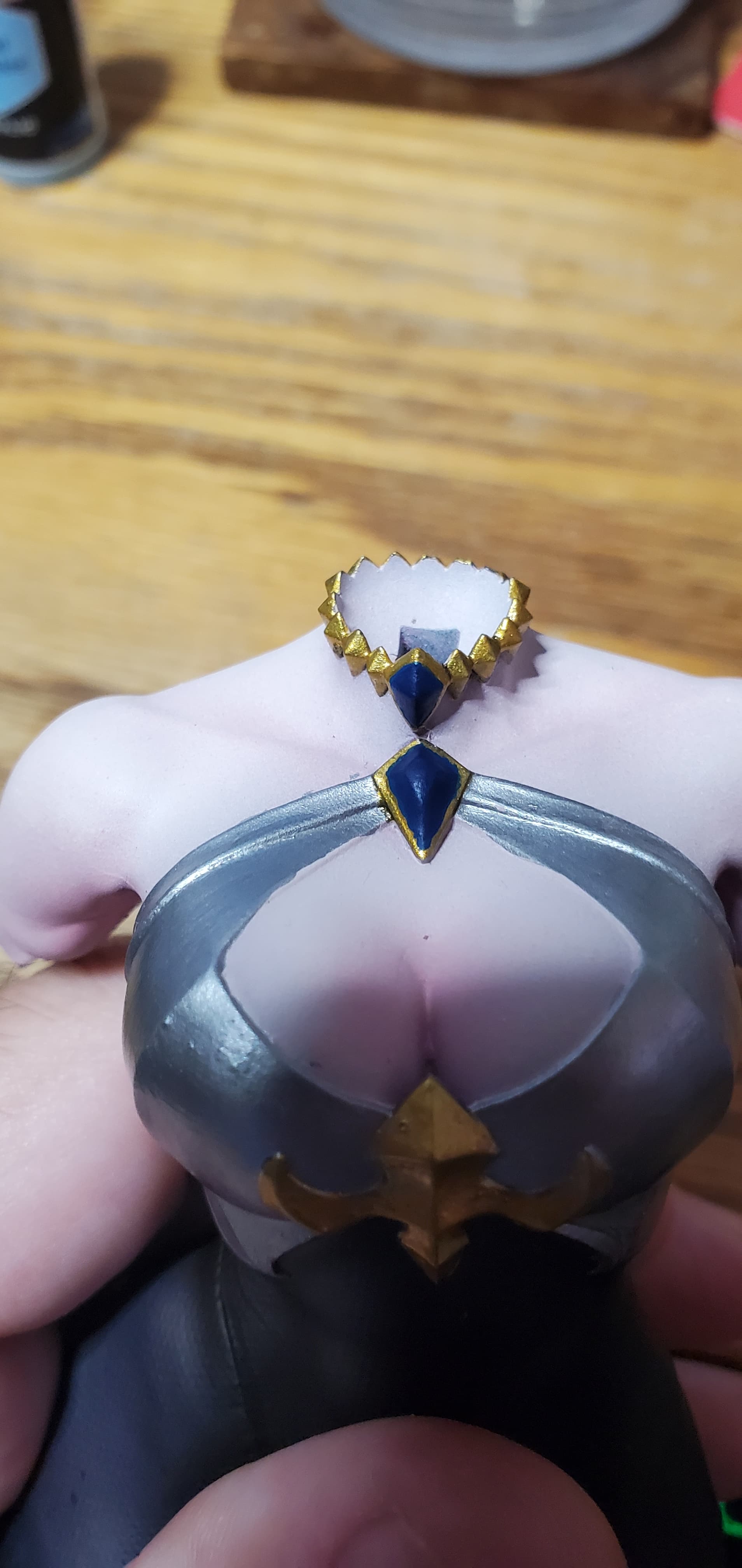 So first up, aside from the areas that will need repainting, a couple of the attachment point broke. These should be easy to fix with some CA glue. No real problem there. Where i have a more serious problem is the hair. The small breaks i can fix relatively easily to make then appear as natural terminations. Its this large break where i am unsure what to do. Its too thick to easily sand to an end, i really dont want to try and create a new extension (both for doubts on my ability to make it look natural and time constraints as i would still like to try and get her done by the 7th of June to make the contest). What i am leaning towards is using a dremel to reshape the end some first and then truncate it. However i would like to hear some other opinions first on how i might proceed, see if there is another solution i am not seeing.