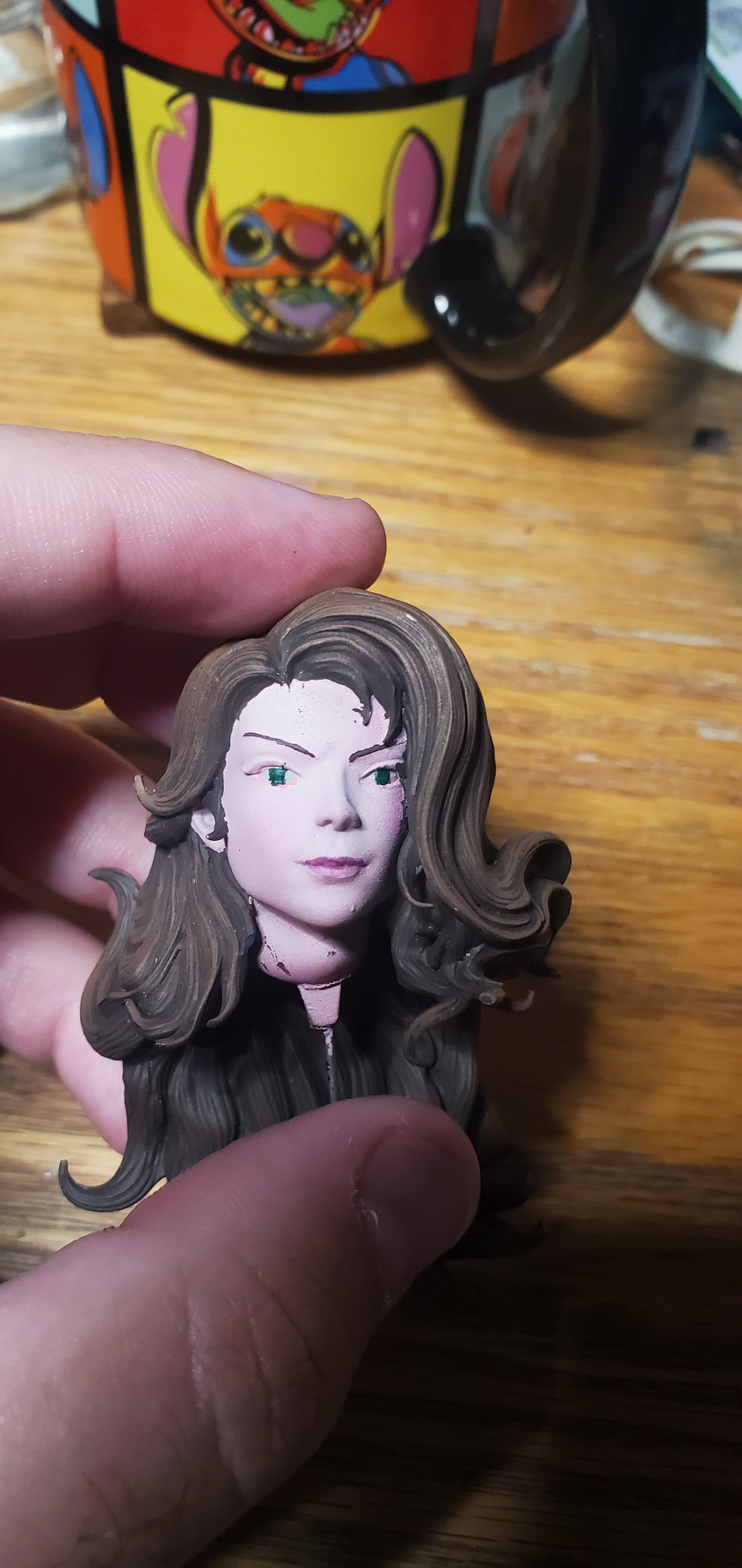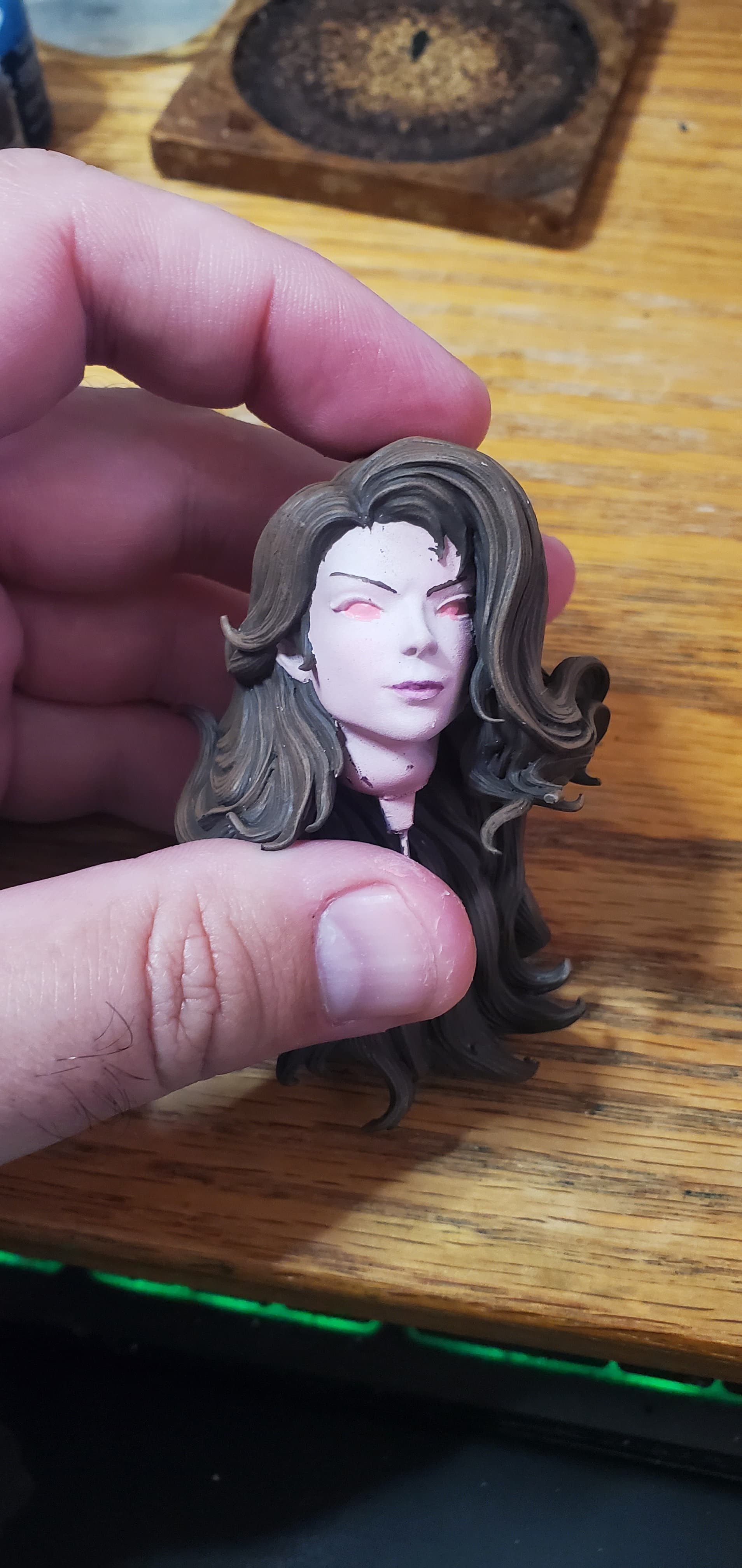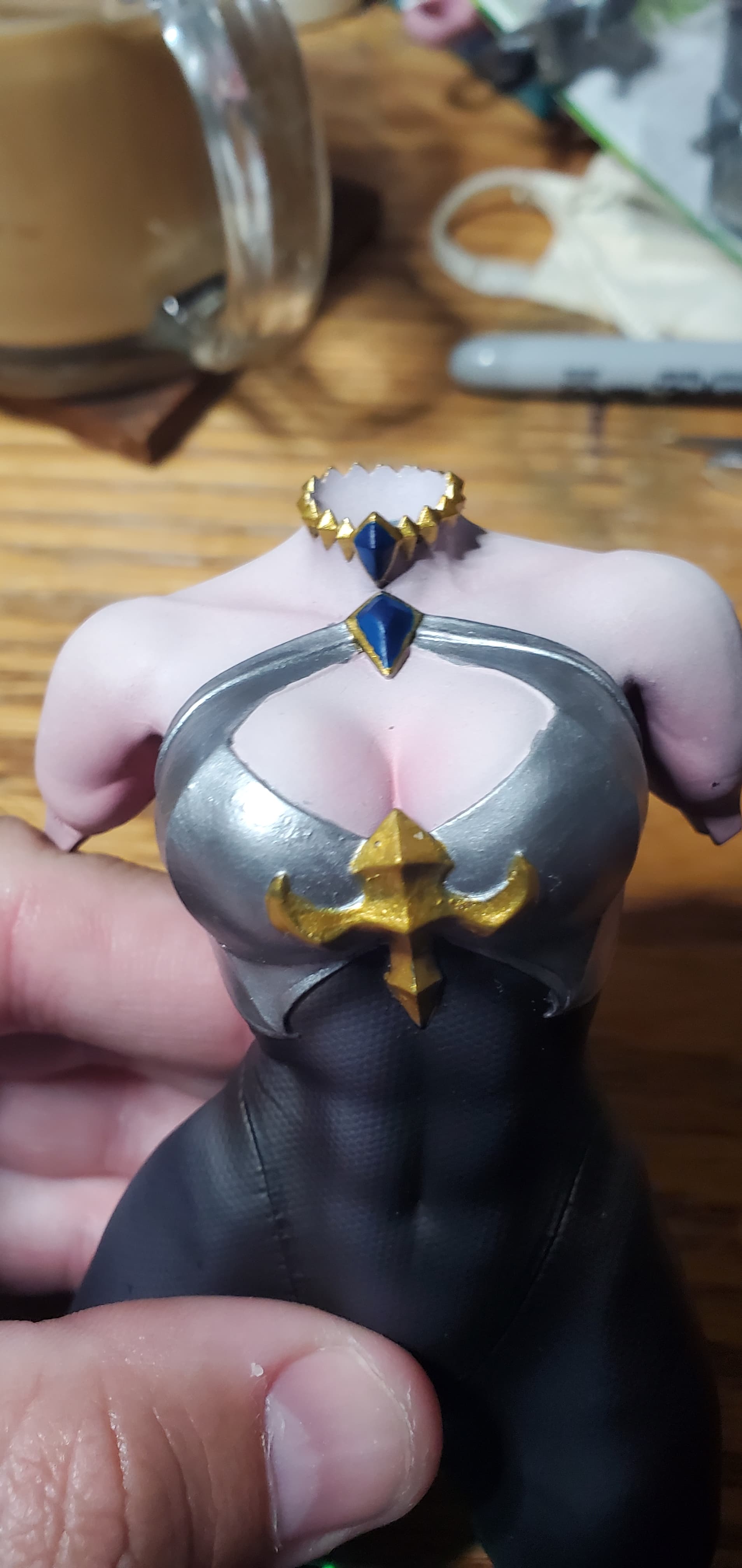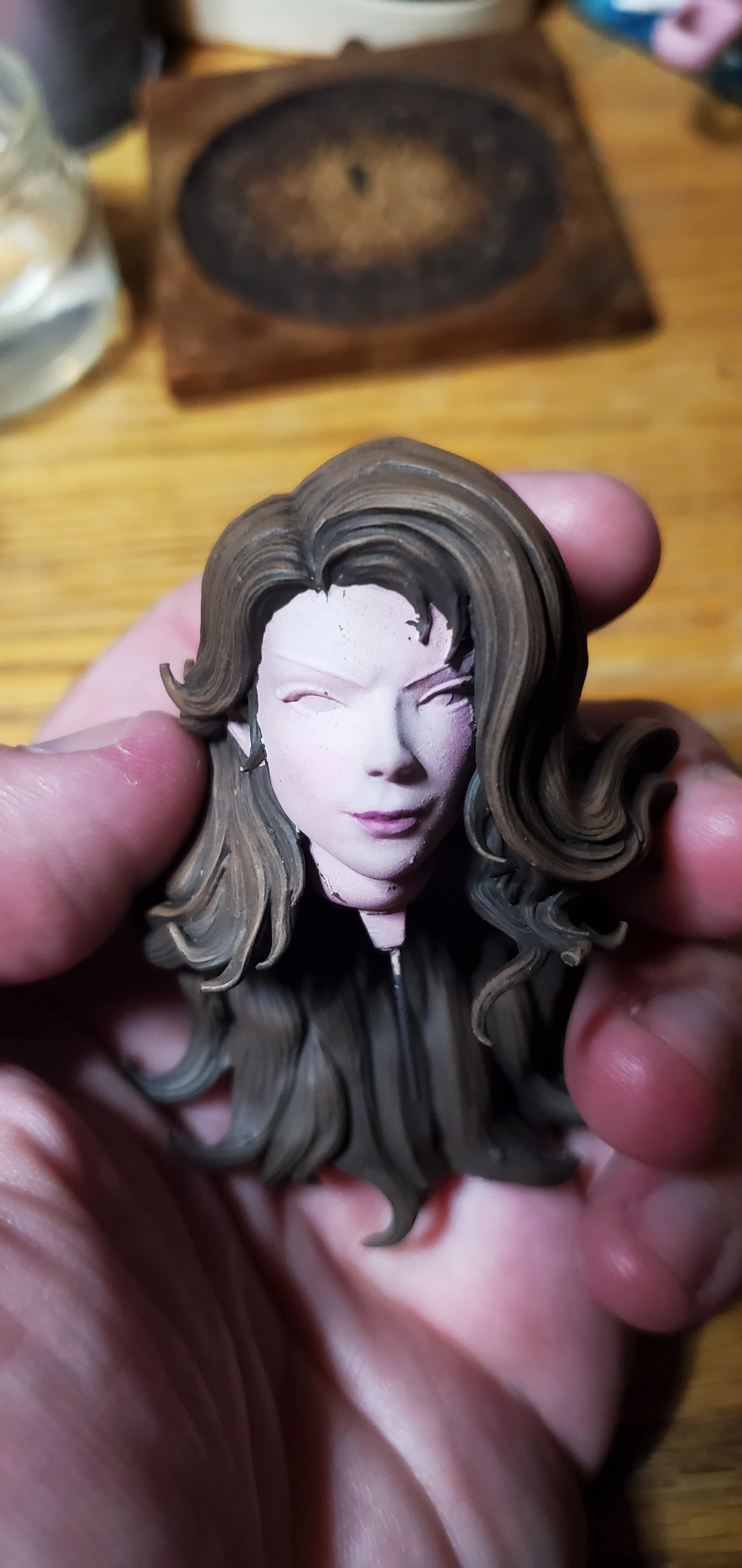 So first up, aside from the areas that will need repainting, a couple of the attachment point broke. These should be easy to fix with some CA glue. No real problem there. Where i have a more serious problem is the hair. The small breaks i can fix relatively easily to make then appear as natural terminations. Its this large break where i am unsure what to do. Its too thick to easily sand to an end, i really dont want to try and create a new extension (both for doubts on my ability to make it look natural and time constraints as i would still like to try and get her done by the 7th of June to make the contest). What i am leaning towards is using a dremel to reshape the end some first and then truncate it. However i would like to hear some other opinions first on how i might proceed, see if there is another solution i am not seeing.