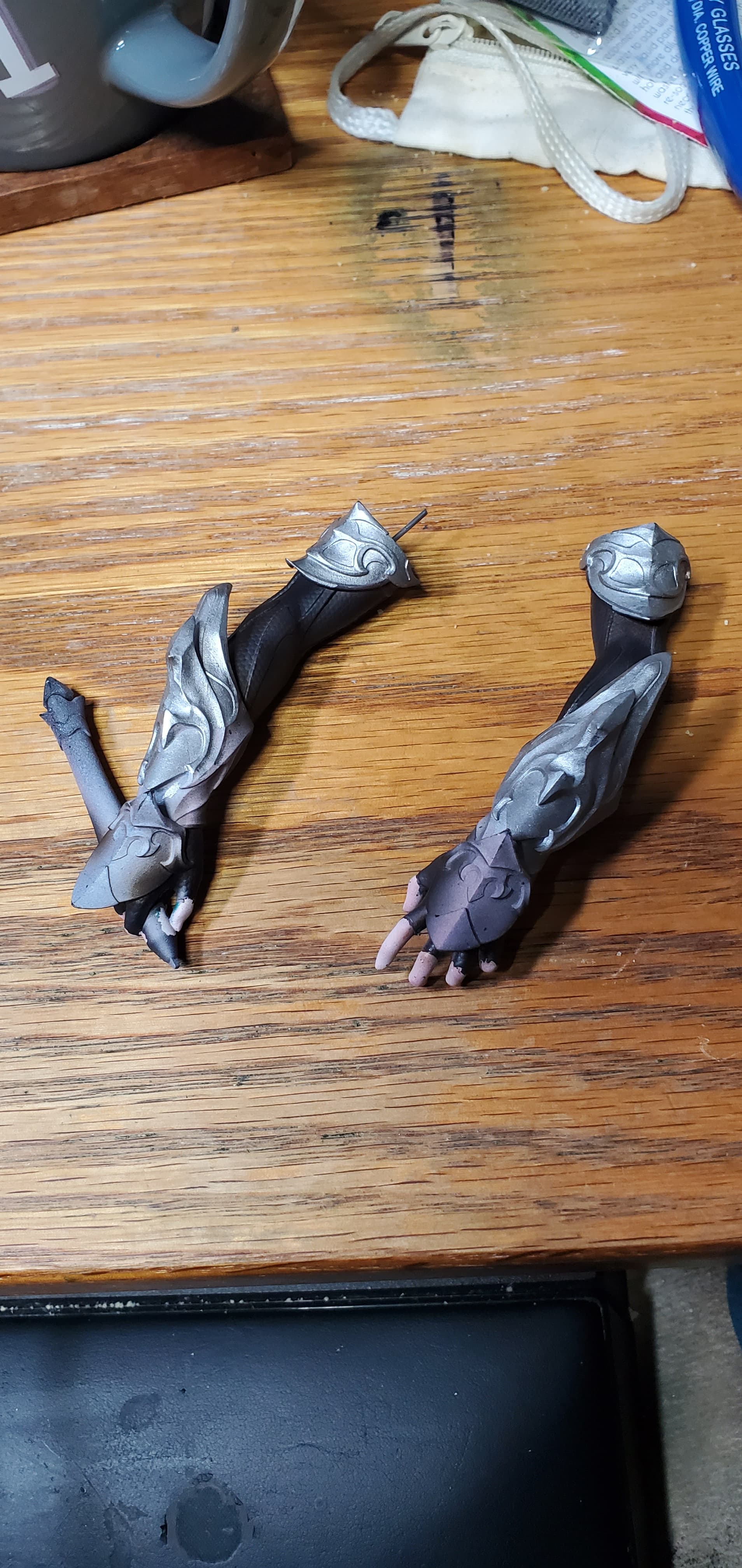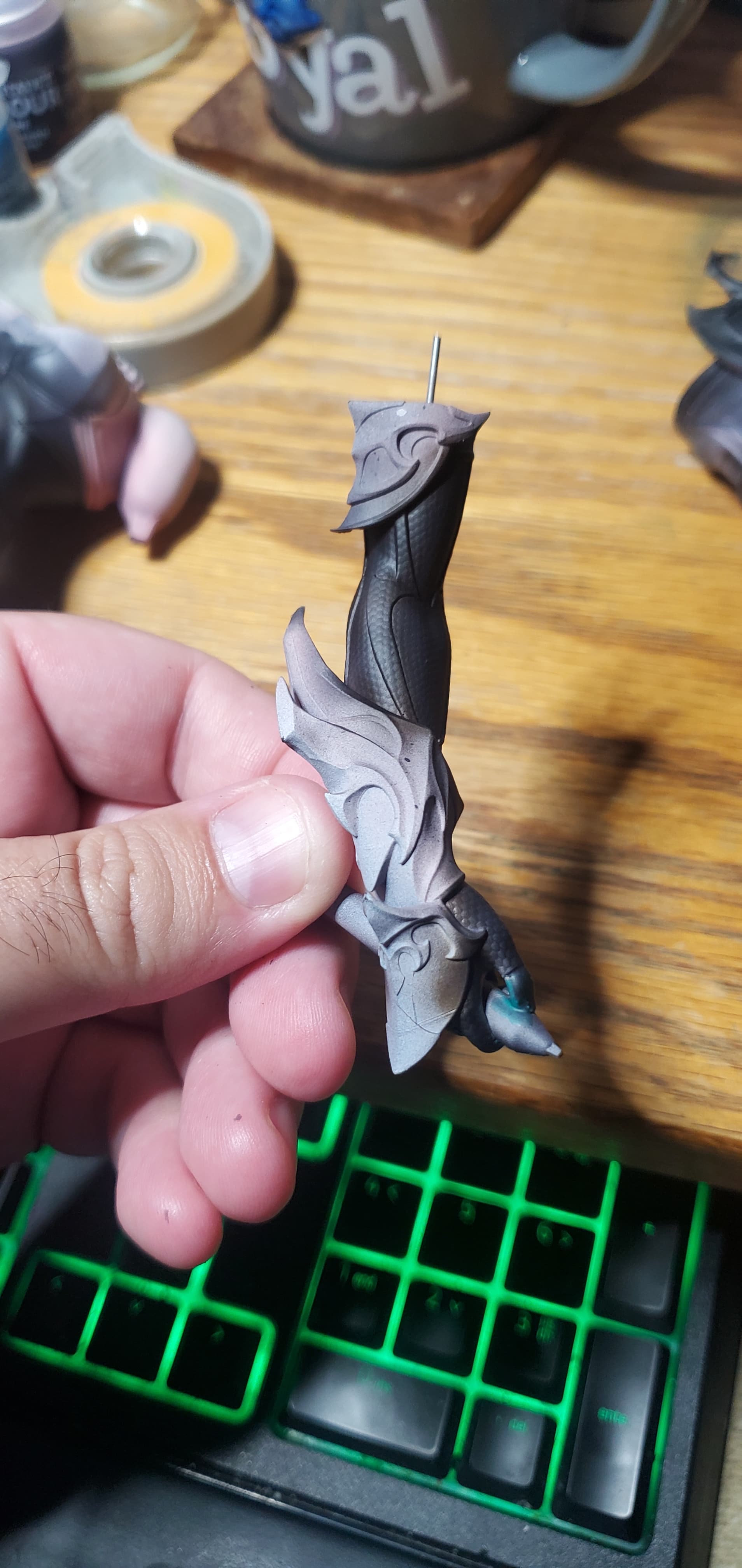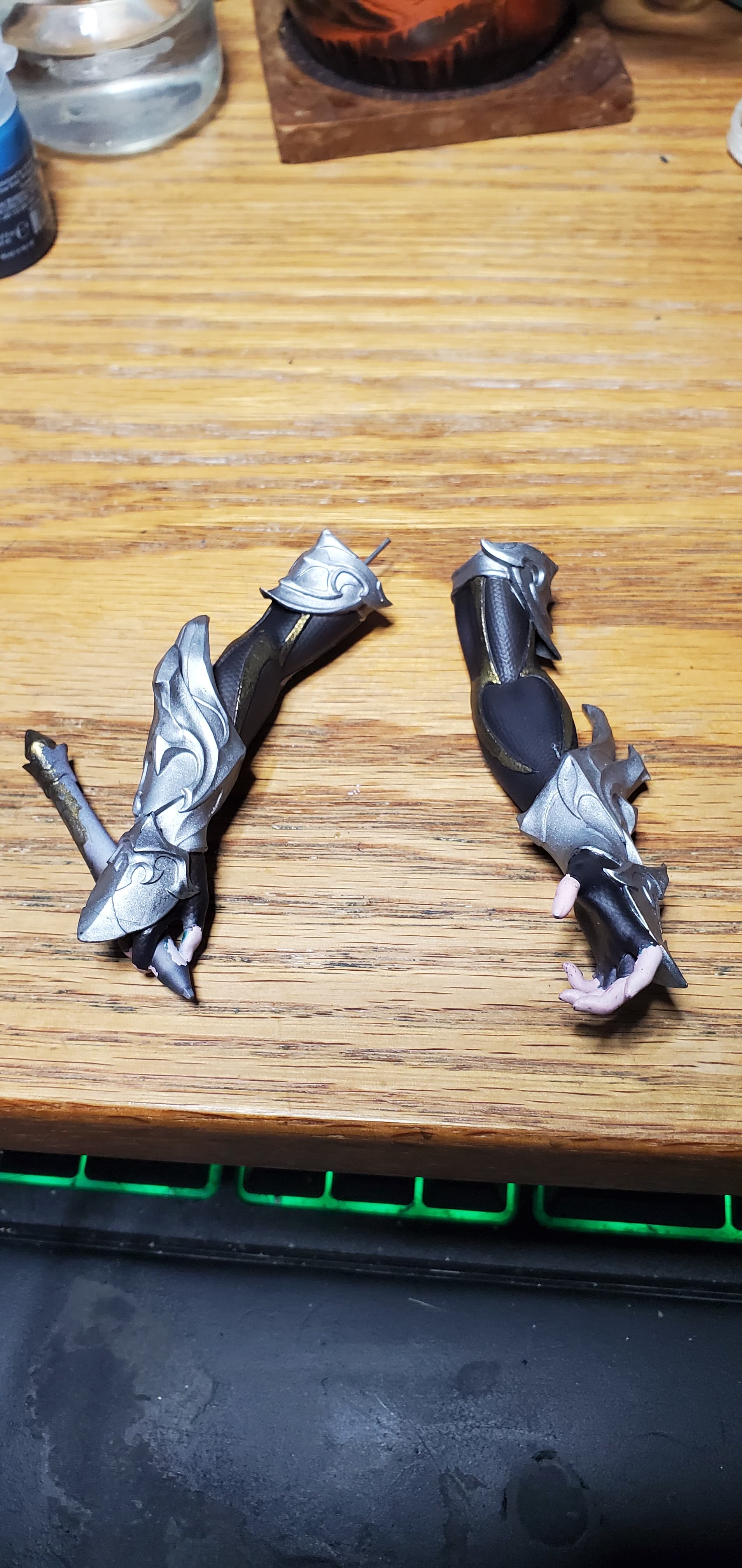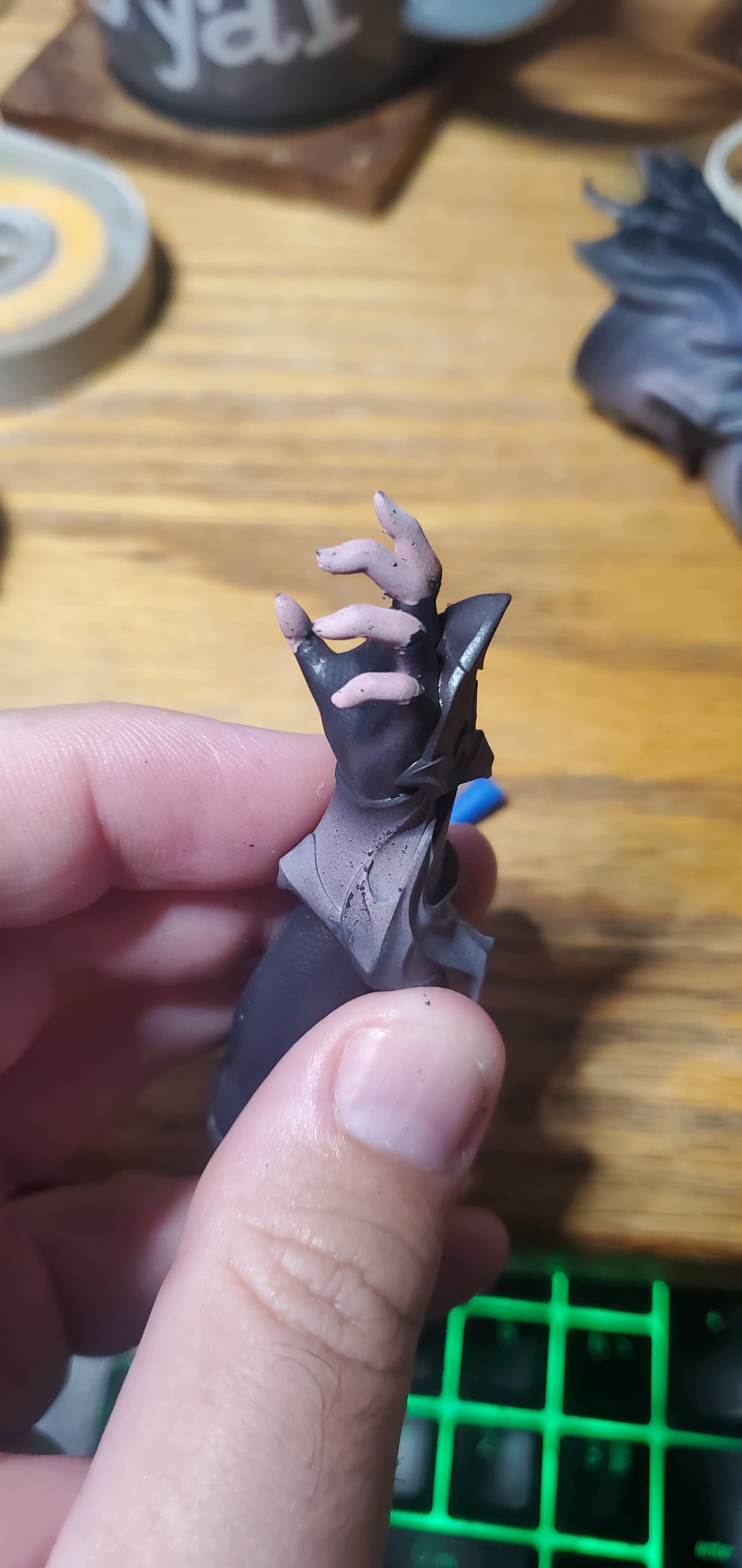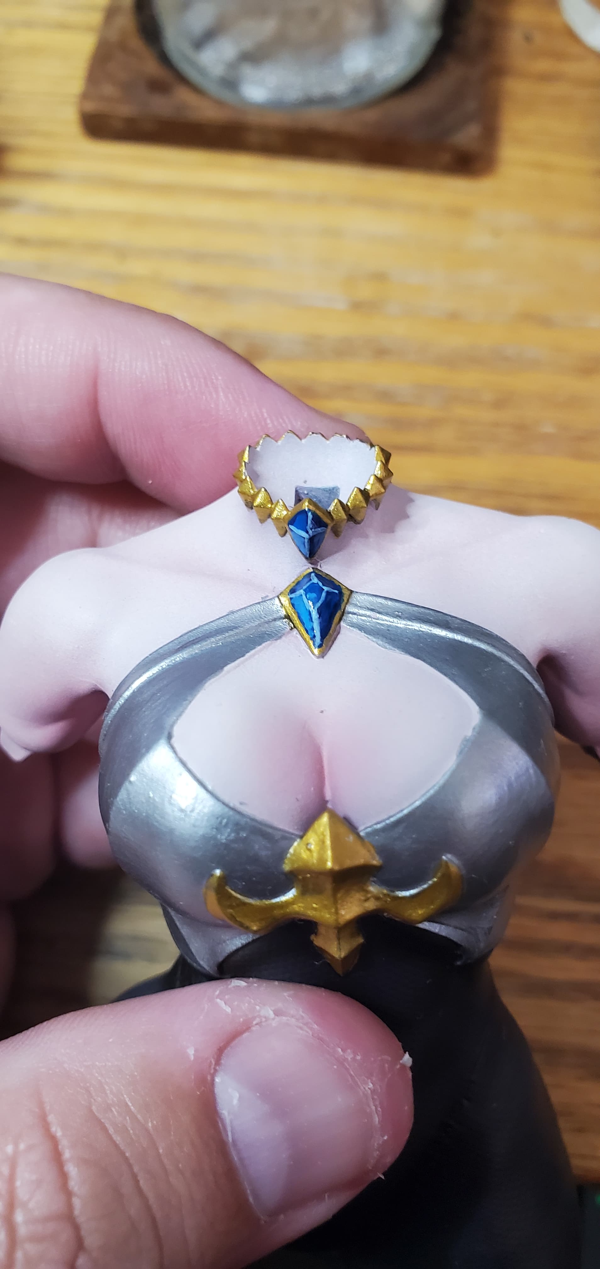 So first up, aside from the areas that will need repainting, a couple of the attachment point broke. These should be easy to fix with some CA glue. No real problem there. Where i have a more serious problem is the hair. The small breaks i can fix relatively easily to make then appear as natural terminations. Its this large break where i am unsure what to do. Its too thick to easily sand to an end, i really dont want to try and create a new extension (both for doubts on my ability to make it look natural and time constraints as i would still like to try and get her done by the 7th of June to make the contest). What i am leaning towards is using a dremel to reshape the end some first and then truncate it. However i would like to hear some other opinions first on how i might proceed, see if there is another solution i am not seeing.