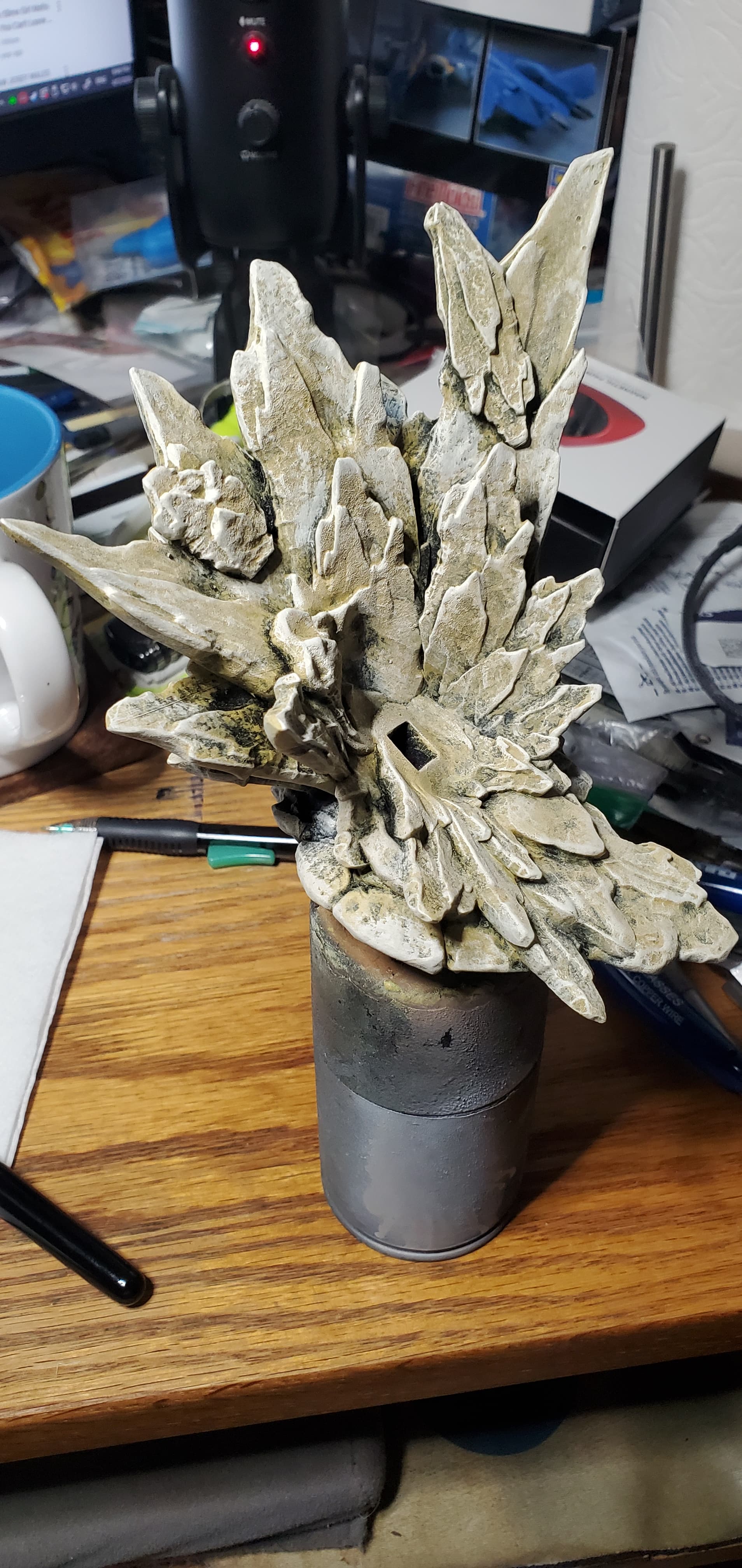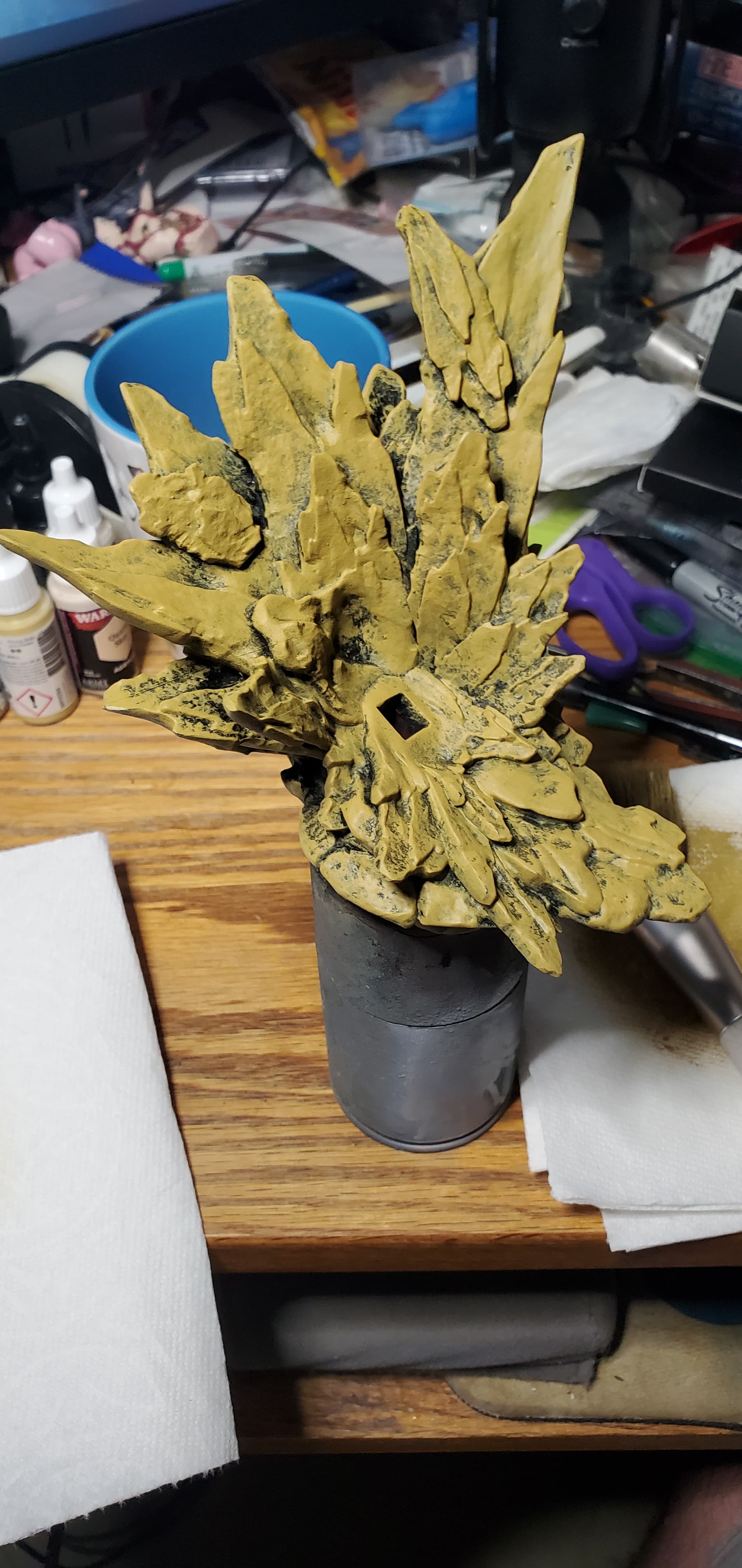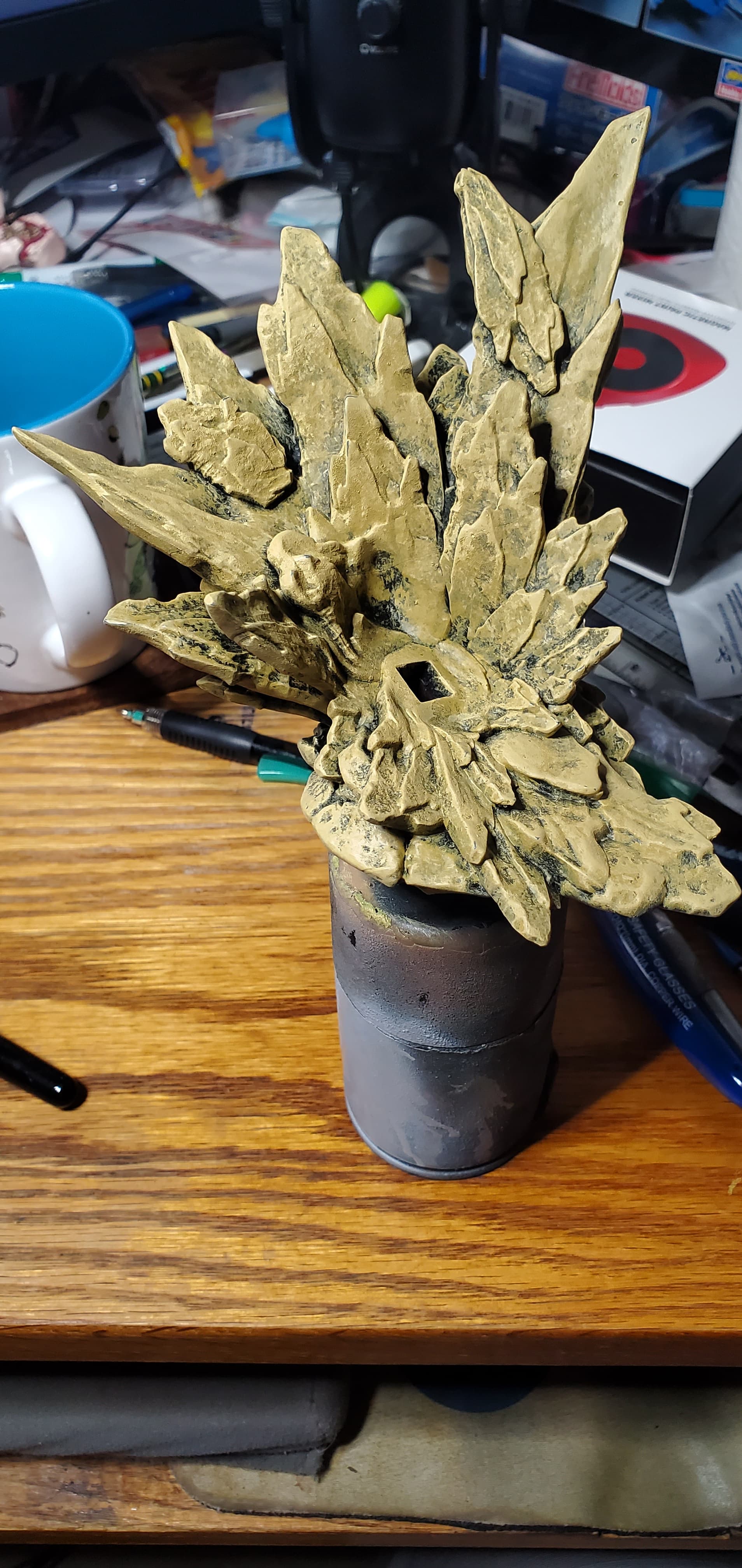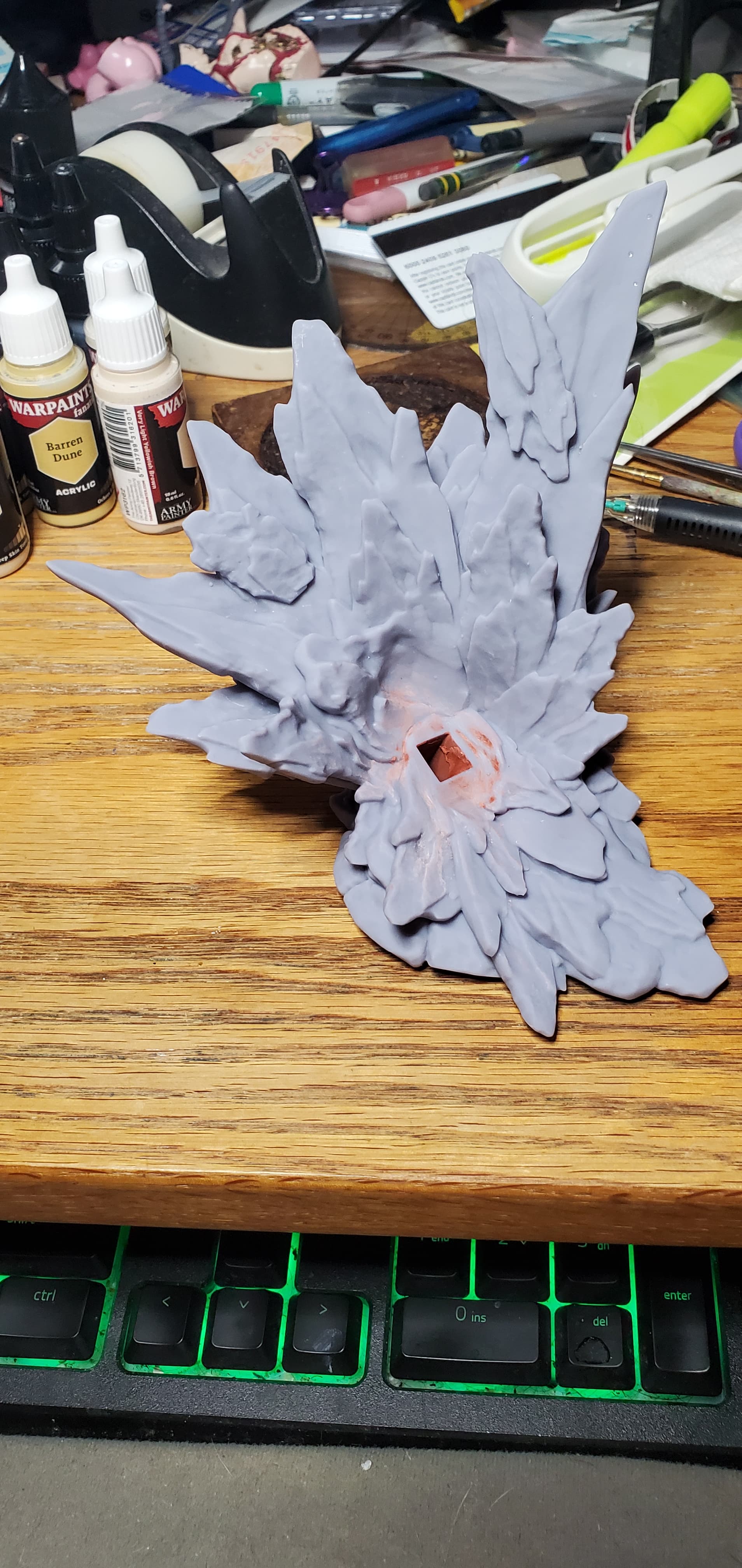 Lastly for tonight I came back and hit it with a highlight color focusing more on the edges, but still trying to get a large chunk of the surface. At this stage I am not trying to be precise with the paint, just looking to get as much coverage as possible.
