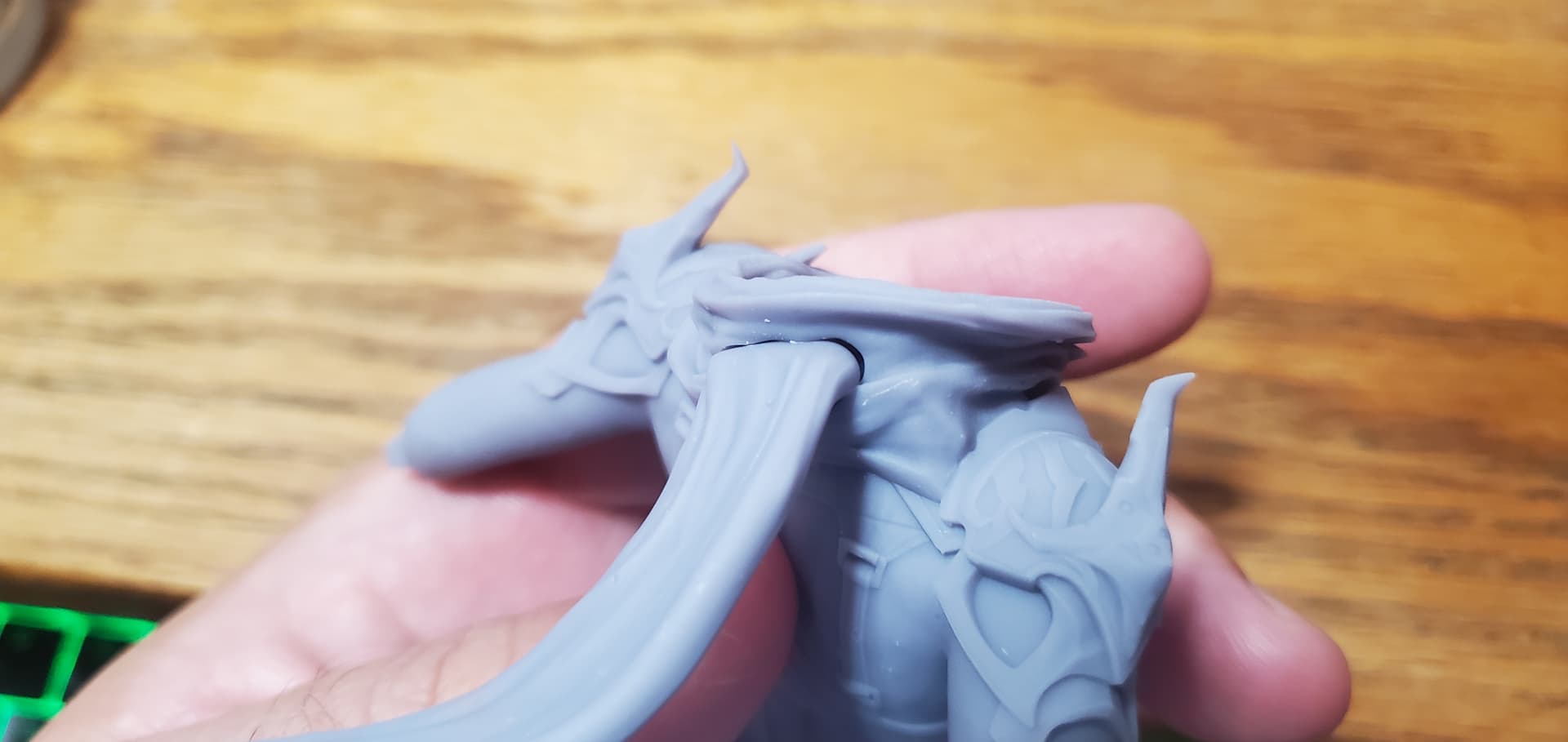 Prior to that however I also noticed an issue with the connection point between the tail of the scarf and the torso portion. I don’t know if it was miss cut, or the tail had some issue printing but the thing does not want to fit in. So I will also need to do some work here as well to touch up the key hole as well.