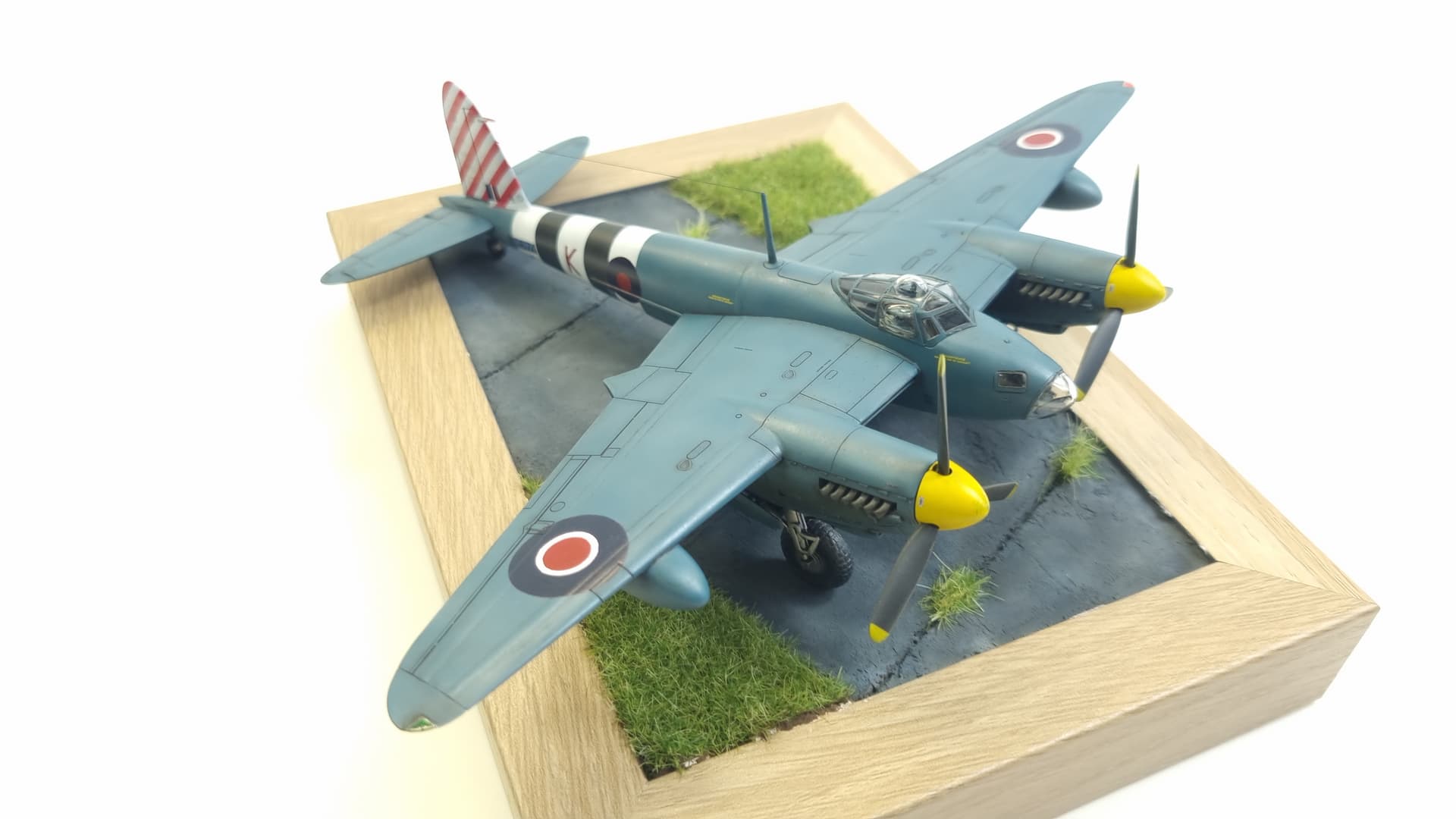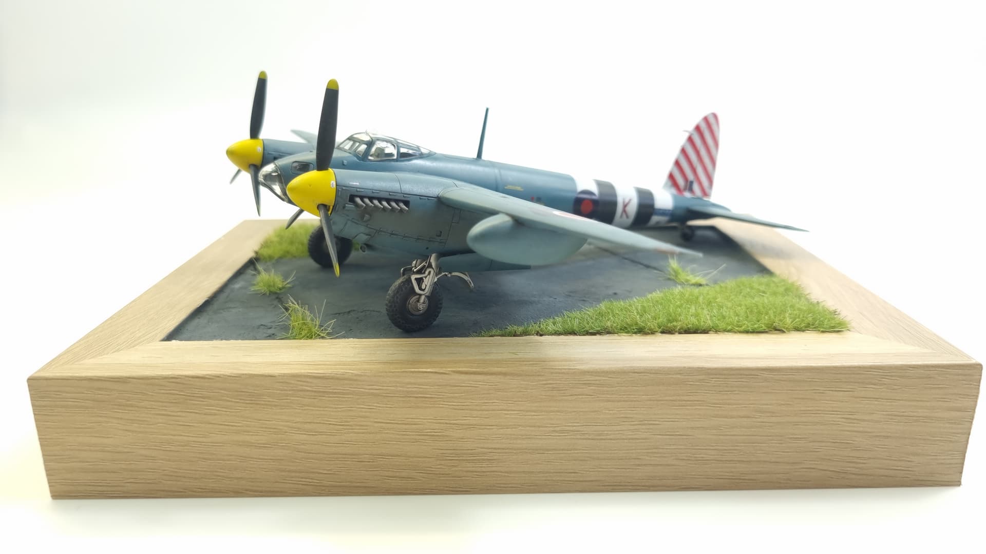 Nice kit but mine had a short shot on one engine nacelle I had to fix. Base is a photo frame and the concrete slabs are thin cork