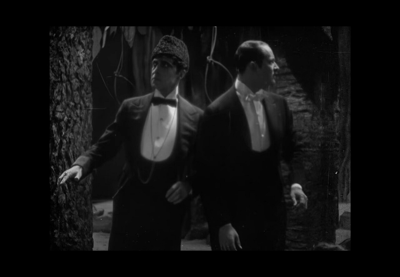 Hereās a pic of the scene in the 1925 film showing Ledoux (on the left) and Raoul (on the right) after falling into the torture chamber. Note the ropes in the background.