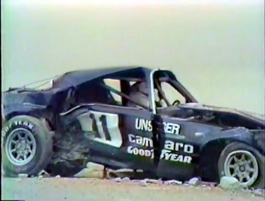 The 74 Camaro body was used until 1980. In 1977 they started using a Banjo chassis because the stock unibody chassis was not very safe if the car suffered a major crash like Bobby suffered in the first race of the 74/75 season at Riverside. Since it happened at the start of the race they decided to restart the race with him in one of the spare cars. He was unhurt in the accident as you can see was horrendous.