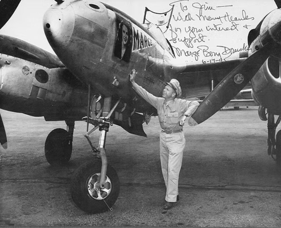 As for his P-38 42-104380, this airframe was more likely to have had the red main wingtips per researchers and only carried the name Marge.
