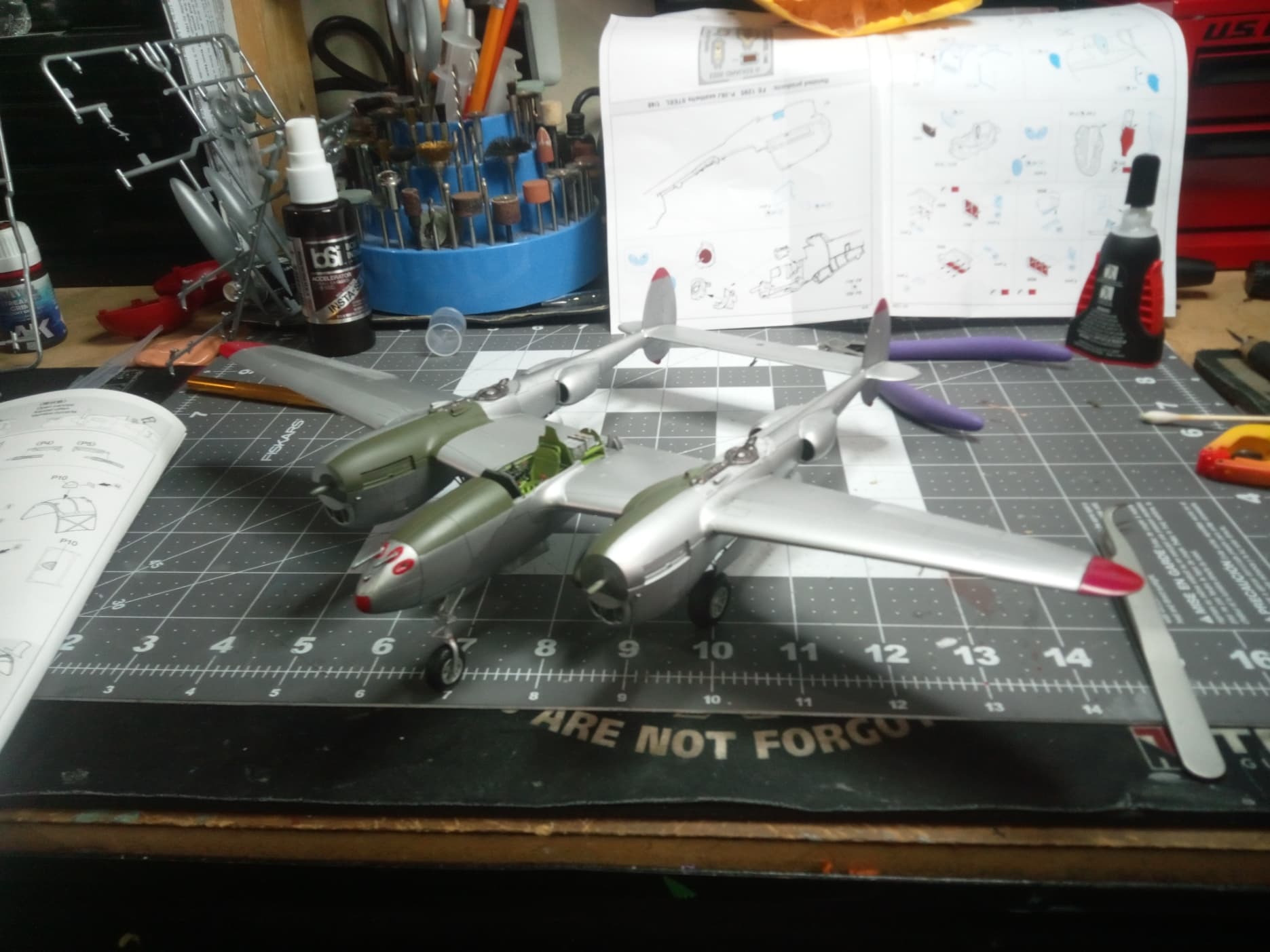 So with the major things done on this plane, I will begin building phase two of this diorama, the Tamiaya 1/48 6x6 CCKW Fuel Truck. I will continue to provide updates in this thread on the truck build, as well as the completed Hero pictures of the P-38J as soon as completed, probably around 10 days weather permitting.