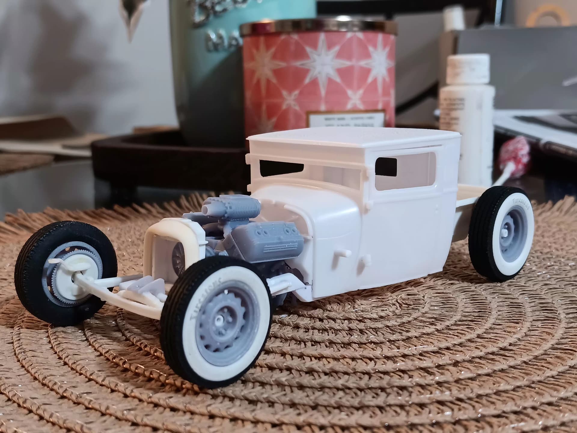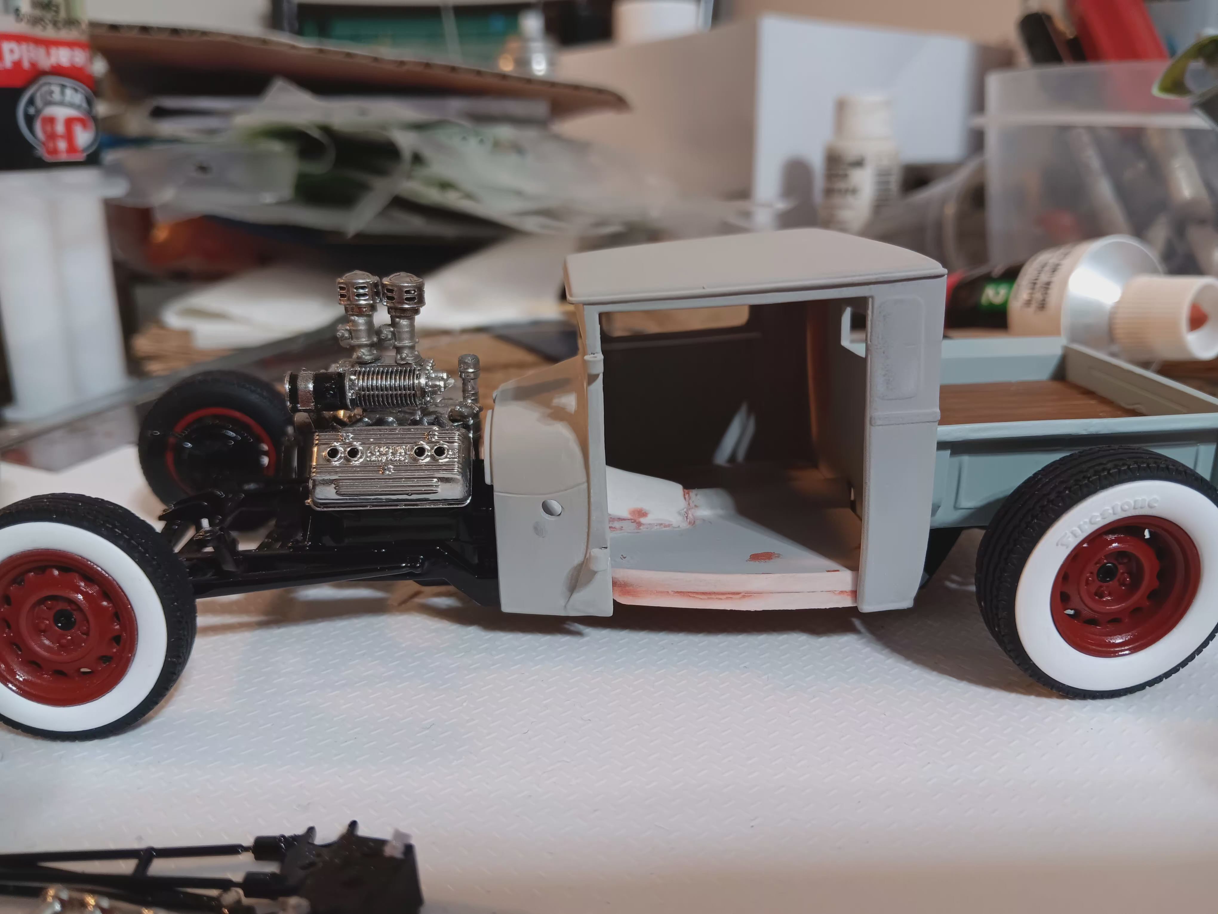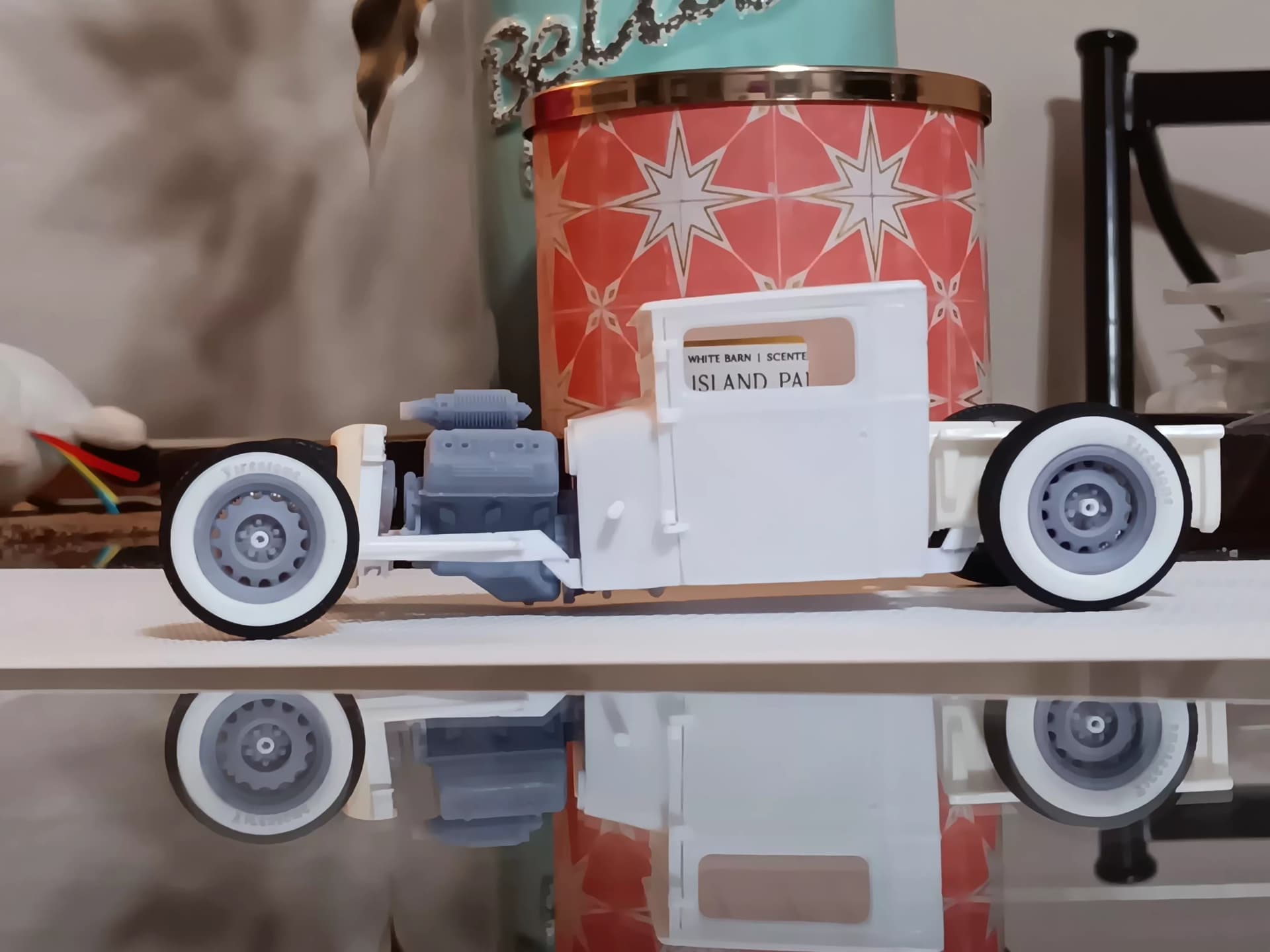 I have a printer, myself, but these were all purchased products as I have not been able to acquire the STL’s. The wheels and tires are from Iceman Collections, the Ardun Flathead and finned drum brakes are from MCV Products. The rear quick change is a resin reproduction I found on ebay a few years back.