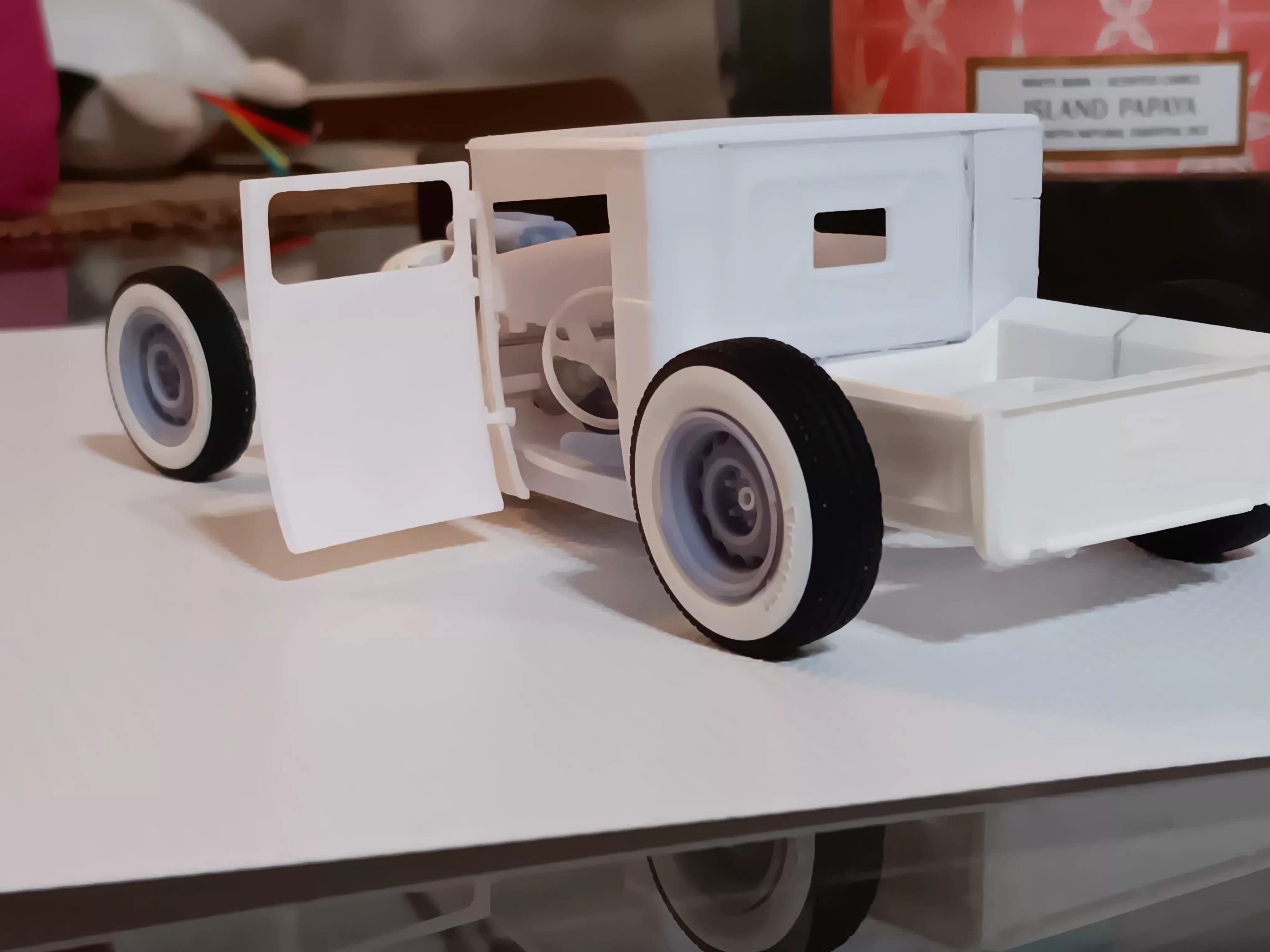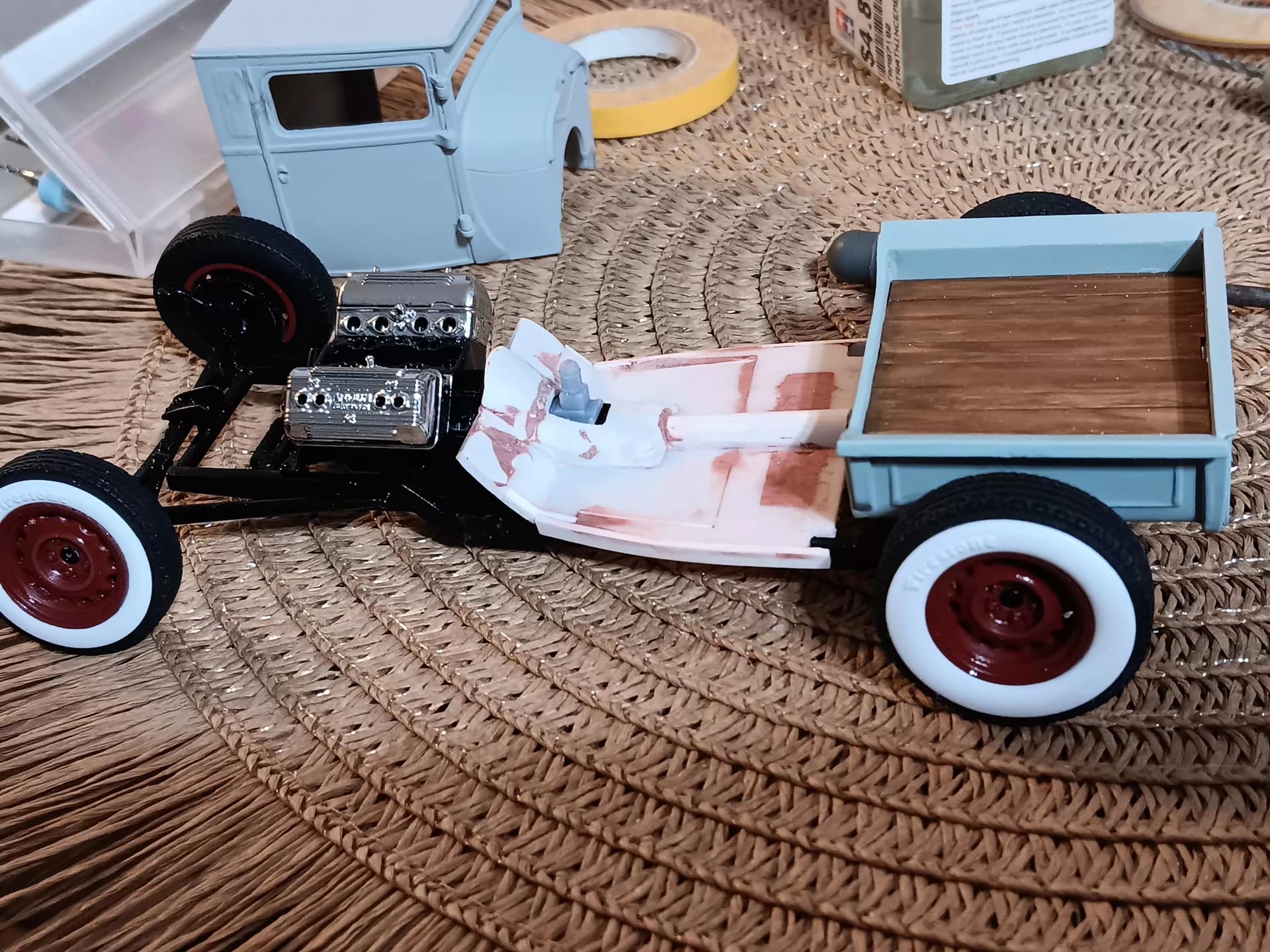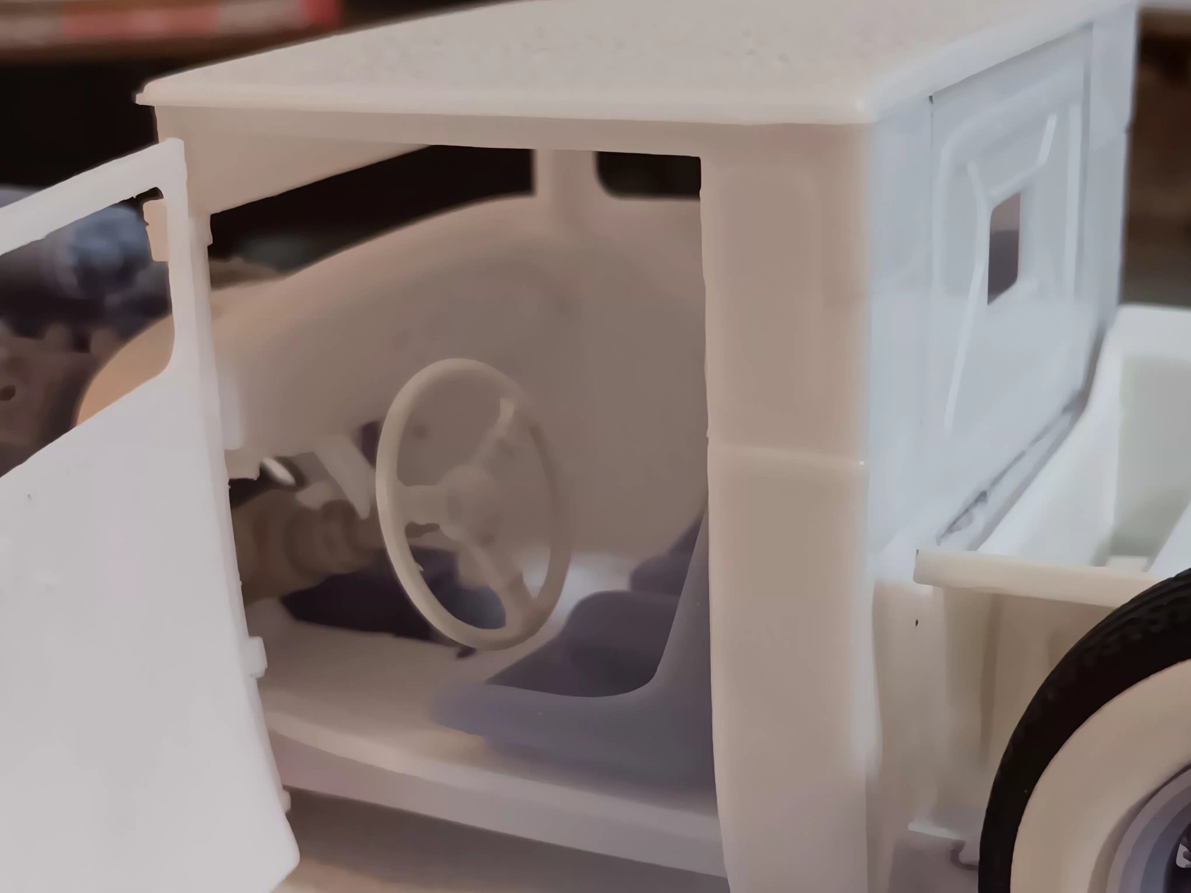 This is a very interesting build. From the tires, to the simulated wood planks in the bed. I really like all the 3-D printed items that you’ve incorporated in the build to. I’m excited for the next update.