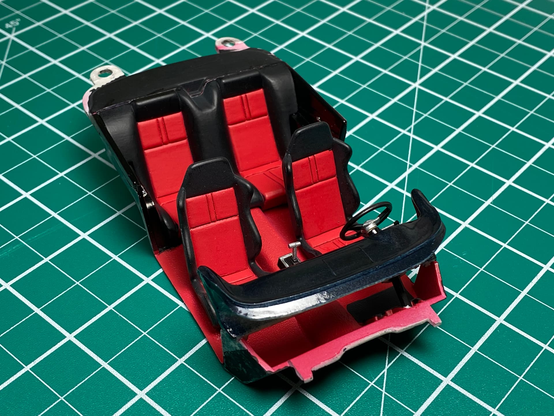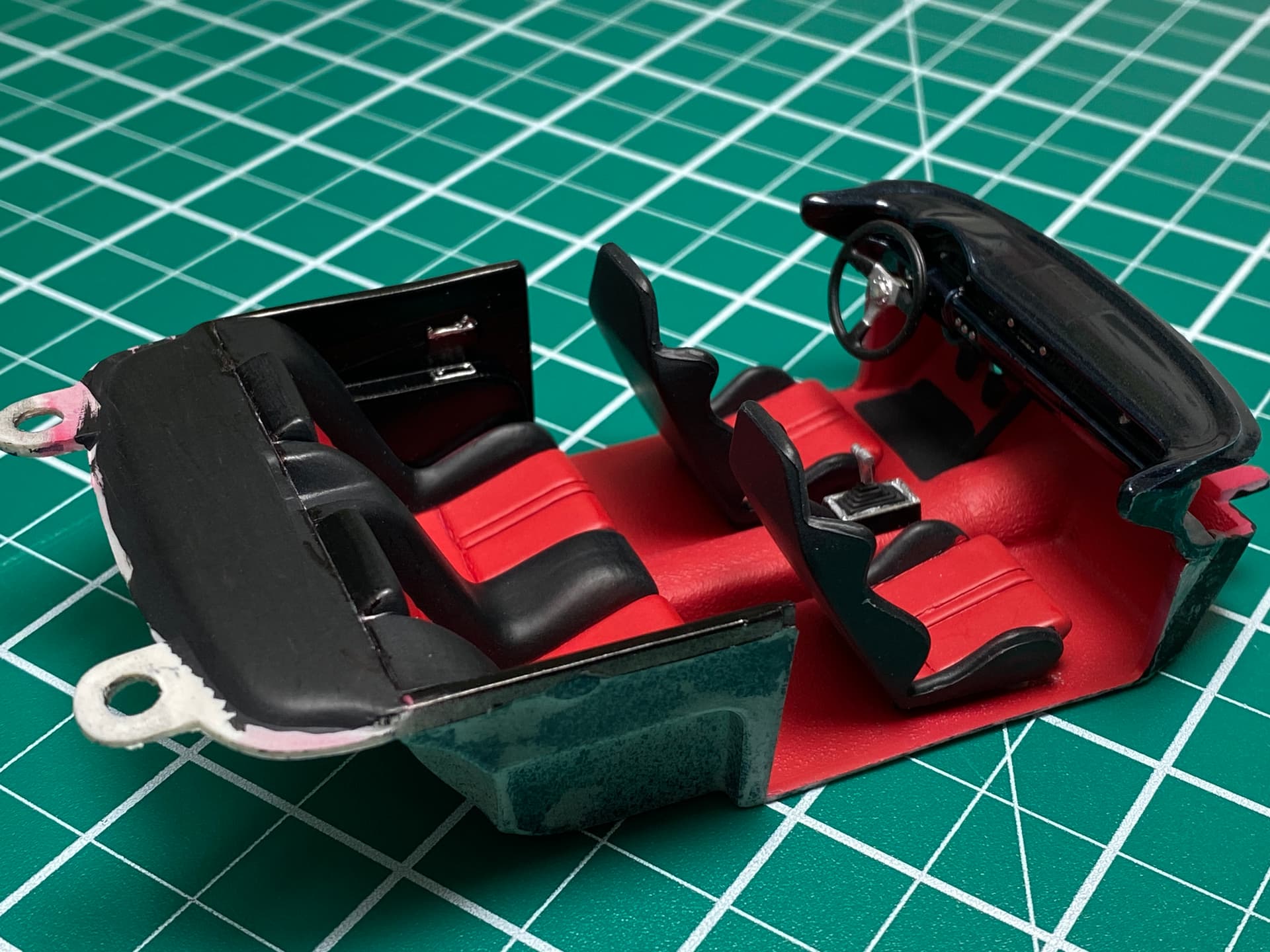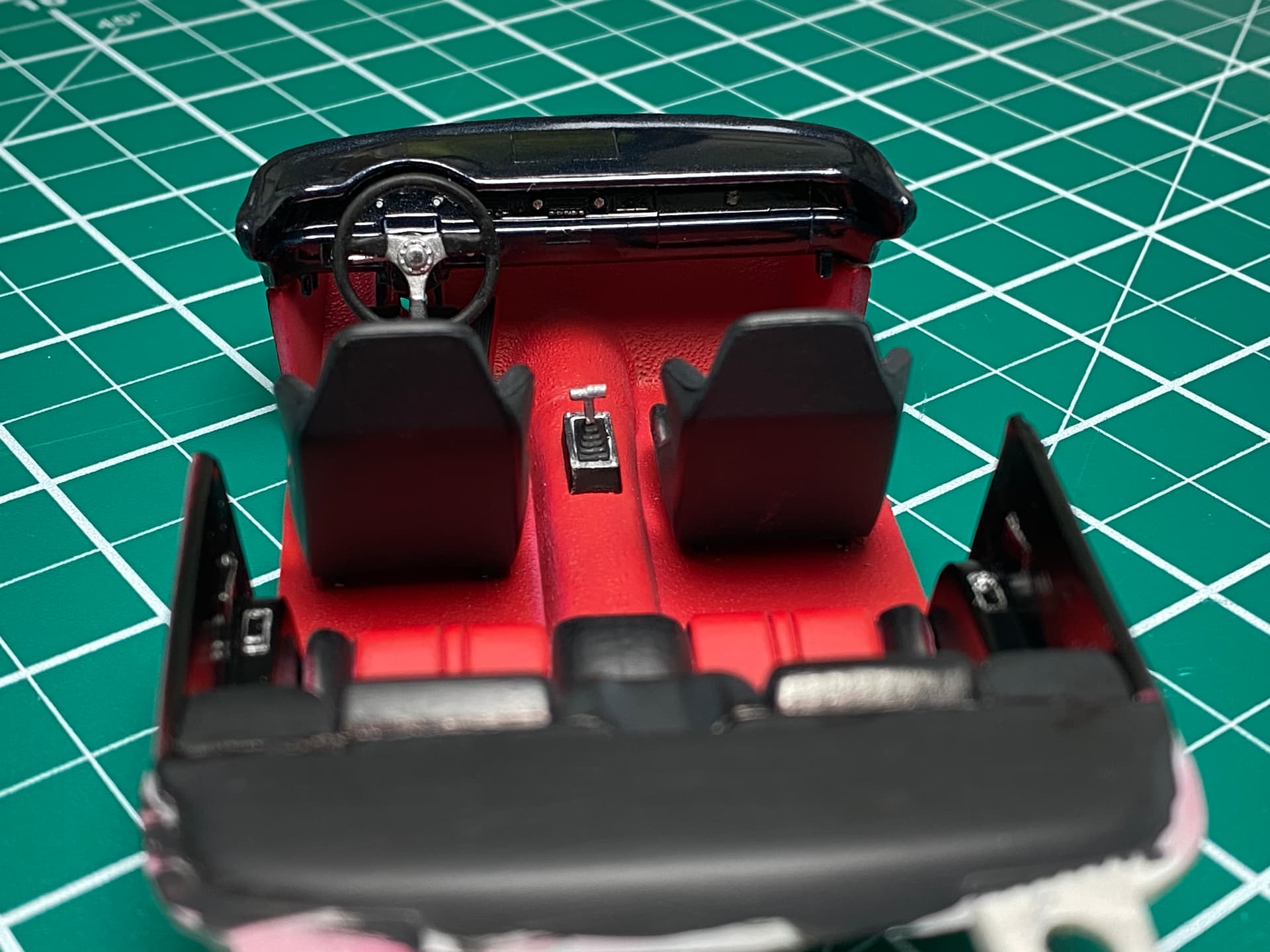 Well “Laser Mike” is appropriate on this interior for sure. Impressive detail painting and the color combination really smacks. The red…has a softness to it that catches my eye really well. I’d for sure like to know how you got the detail painted so well…it’s tiny stuff…I mean look at that dash and shifter! Hear that Mike? Yea, that’s me shaking my head…Thank-you for sharing your work.