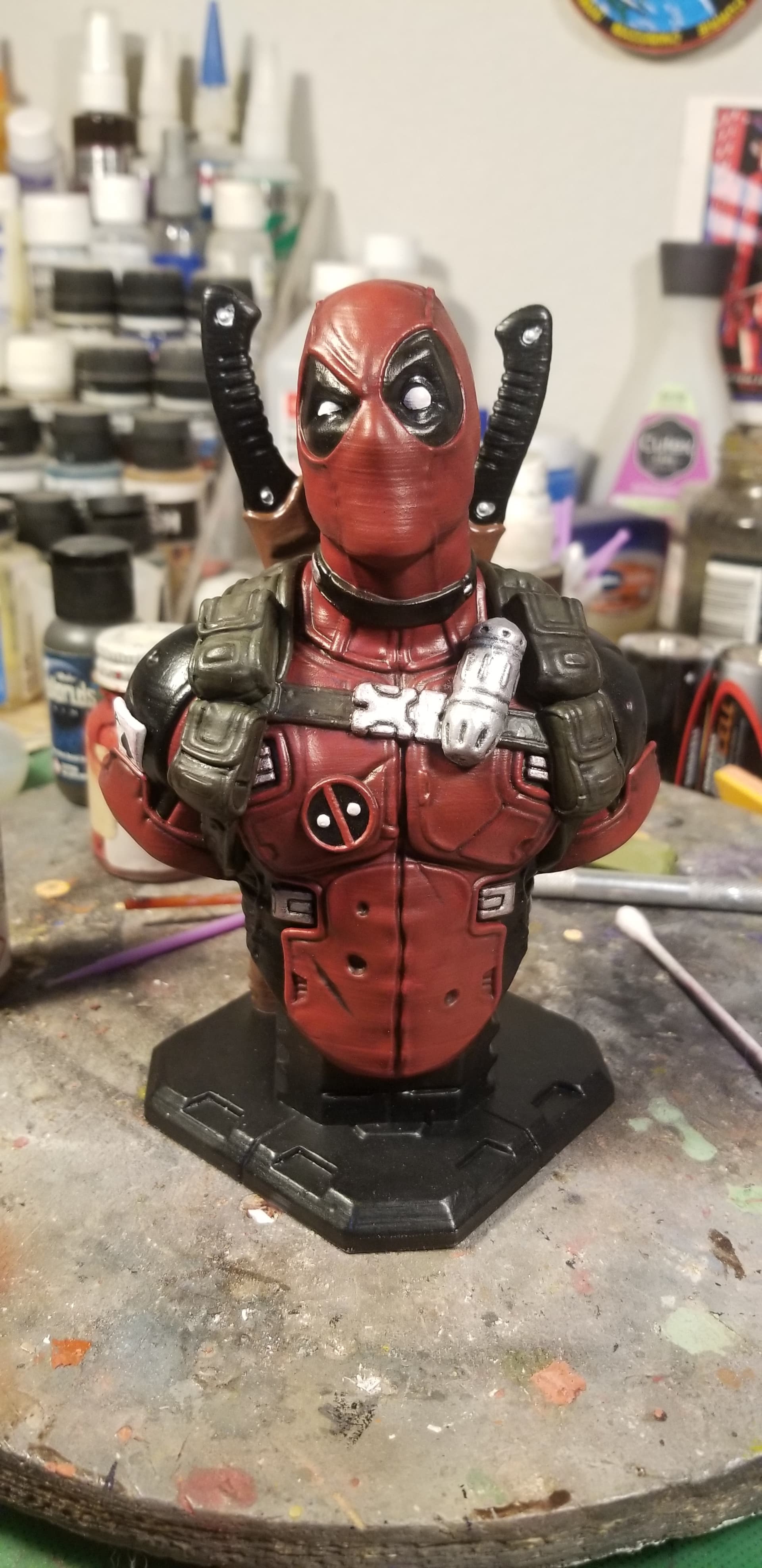 I think your Dead Pool bust is looking great! I made the Diamond Select Toys Dead Pool model kit several years ago and he’s one of my favorite Marvel/DC characters.