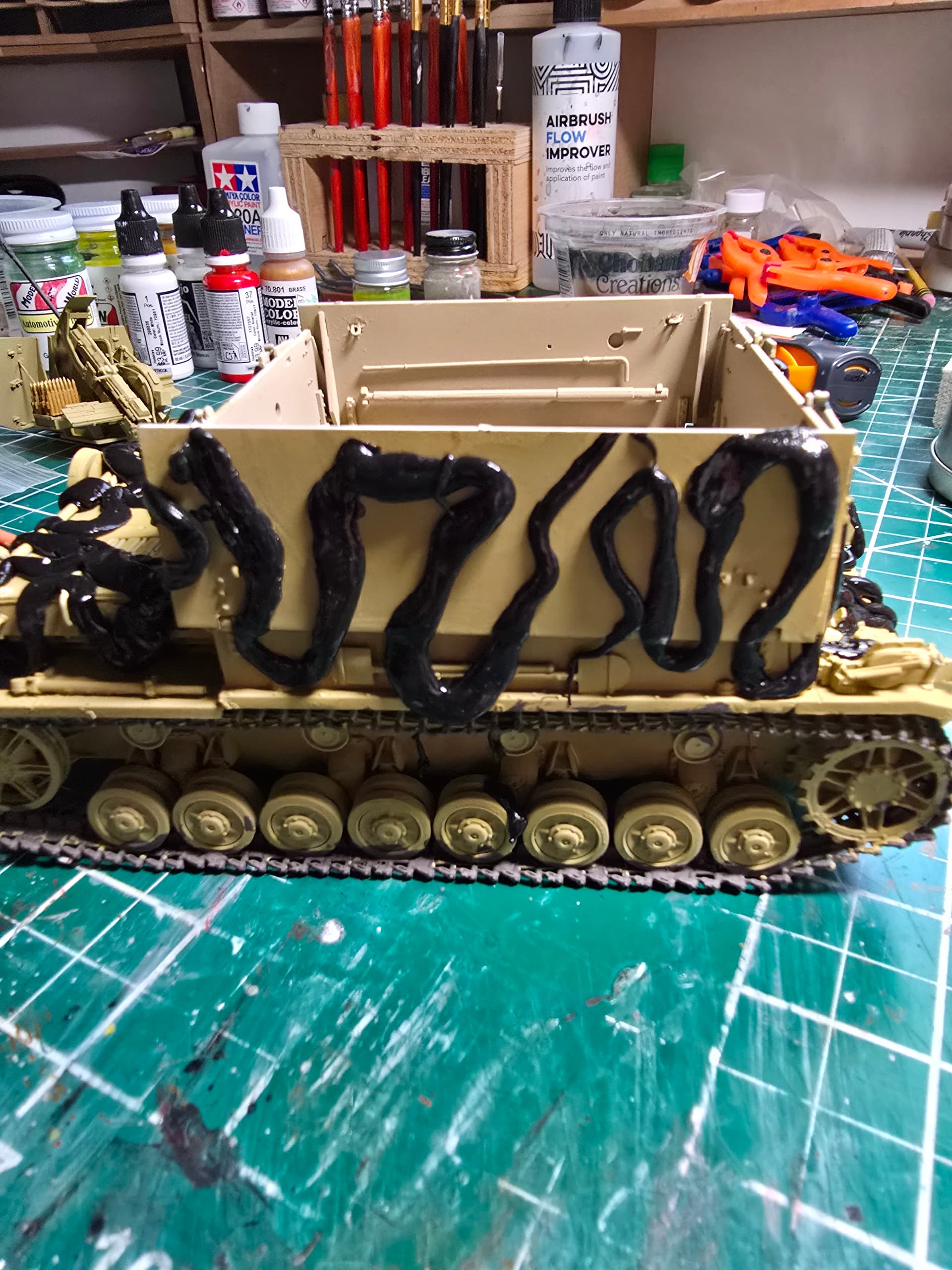 Sorry to hear you are in the ER. I like the AK painting putty because it is easy to apply and it comes off cleanly and without lifting detail parts with it (at least in my experience so far). But my first time using it I applied it and then decided to paint the next day. When I sat down to do so the next day, the putty had sagged on the vertical services and dragged some of the putty on the horizontal surface with it. So off it all came and then had to reapply. So give yourself enough time to putty and paint in a single session. Get well and keep well!