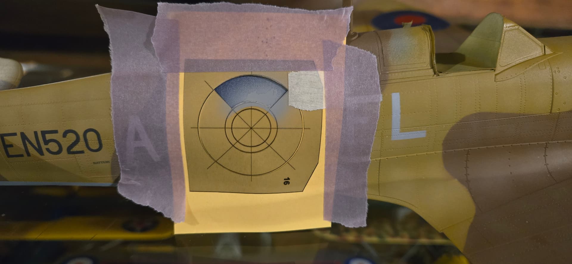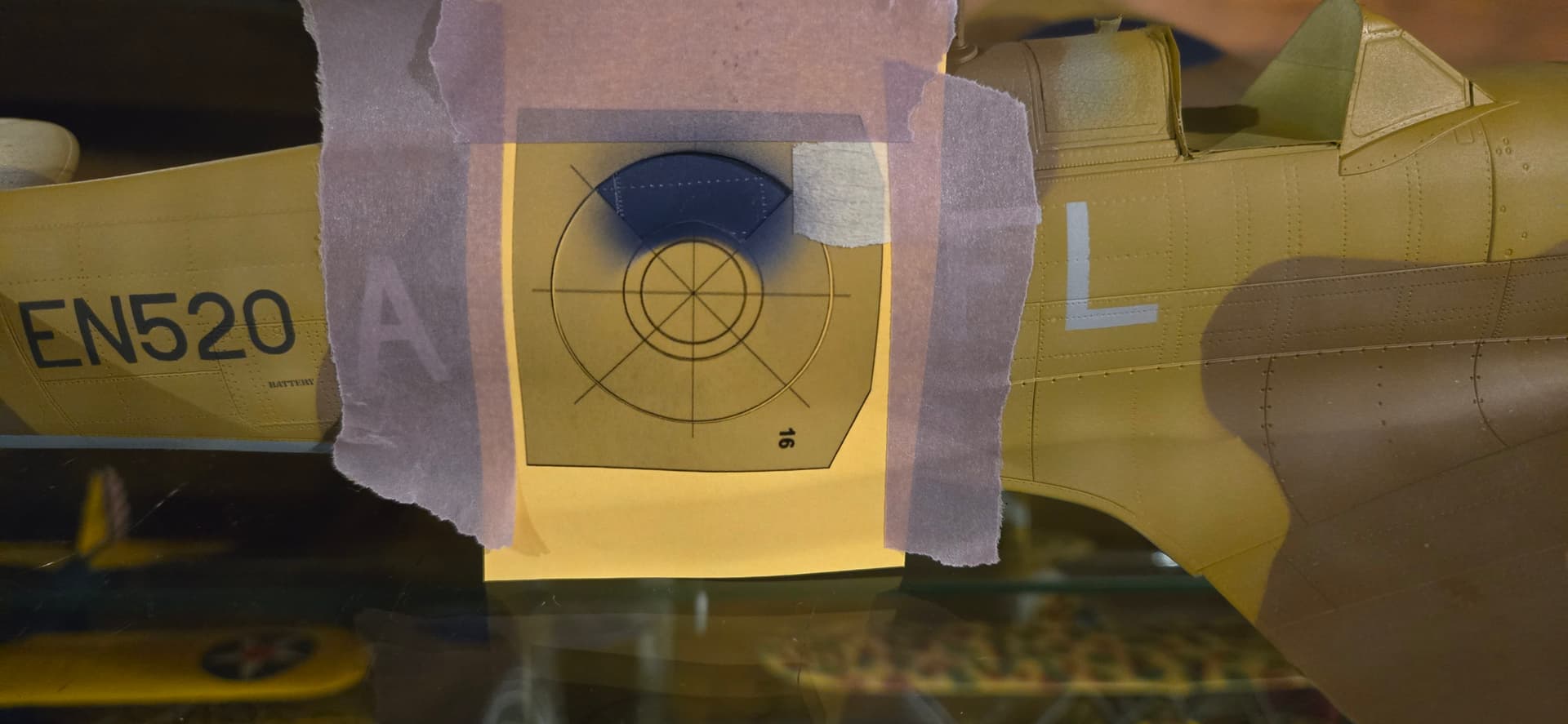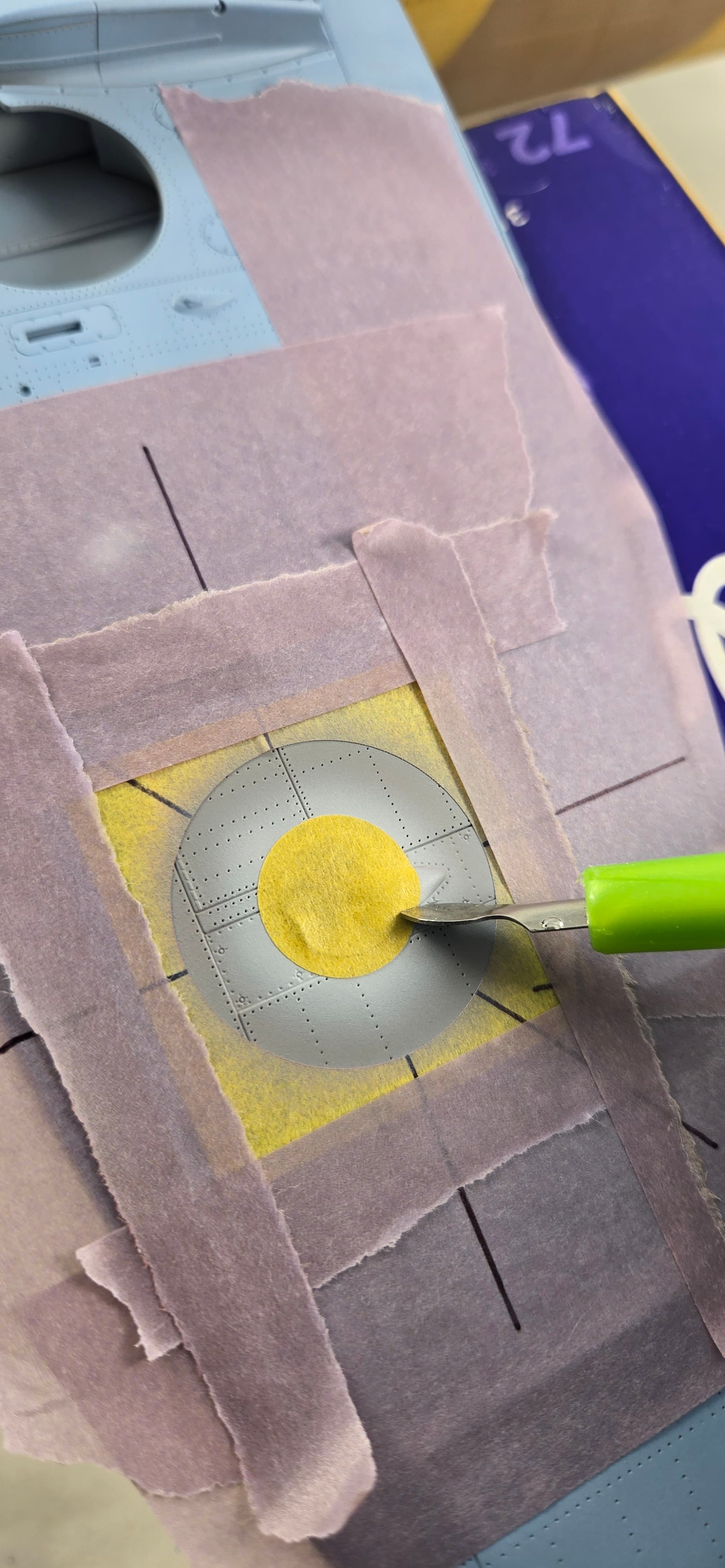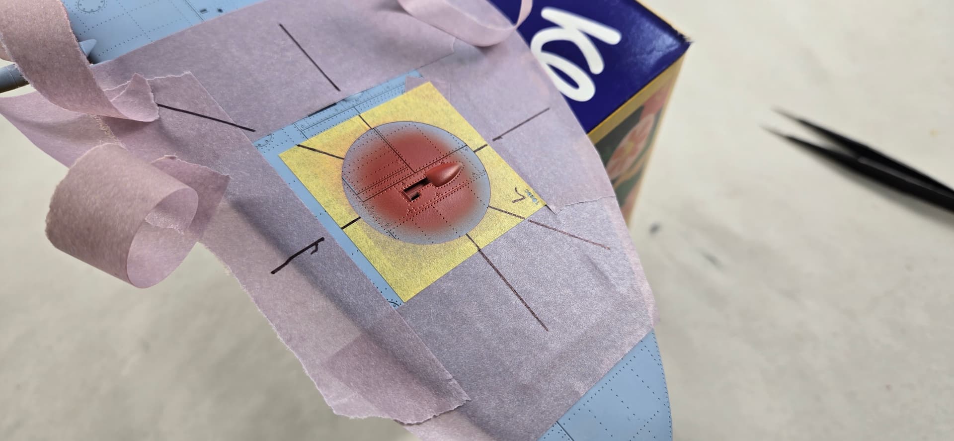 And again, a perfectly registered roundel. I think this method was a lot easier than trying to align marks that were getting painted over. I only had to carefully place the corner of the next successive mask in the right angle formed by the tape and align the two edges, and perfect alignment resulted.