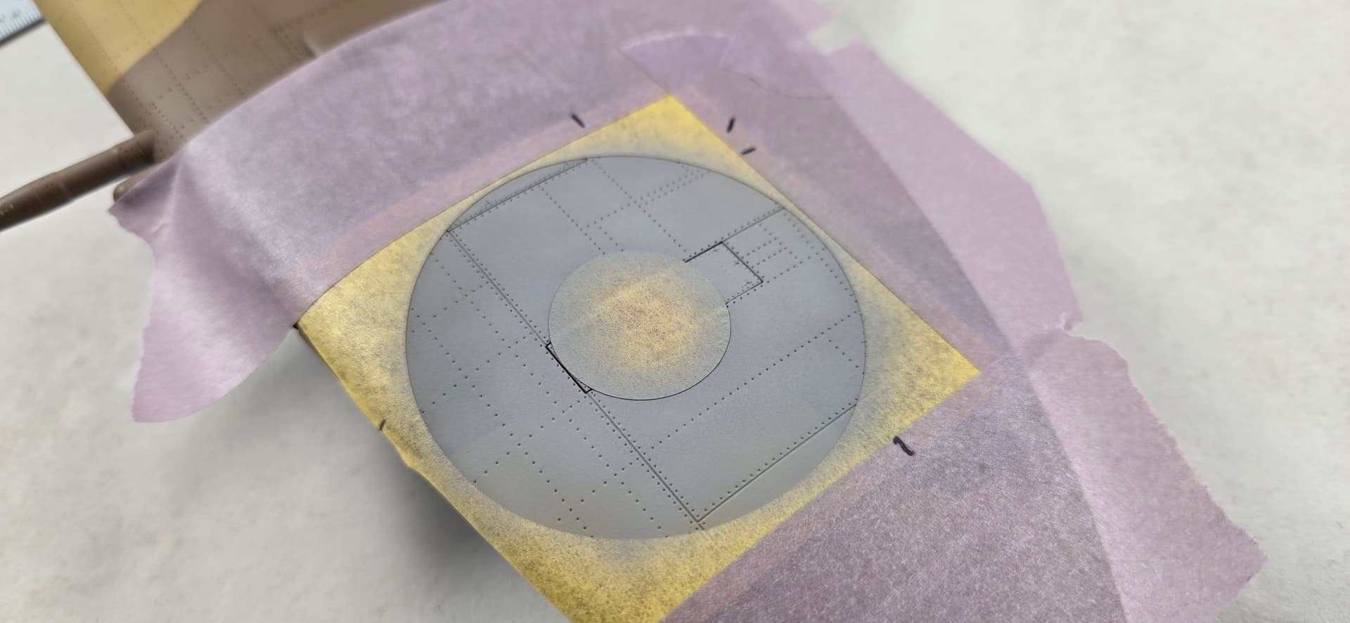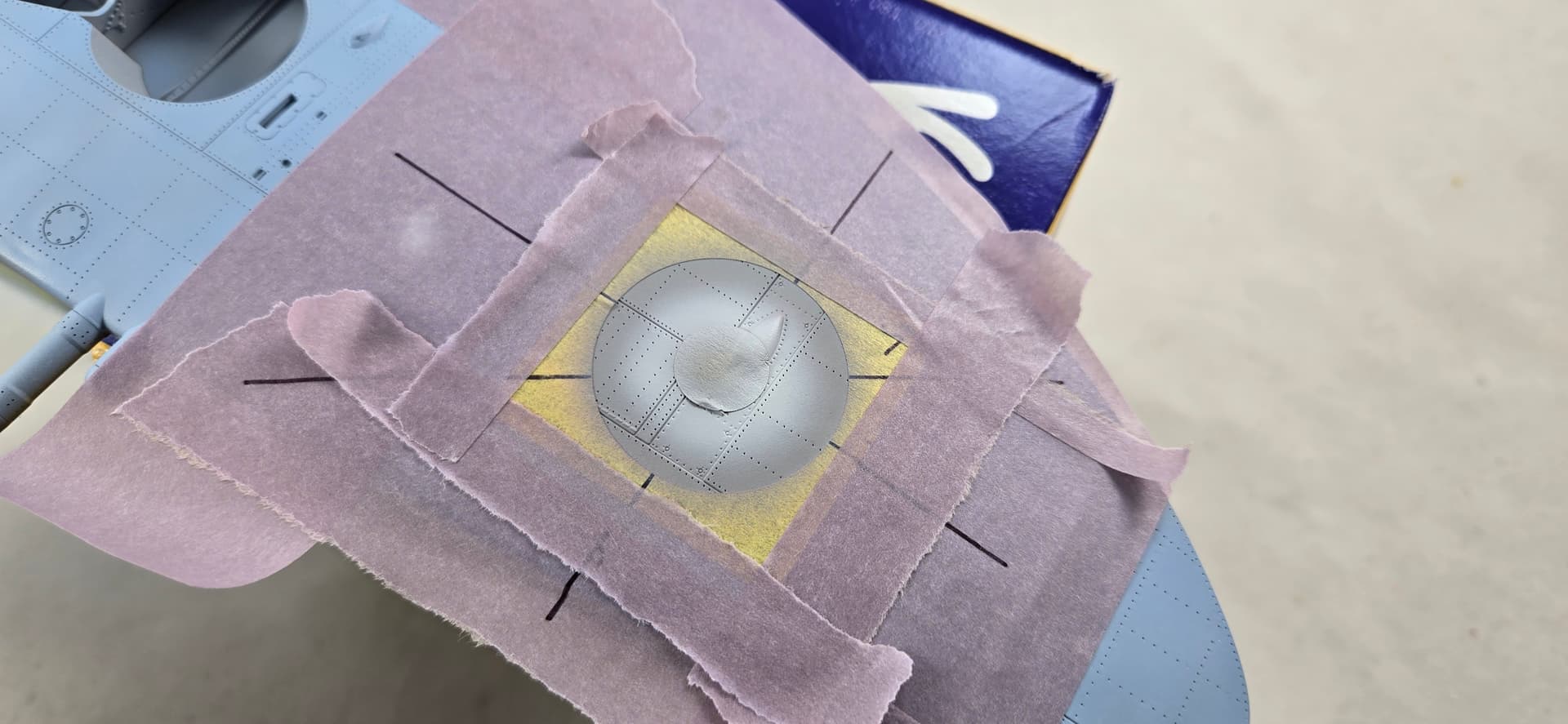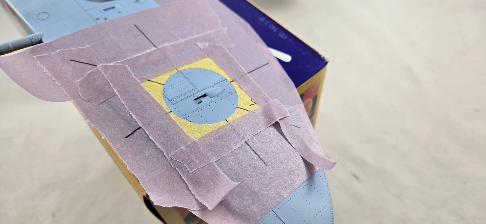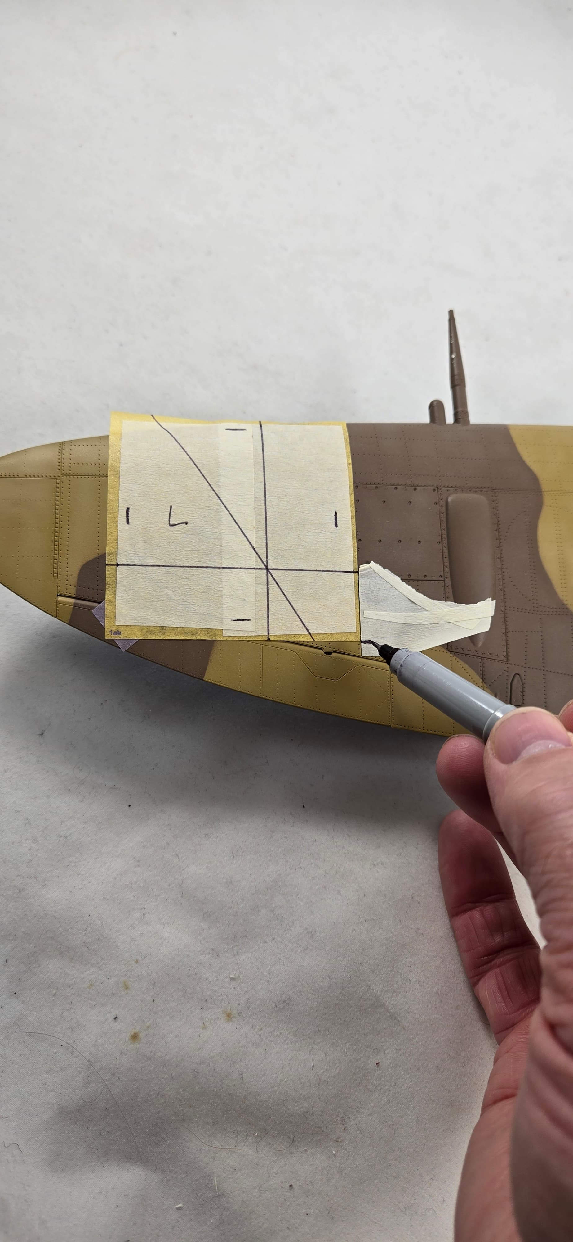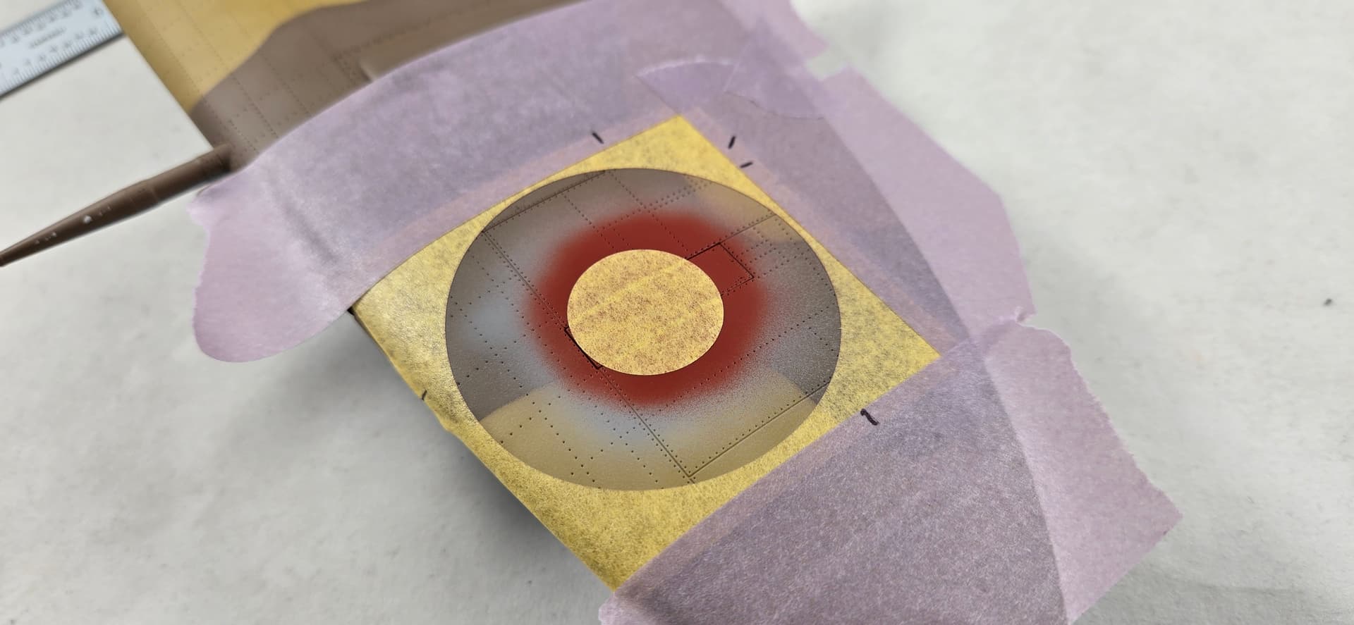 And again, a perfectly registered roundel. I think this method was a lot easier than trying to align marks that were getting painted over. I only had to carefully place the corner of the next successive mask in the right angle formed by the tape and align the two edges, and perfect alignment resulted.