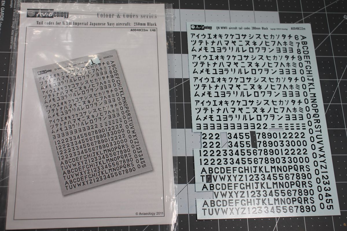 Here is a start to my build and the decals I need. I ordered some Japanese WWII black tail codes a few years ago for an odd plane I found a picture of. I just needed the black tail numbers. Now I need to find the same ones but in white, they do make them, a company named Aviaeology.