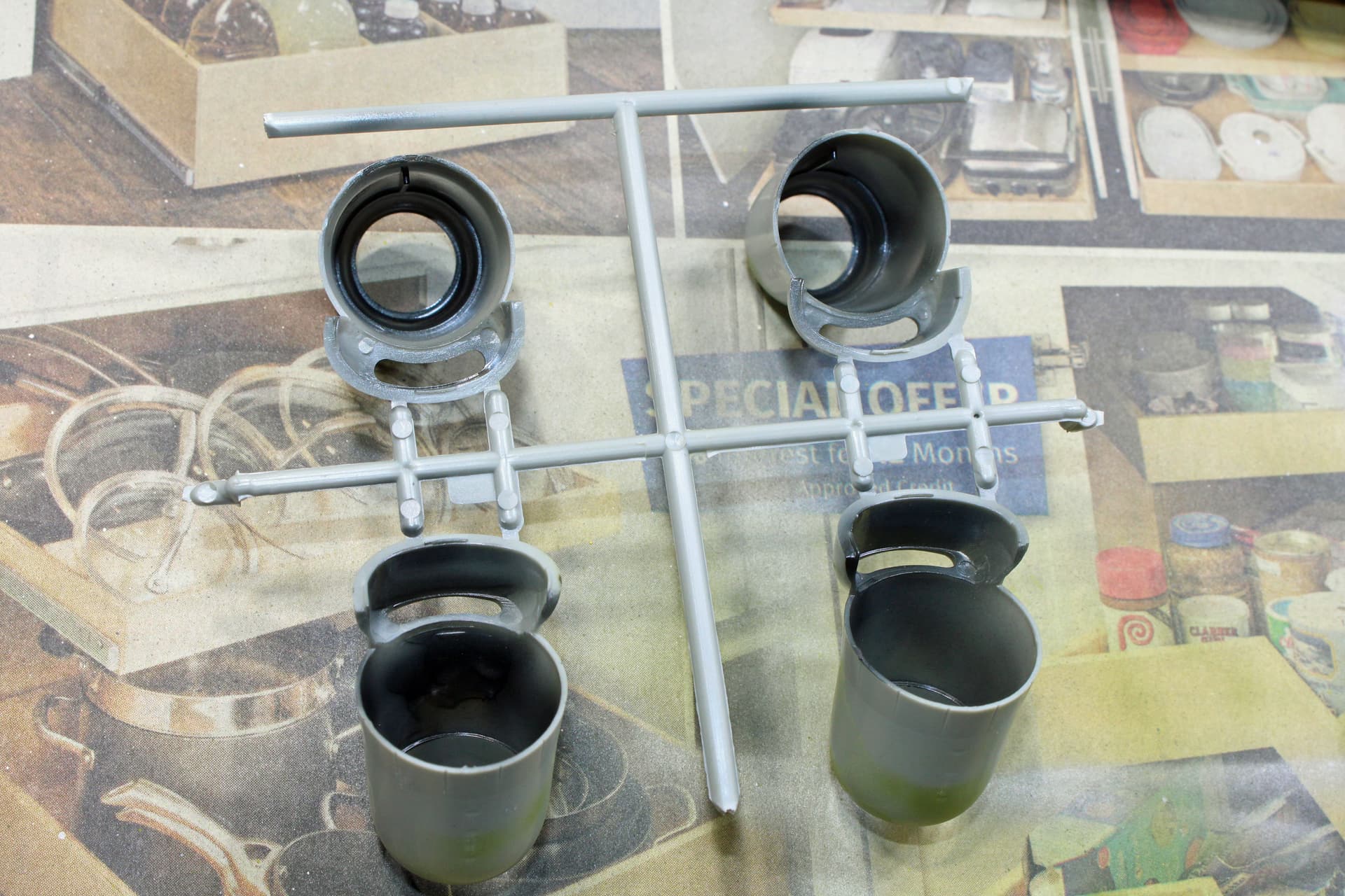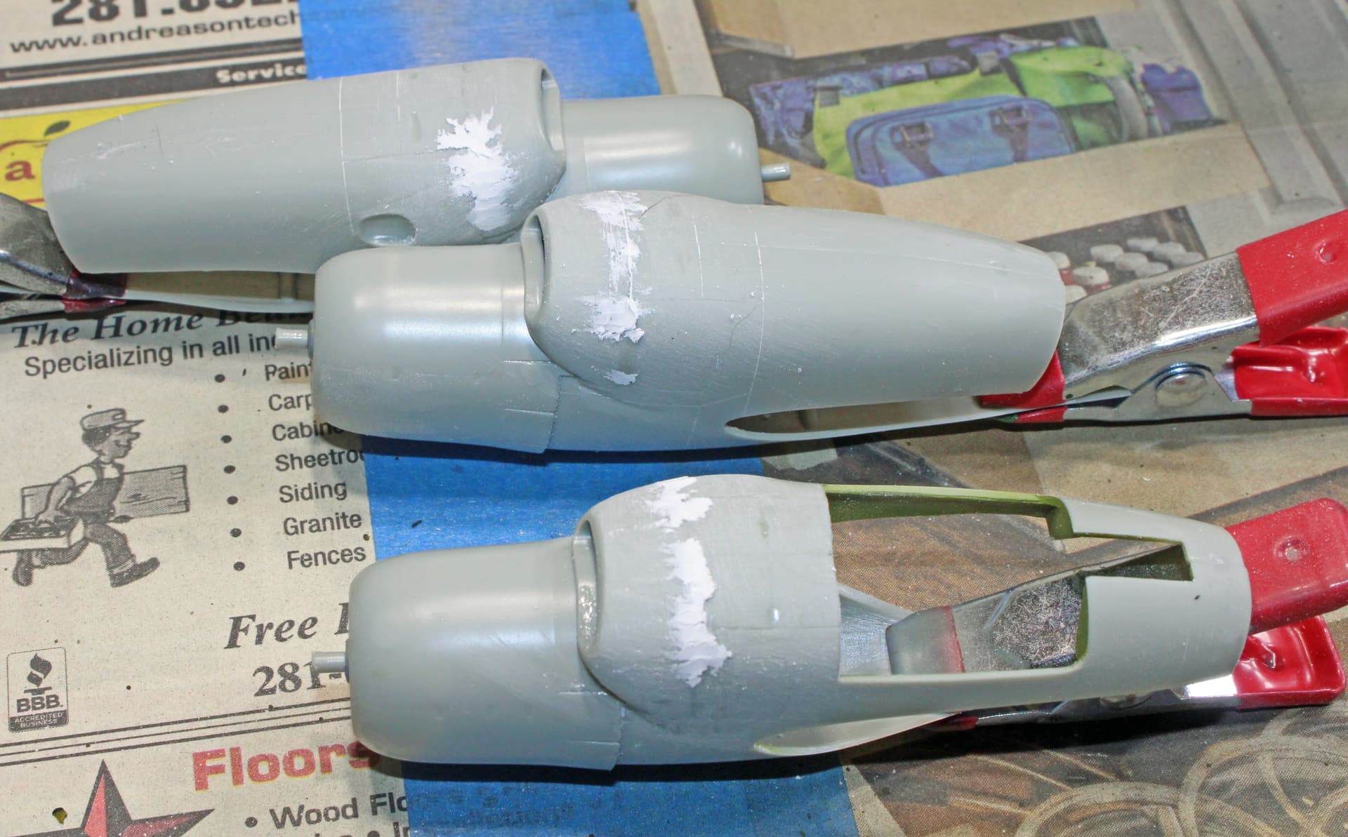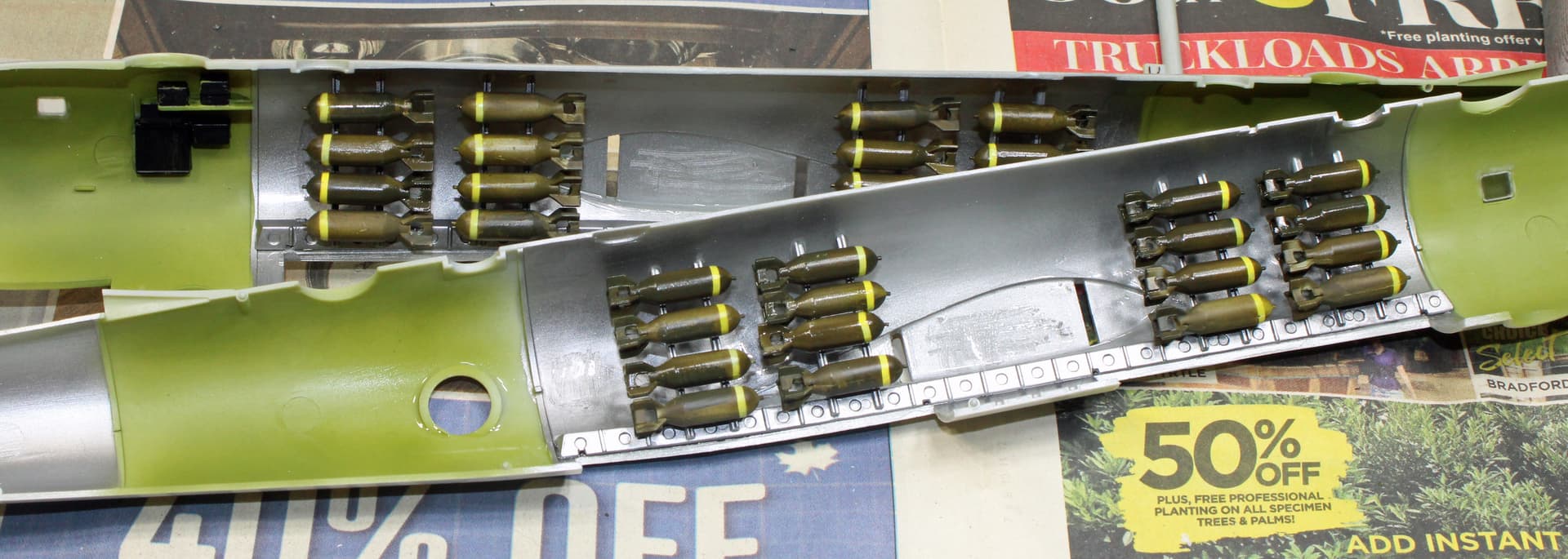Been working from my office this week until today, so was not able to get any significant bench time until now. I had finished painting the bombs earlier this week, with an additional paint session to go back over them to touch-up areas that didn’t cover the yellow overspray sufficiently.