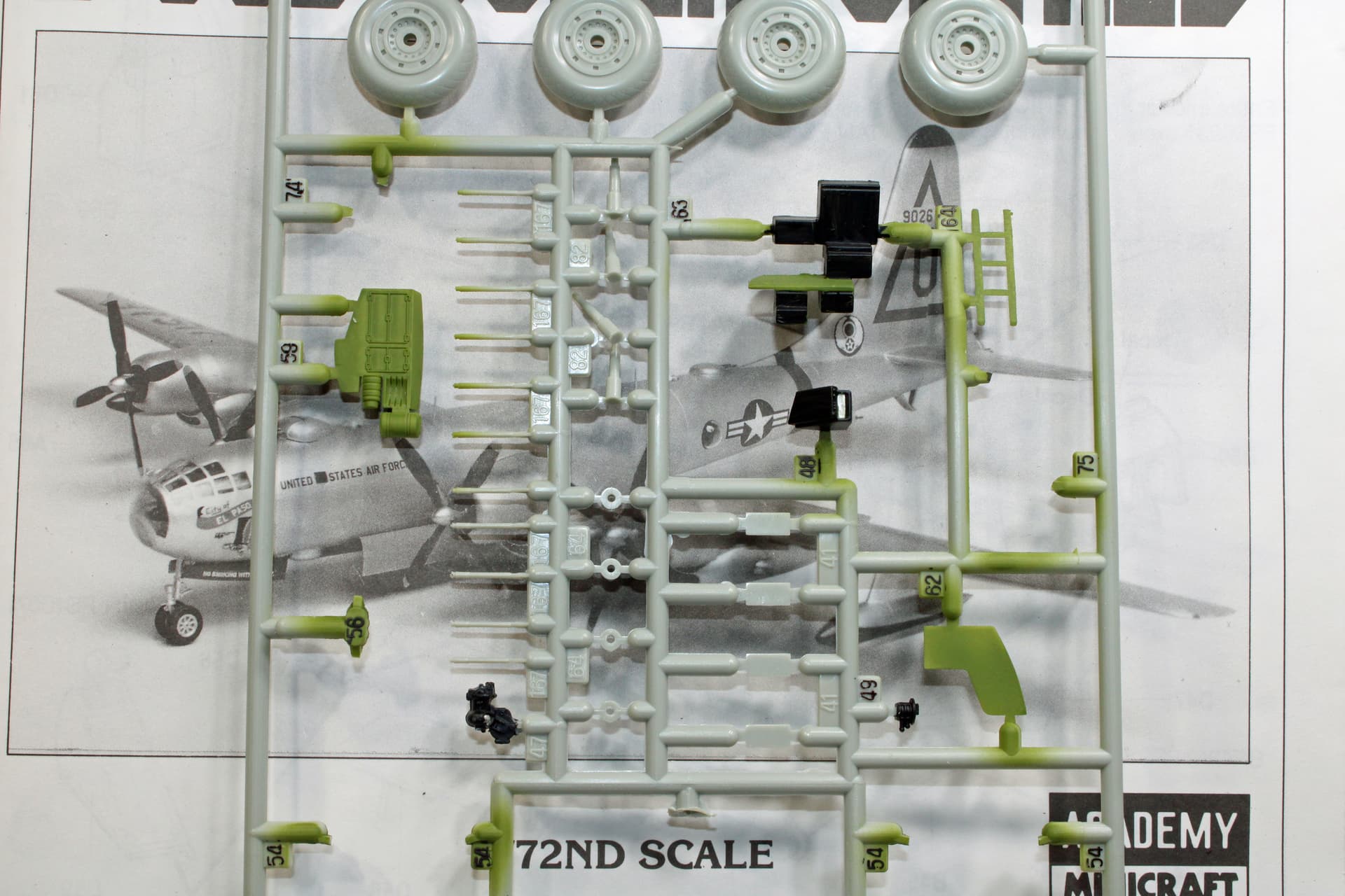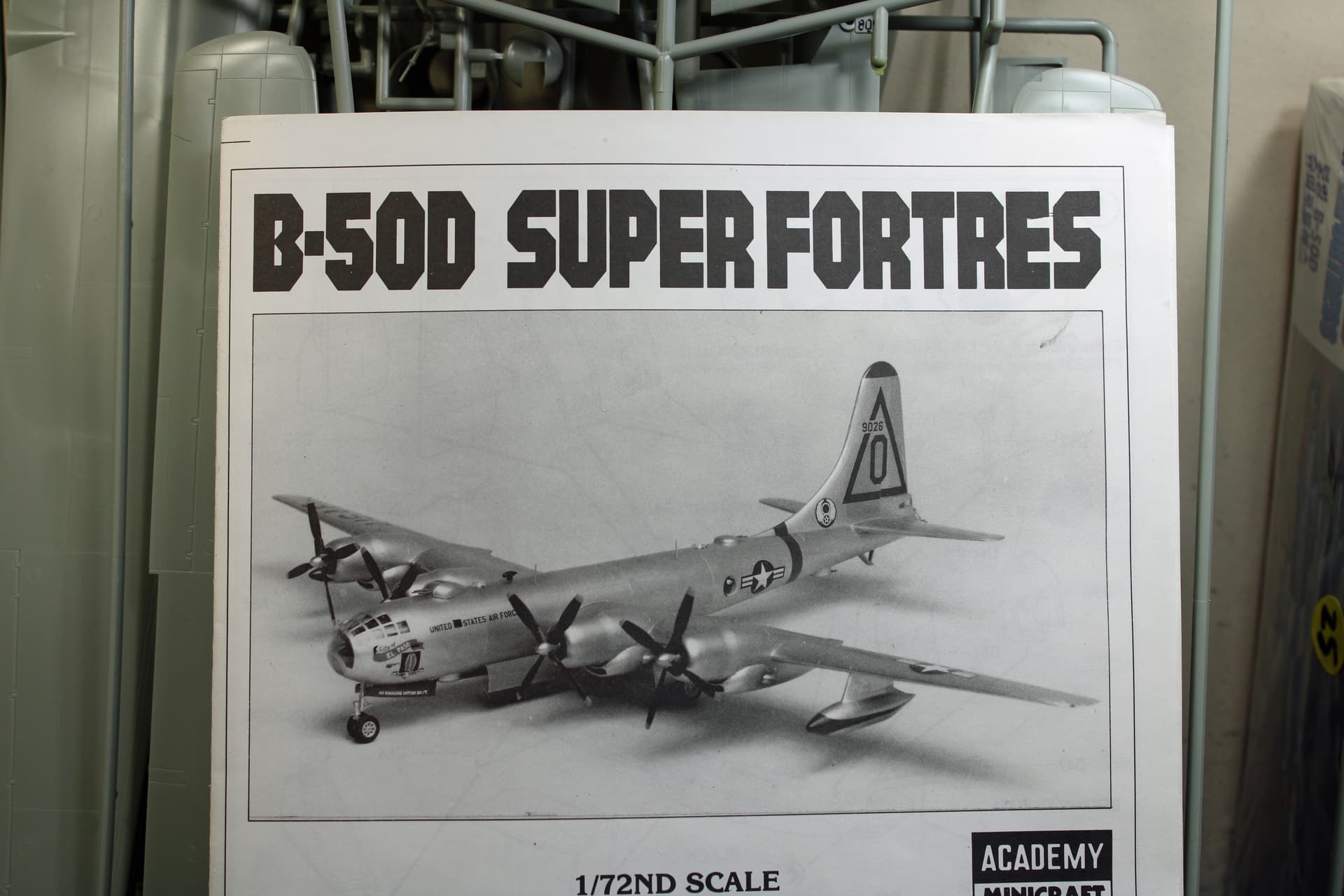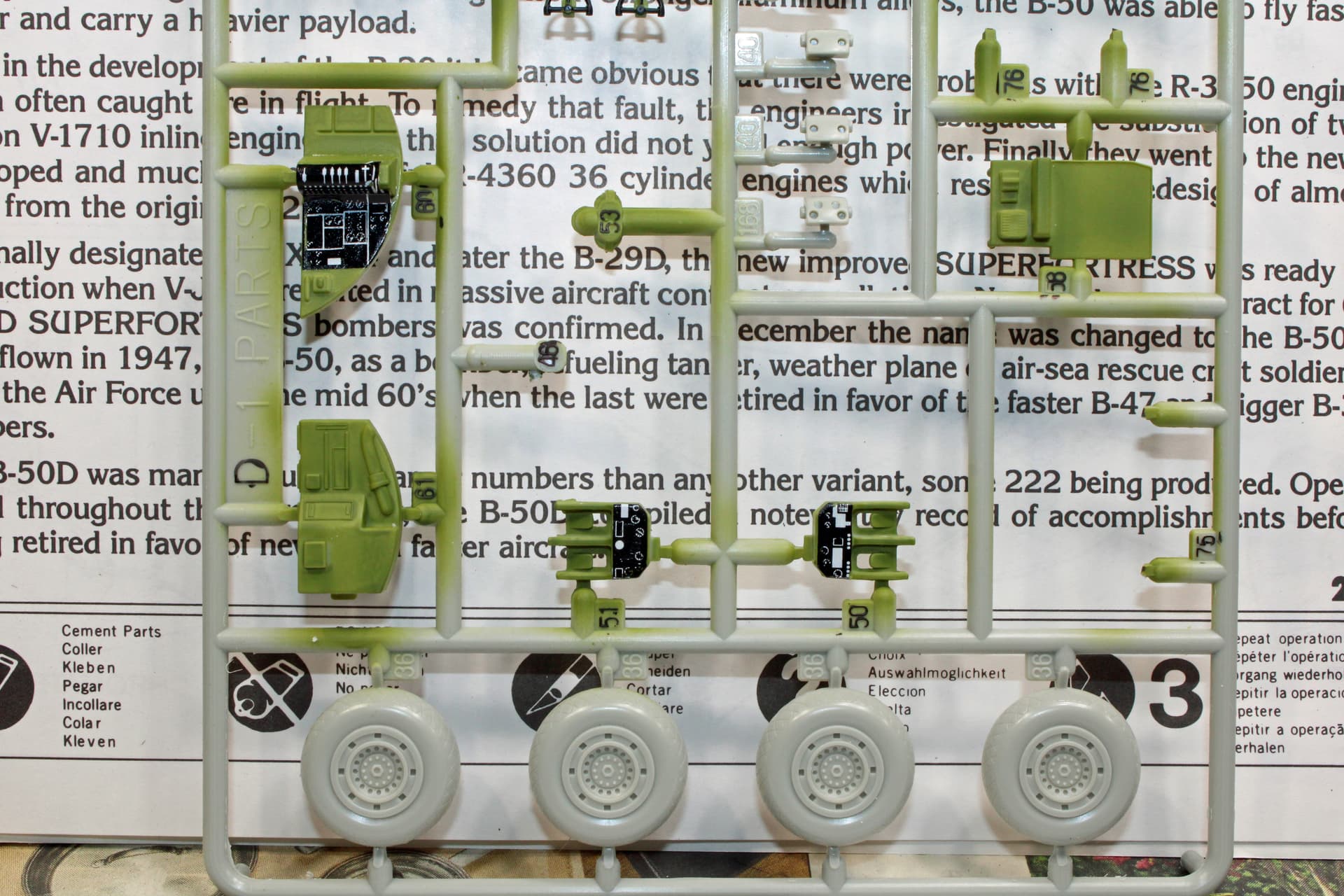I built Academy’s B-29 Superfortress “Enola Gay” many years ago. Just doing a comparison, these kits share many of the same parts. The rudder on a -50 is much larger than on the -29, but Academy prepared for that by molding the rudder pieces separately from the fuselage. Engine nacelles are also different, which again, was considered when they manufactured the molds.