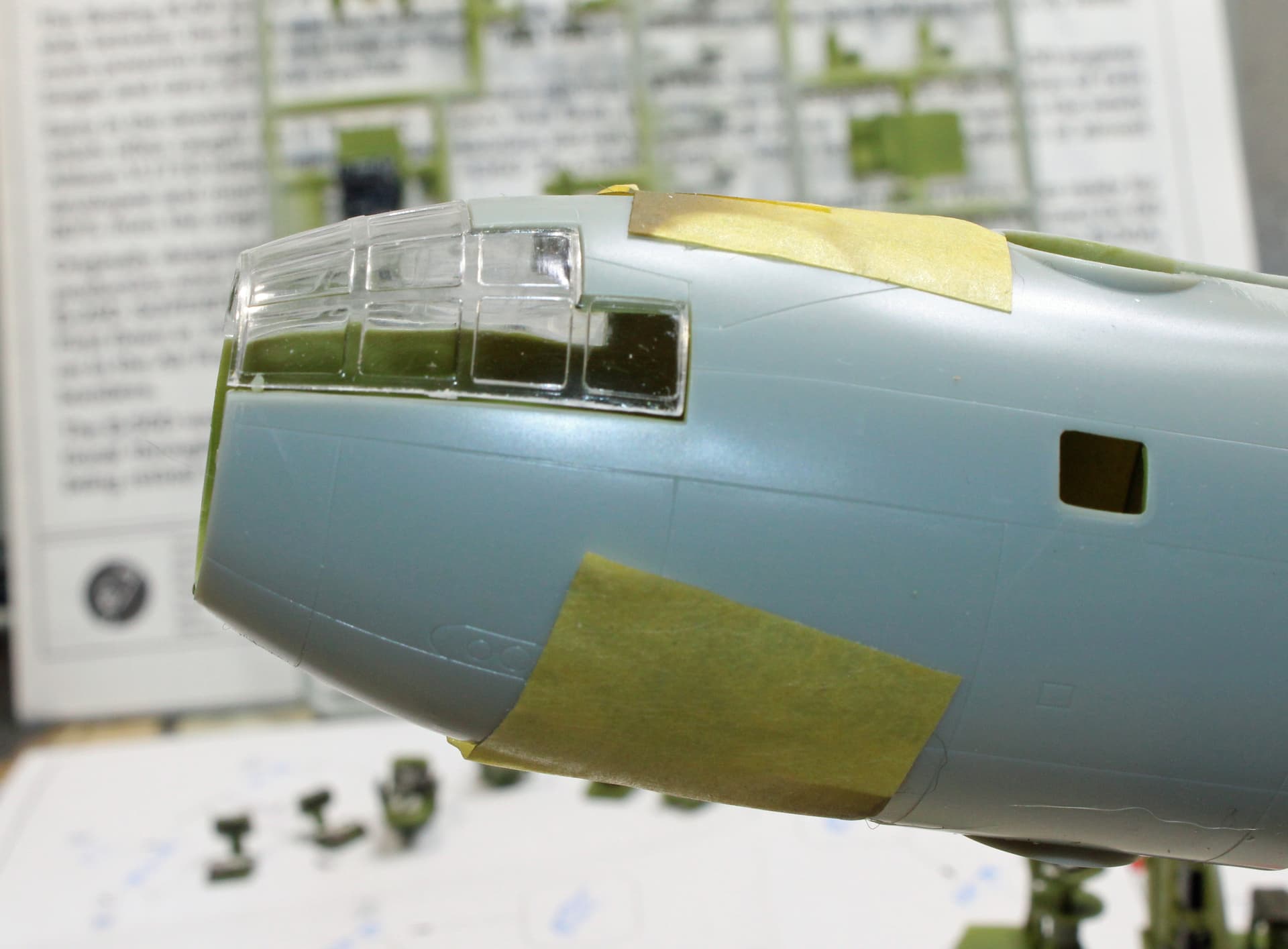 I found another post on FSM where the builder went through a tutorial of using this tape. I’ve lost that thread due to my computer rebooting itself one night or I’d link it here. But the selling points for this tape was its lack of residue left behind when removed from the subject, and that it is transparent enough to allow you to see the boundaries to cut at - unlike using Tamiya tape. The big caveat in using this tape is to use a new, sharp knife blade. My first attempt at cutting the tape over the rear gunner windows failed because my much more dull blade simply didn’t cut the tape.