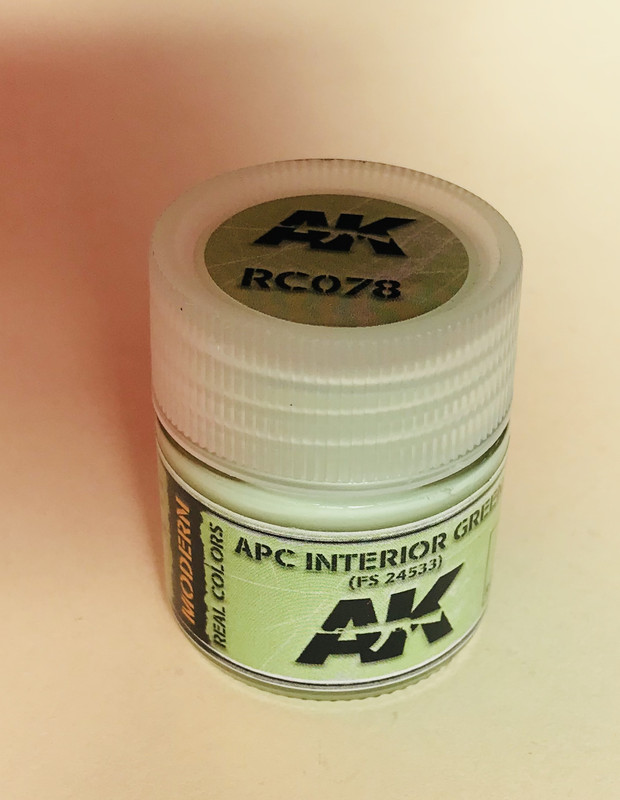 This paint line is a new addition to the ones carried at a LHS that I came across on my last visit. They have a LOT of colors not previously available such as the green for the interiors of US APCs/IFVs that I picked up.