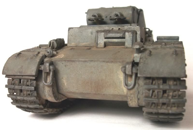 As usual Ron your weathering techniques shine through on this one. Just a couple of points/curiosity, the weathered spot on the turret on the left side seems kind of large in relation to the rest of the vehicle, trick of the camera or intentional? I might also suggest highlighting a bit more the track faces since this one’s got so much visible track area but that’s again just a personal taste issue. Congrats on taking another so-so kit and making it look good. [tup]