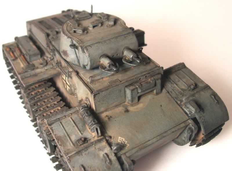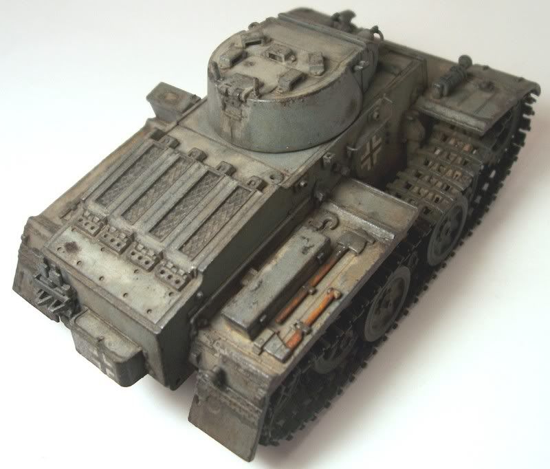 Looks mighty impressive for it’s size Ron! A little over the top with the weathering for my tastes, but that’s just MY taste! You’re right about it lookin like a mini tiger! Is this going into a dio?