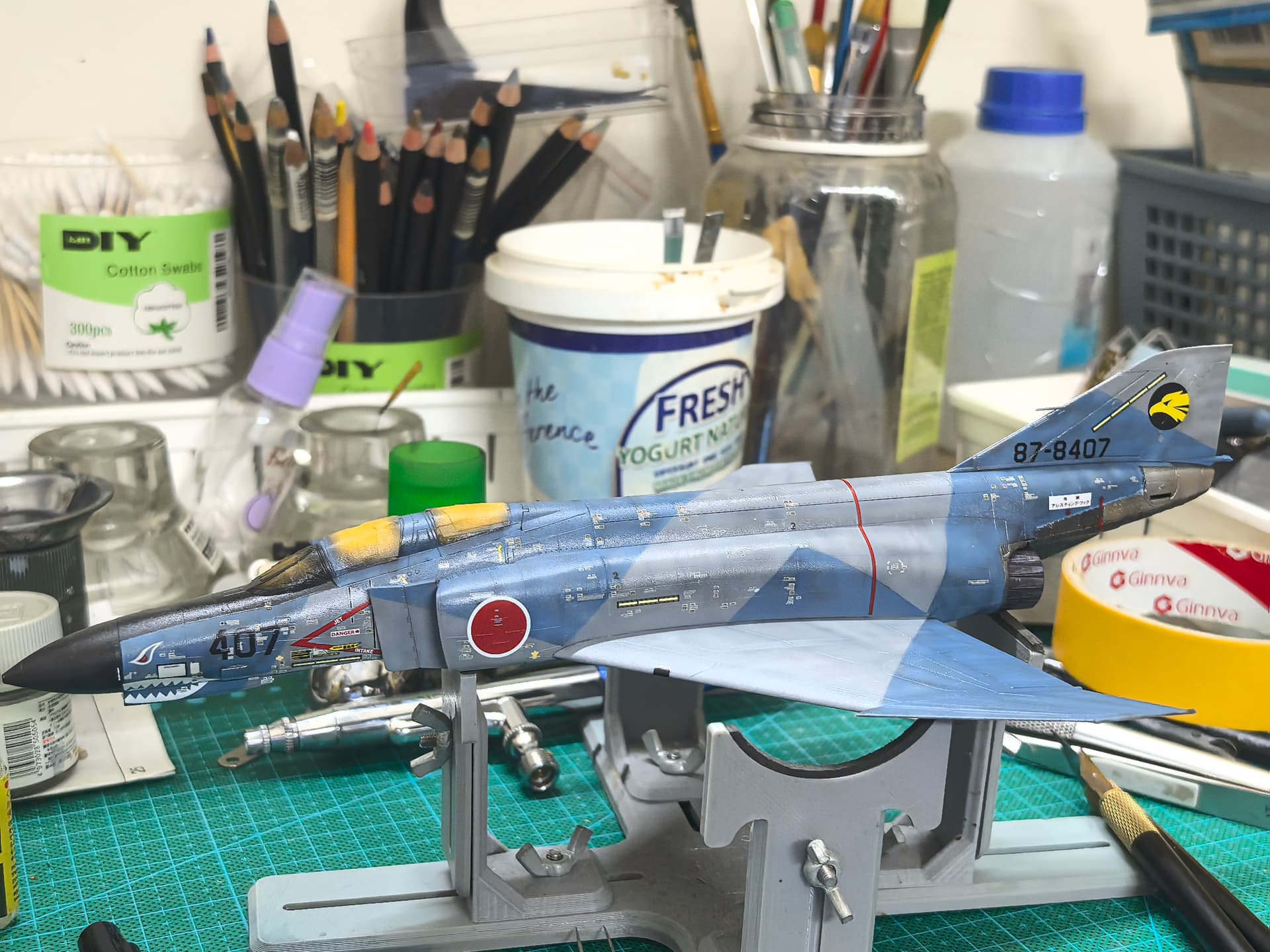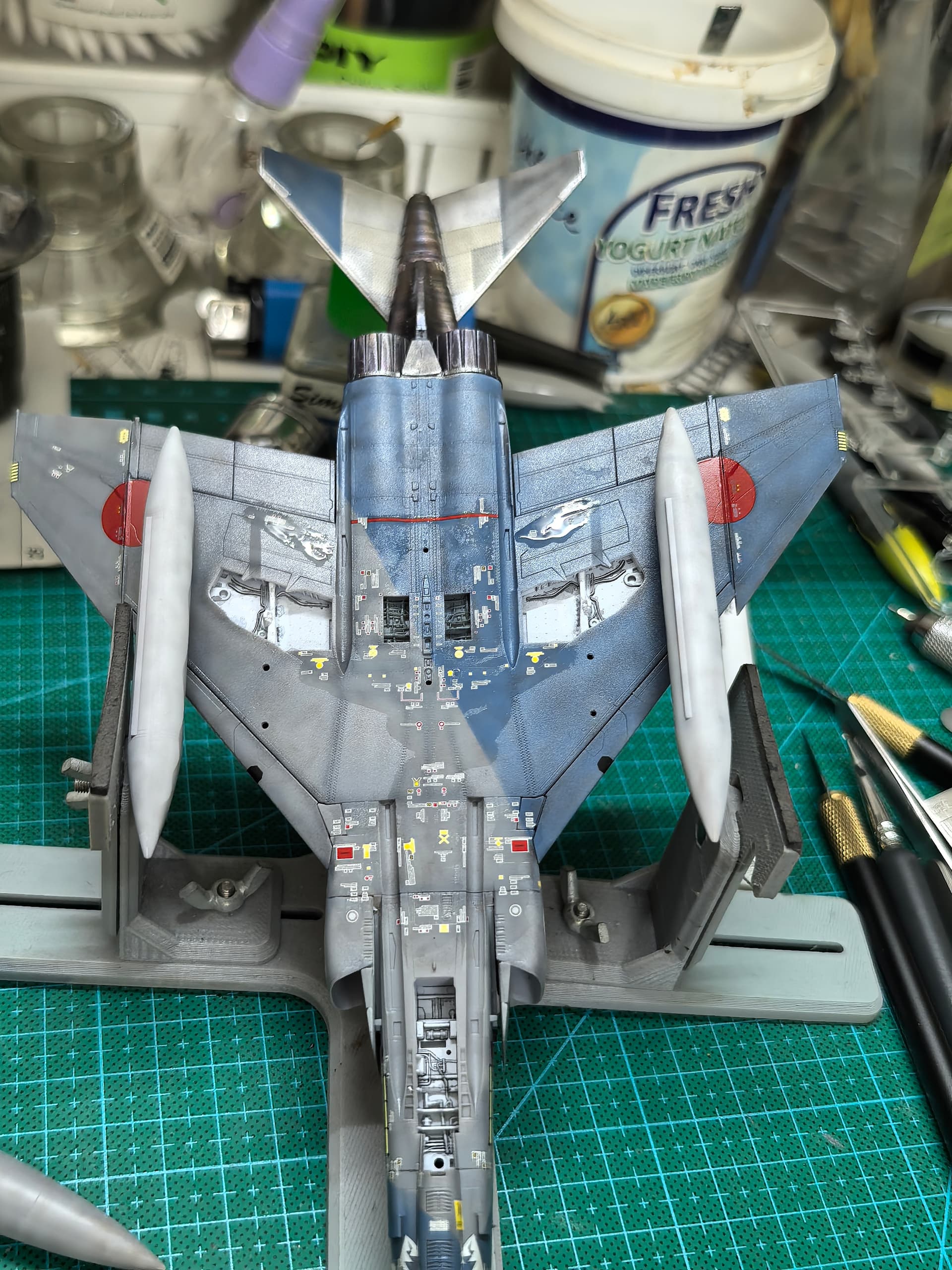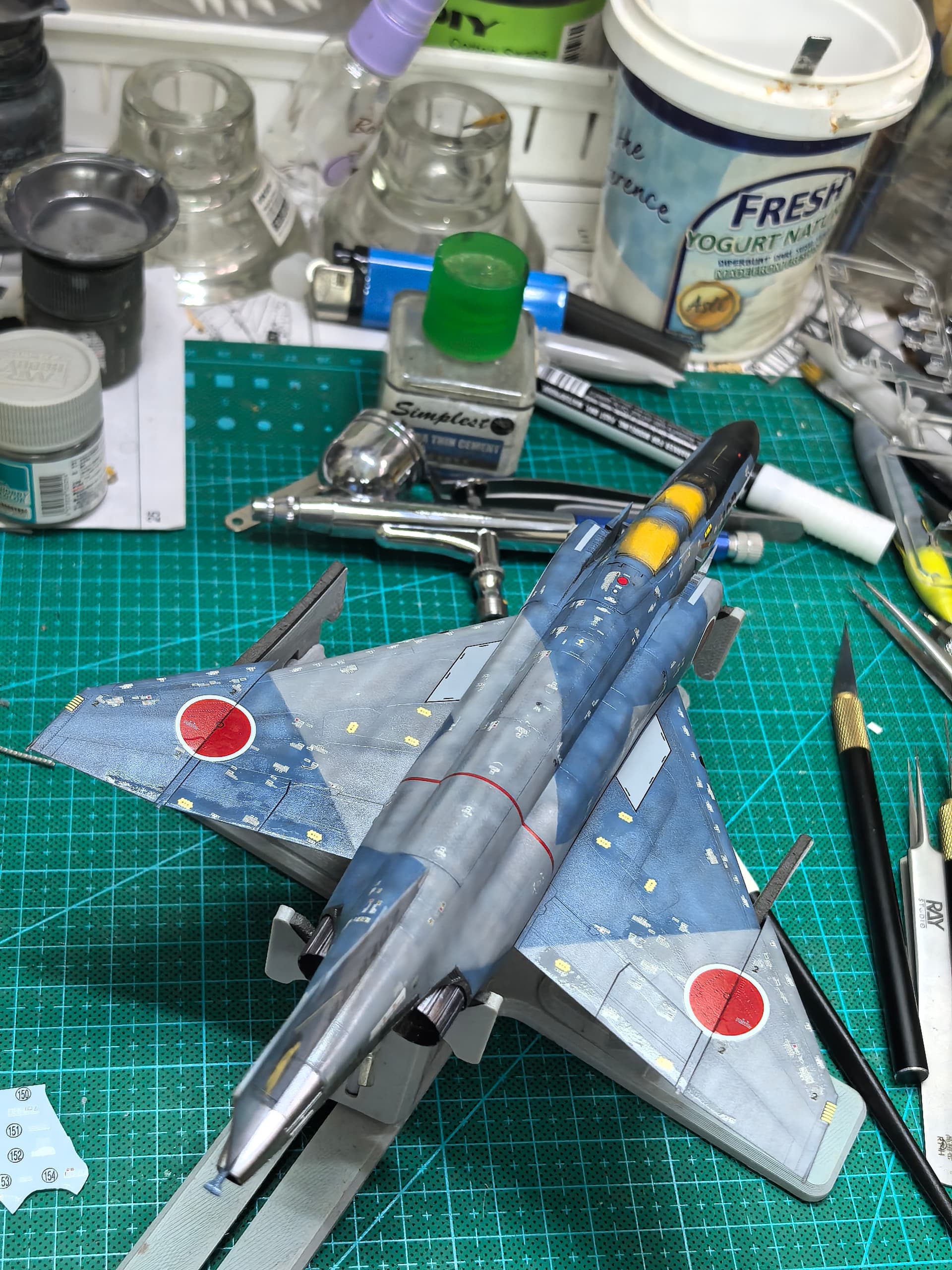 Decal process started. Quite thick… loads of Ramiya Mar Fit Super Strong required. Will need a layer or two of clear gloss after this to level out these thick decals.