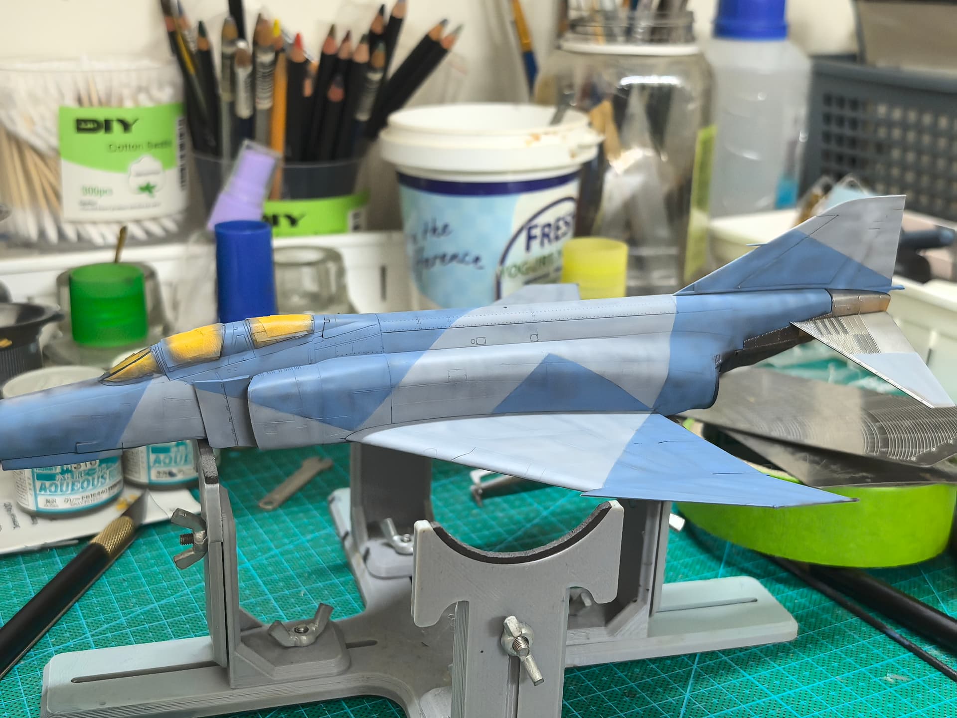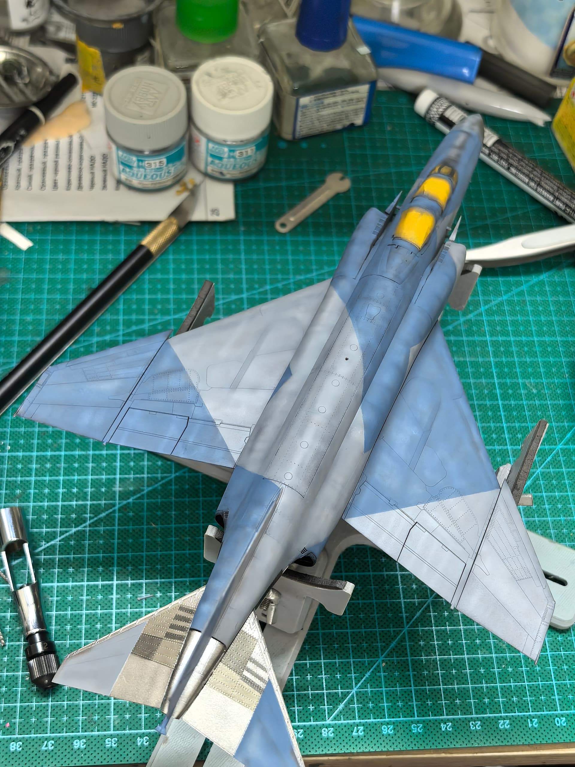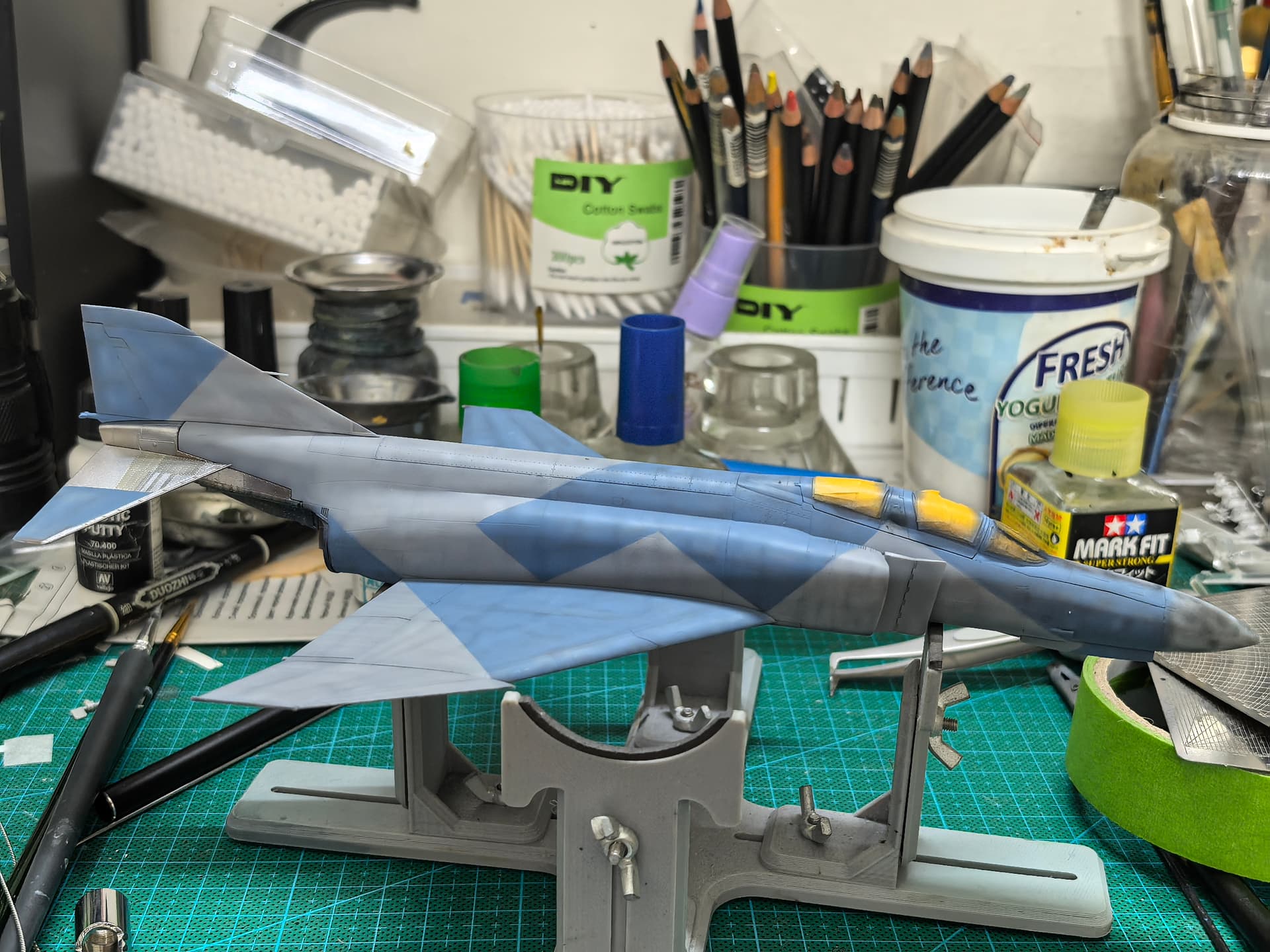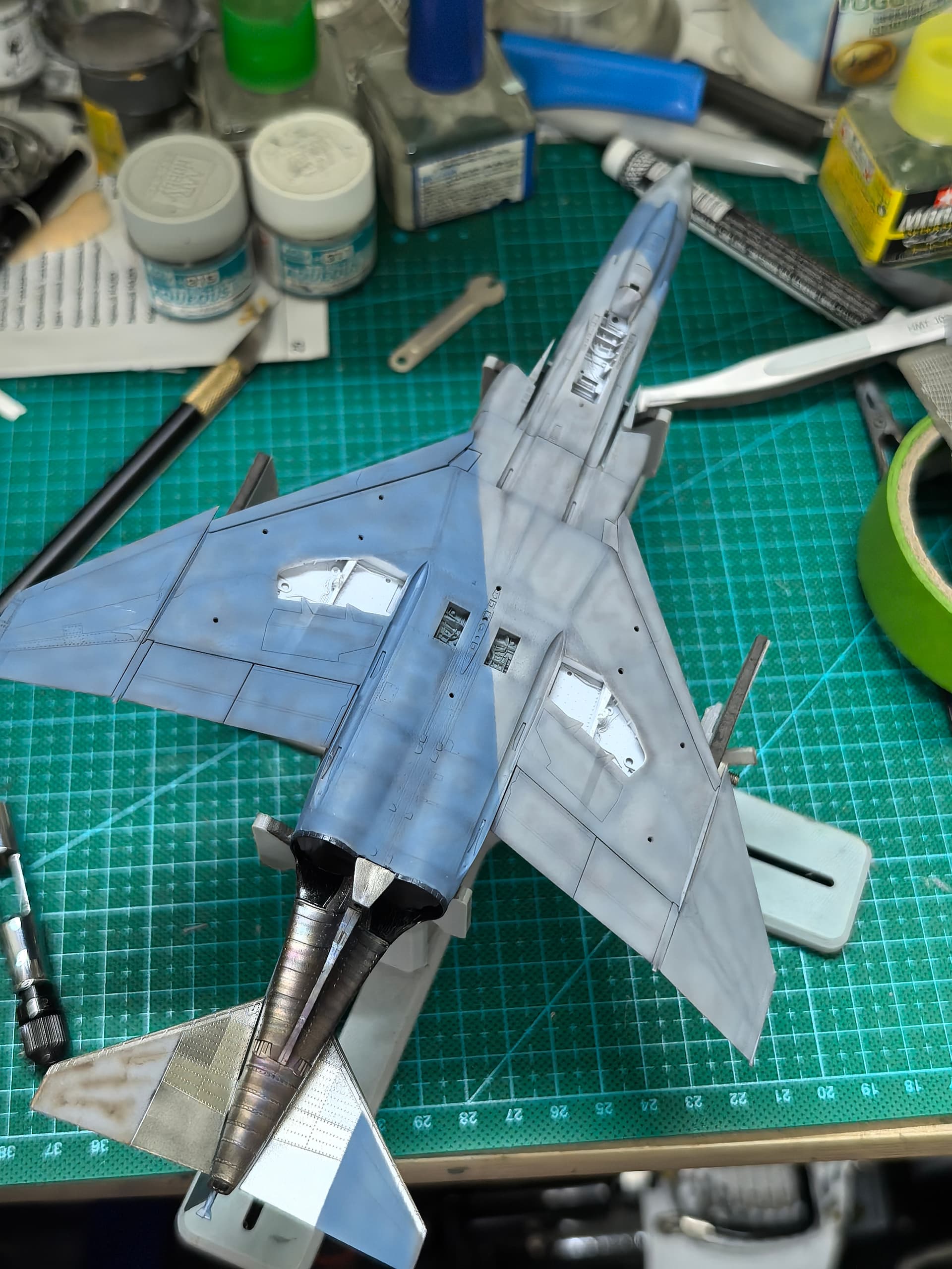 Decal process started. Quite thick… loads of Ramiya Mar Fit Super Strong required. Will need a layer or two of clear gloss after this to level out these thick decals.