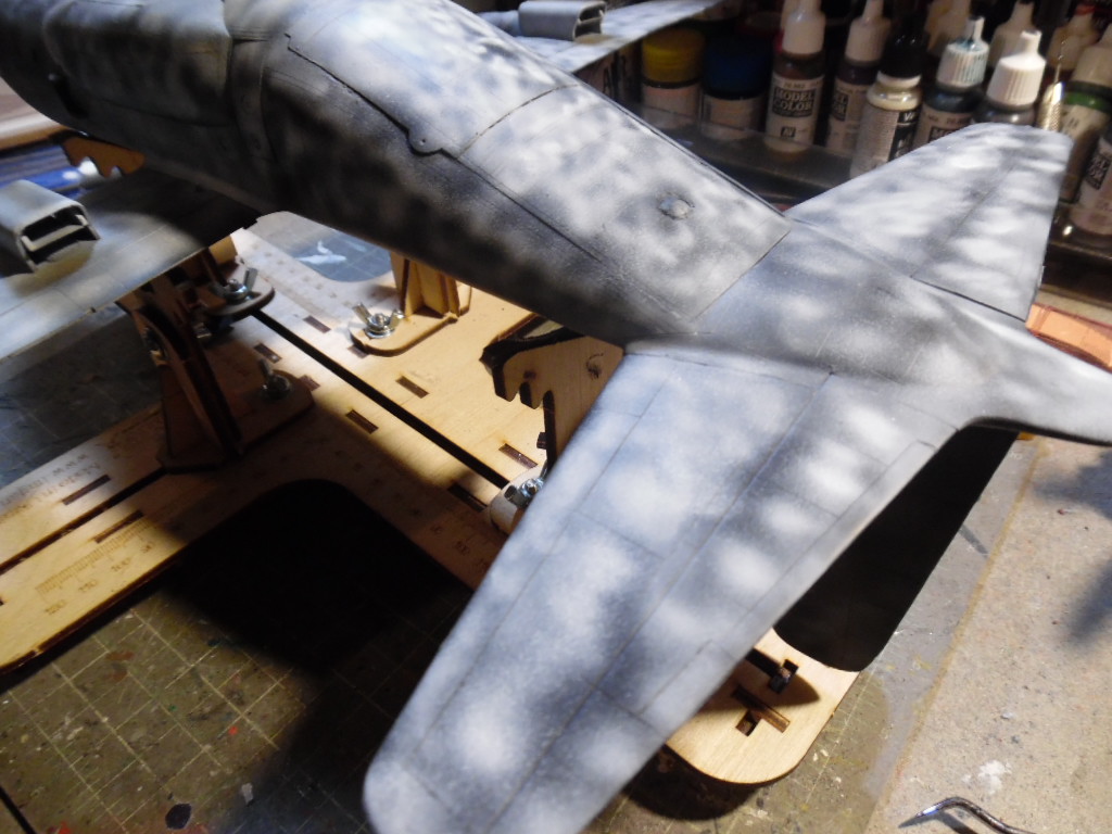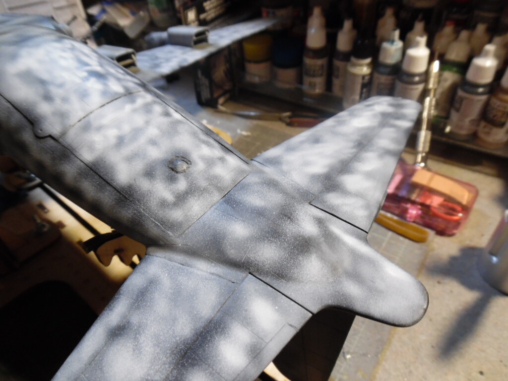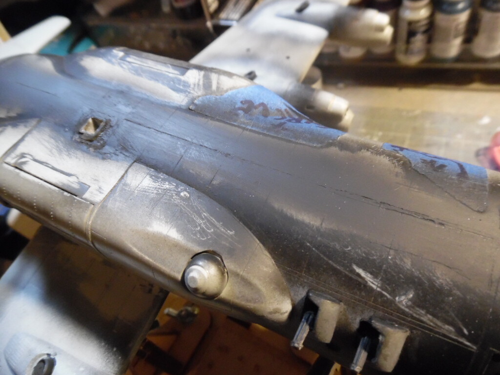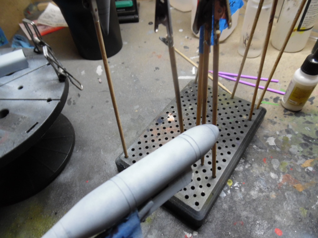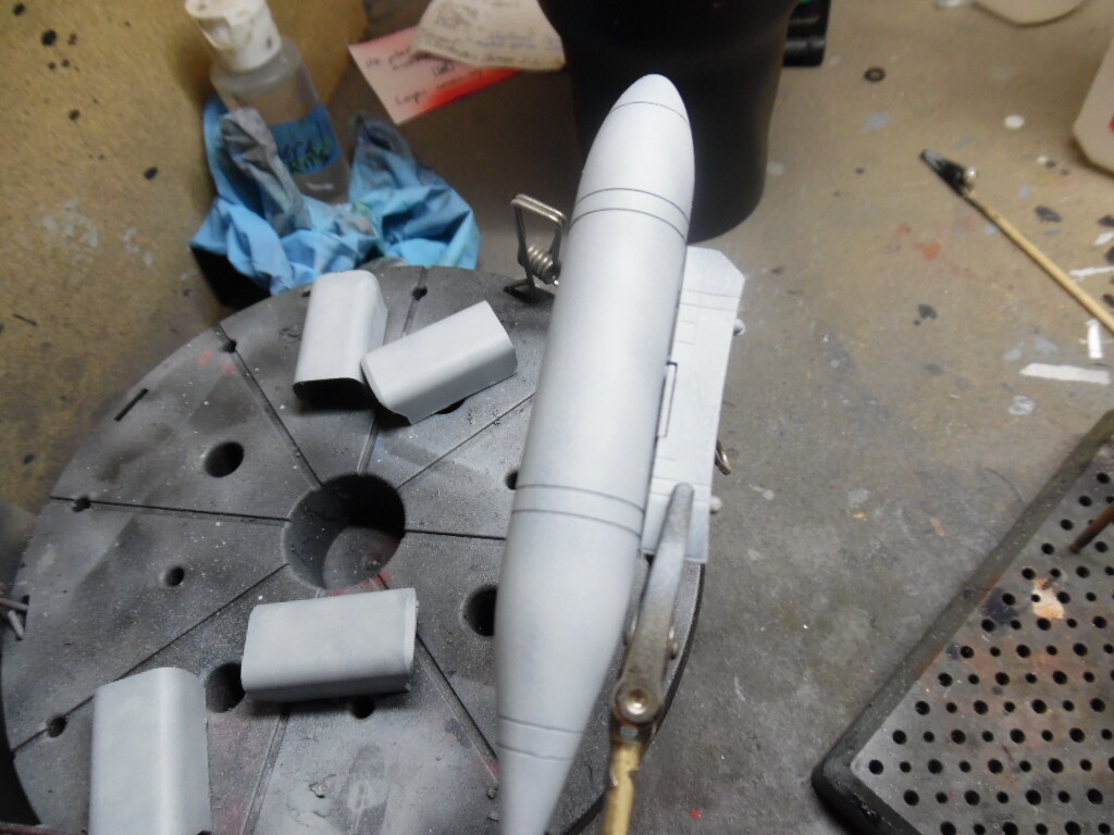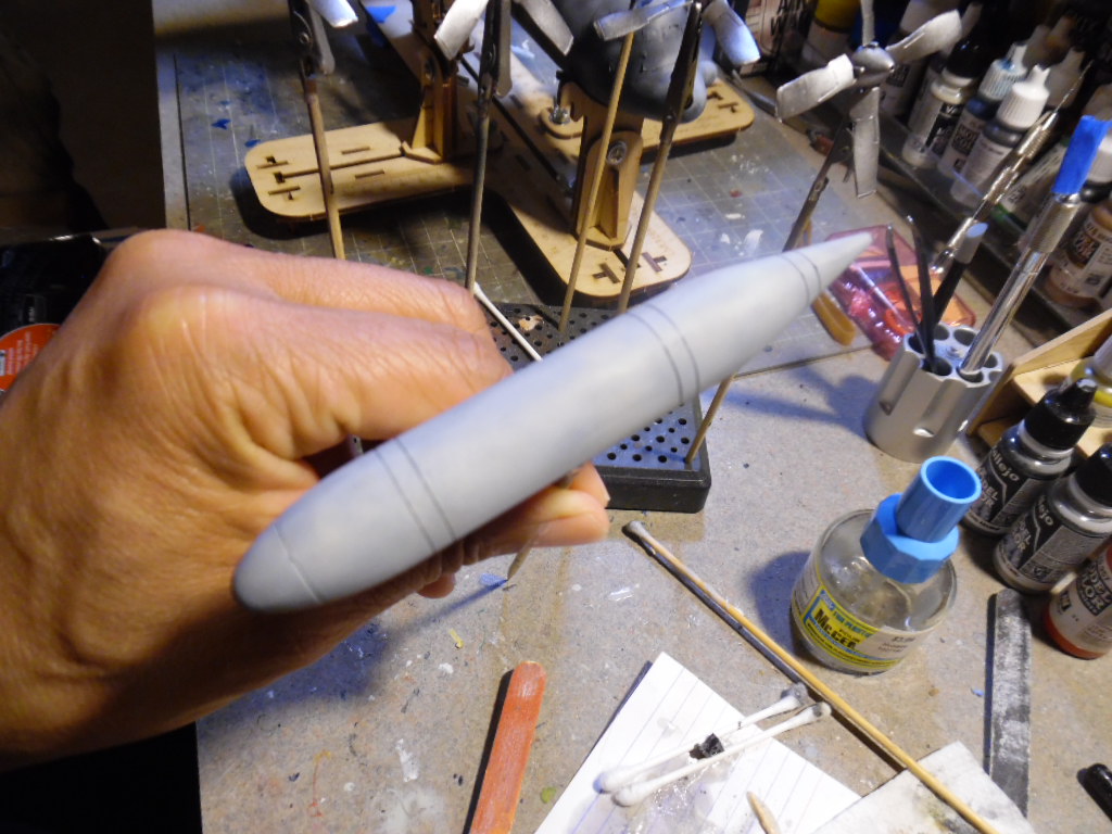 While I am showed the pics on another thread asking how to deal with seams, I wanted to share the latest. The upper seam seems to eb gone due to a lot of sanding and trying out using sprue goo. Will try on the lower seam and see if that works. Also I cans till see there are sanding marks, since I literally started sanding with 80 grit. maybe a little too rough, but it did get the job done. I did redo the seams on the drop tanks, figured I could at least try to minimize them some more. I will try to get some pictures of them later. So enjoy, and thank you everyone for all of the tips and suggestions.