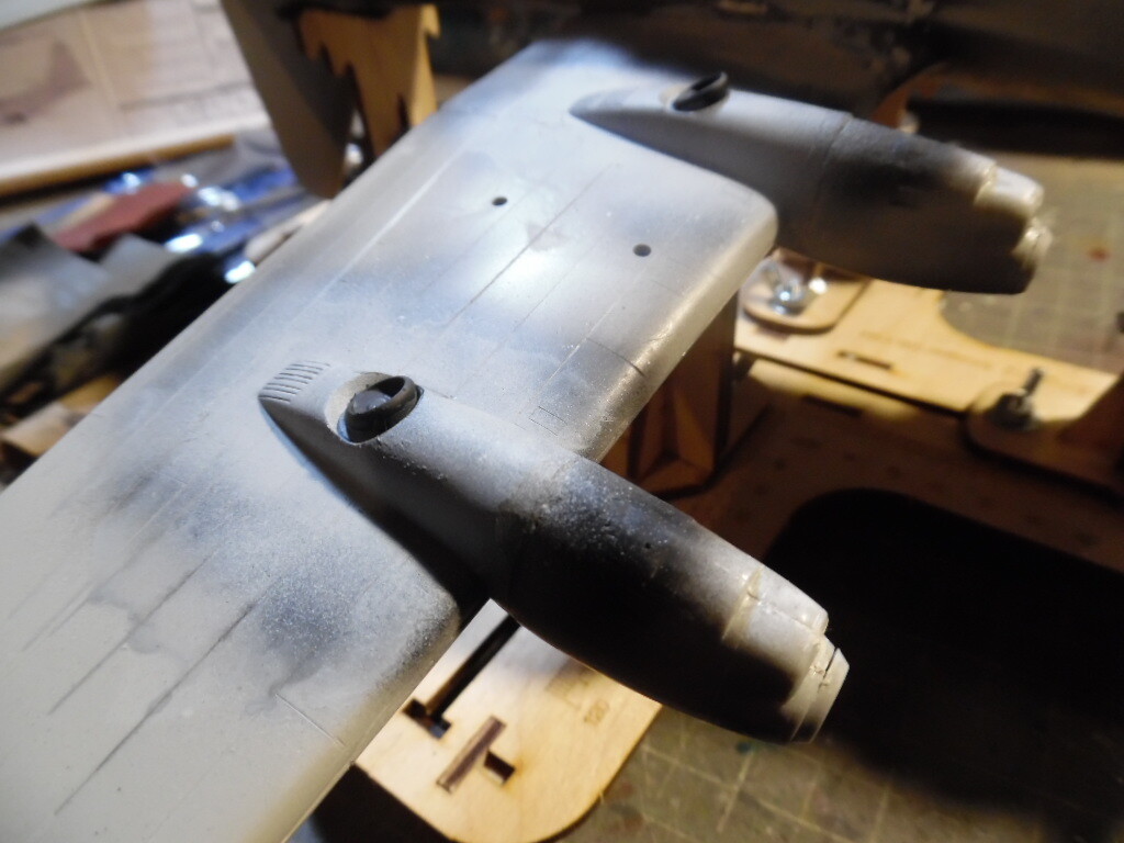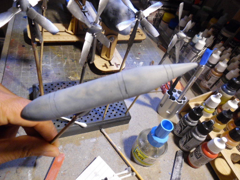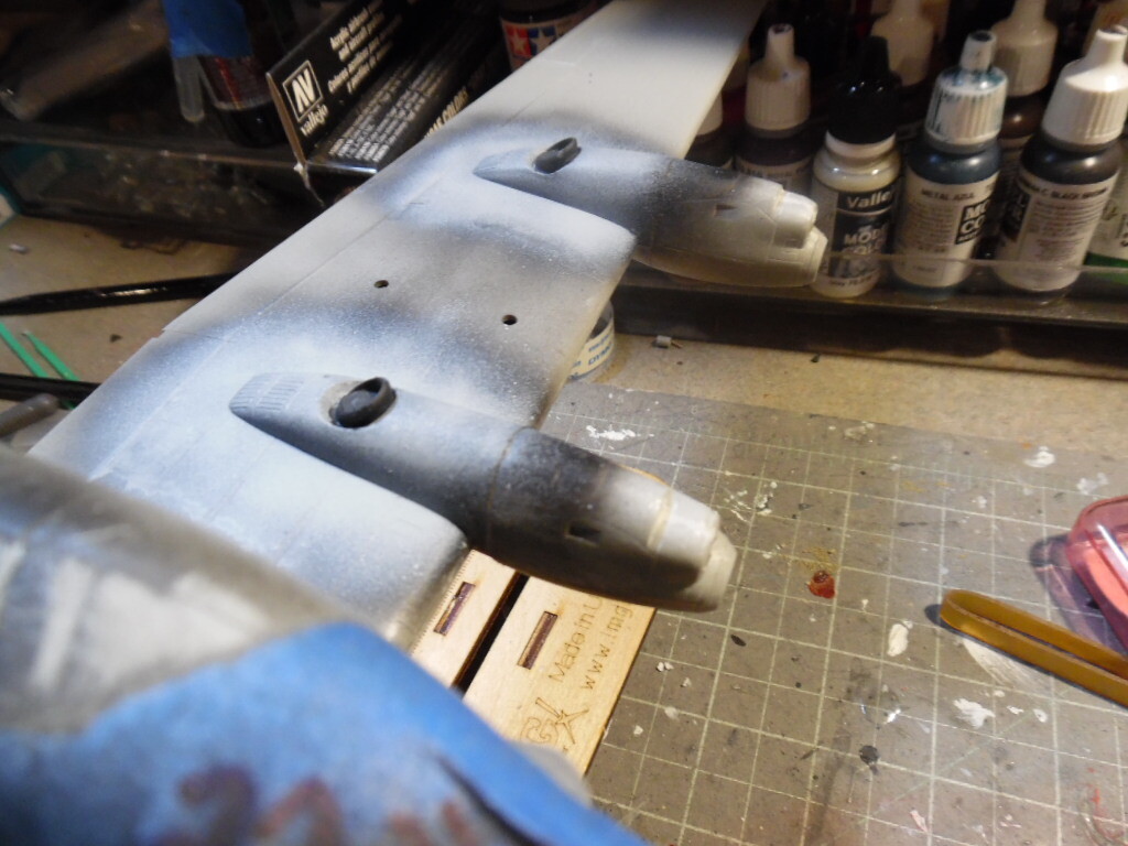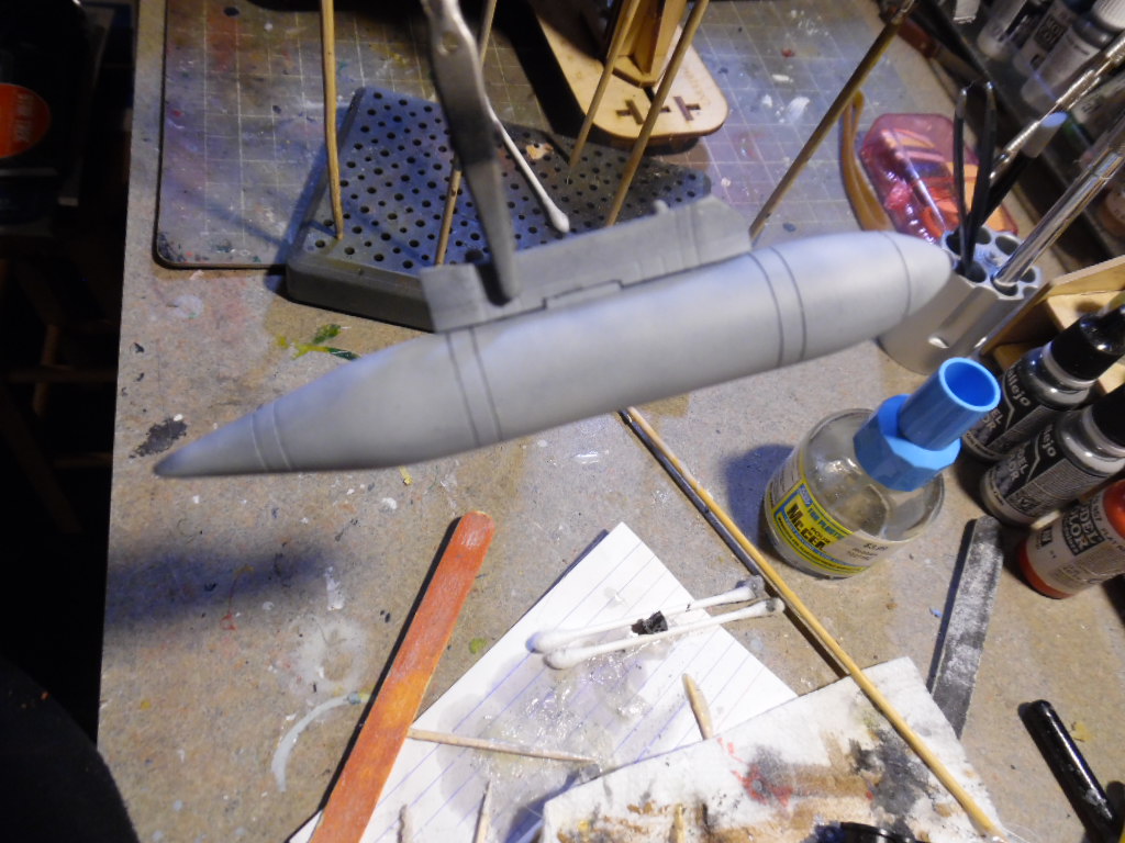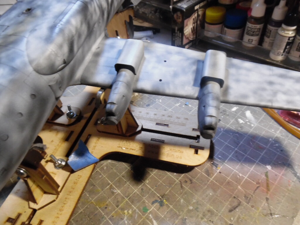 Some more work done on the gunship. A very “interesting” build for certain. Seams are sanded and hopefully taken care of, working on the putty, so I will need to work on that some more. The engines had to have putty added where there are flaps on the actual plane, yet no pieces included in the kit. Only major issue on my end was forgetting to build the hole for the brass tube to make this a in-flight build. Of course, remembered this step… after I closed everything up. ![]()