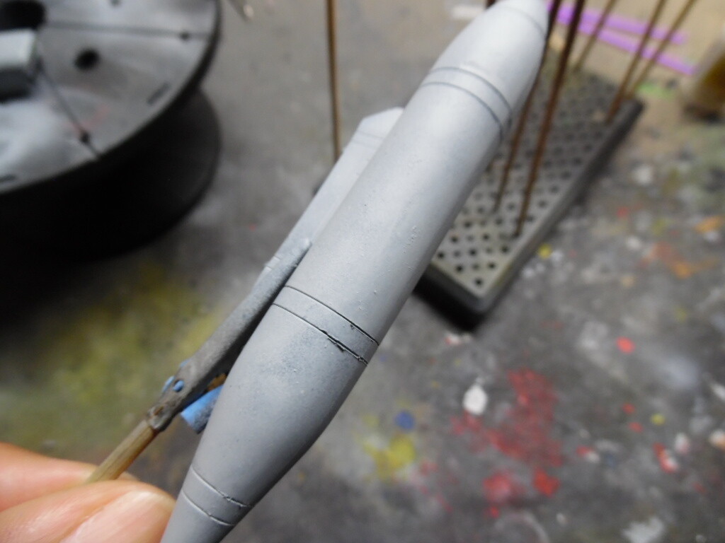 My first true attempt at panel line scribing. Better than I expected, definite room for improvement. Just need to touch up some areas with black primer then I will be ready to do the marbling and then the base color of light ghost gray.
