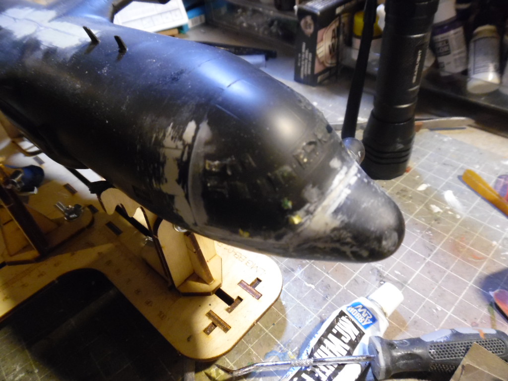 here is the current look for my AC-130H. Still tackling the seams, yet it is getting there. Running into an issue if I sand too hard, it will crack along the seam itself on top and I have to glue and start all over again.