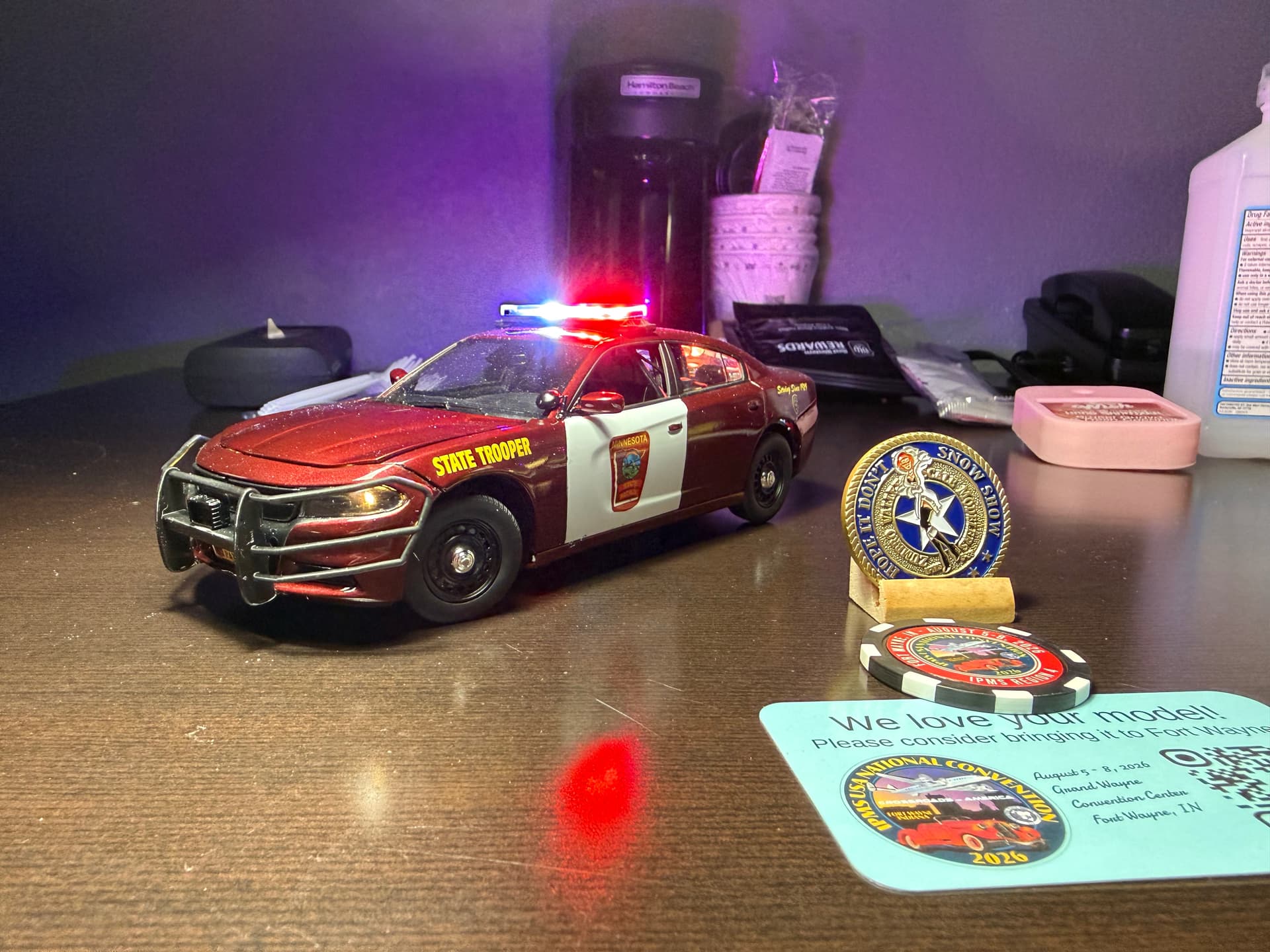 Congratulations! Great looking Charger. I’ve got that kit in the stash (CHP right?). I like the lighted lightbar - where did that come from? Pushbar is pretty cool as well. Great job.