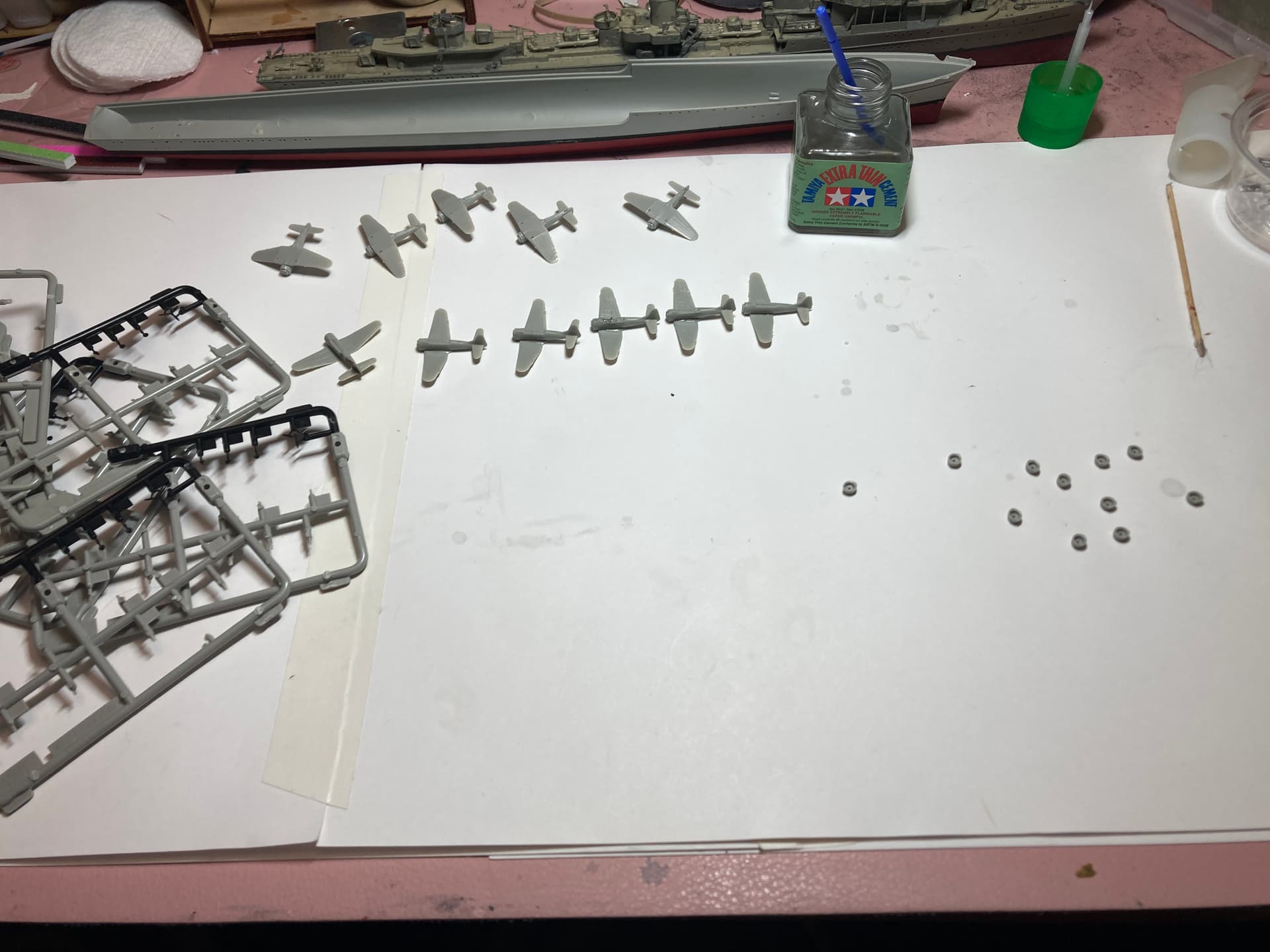I’ve been working on a 350 Hornet CV-8. I’m assembling an air wing of about 65 aircraft for the air wing and 16 B-25s. My approach has been to assemble the fuselage, cowling, and horizontal stabilizes for each of the air wing using Tamiya liquid glue. The rear horizontal stabilizers were fragil and were easily broken. My fix was to flood them with thin CA. Next install wings, paint, decal, add fiddle parts, weather, add some weathering, and call them done.