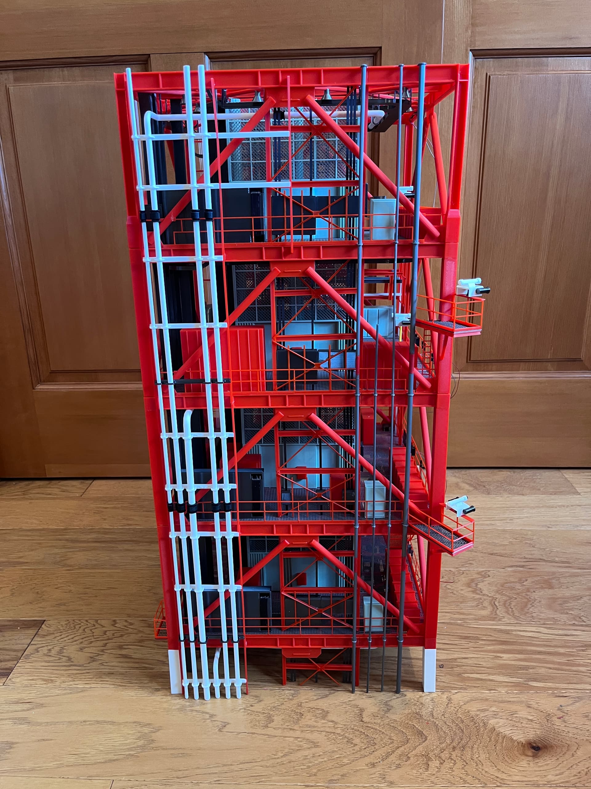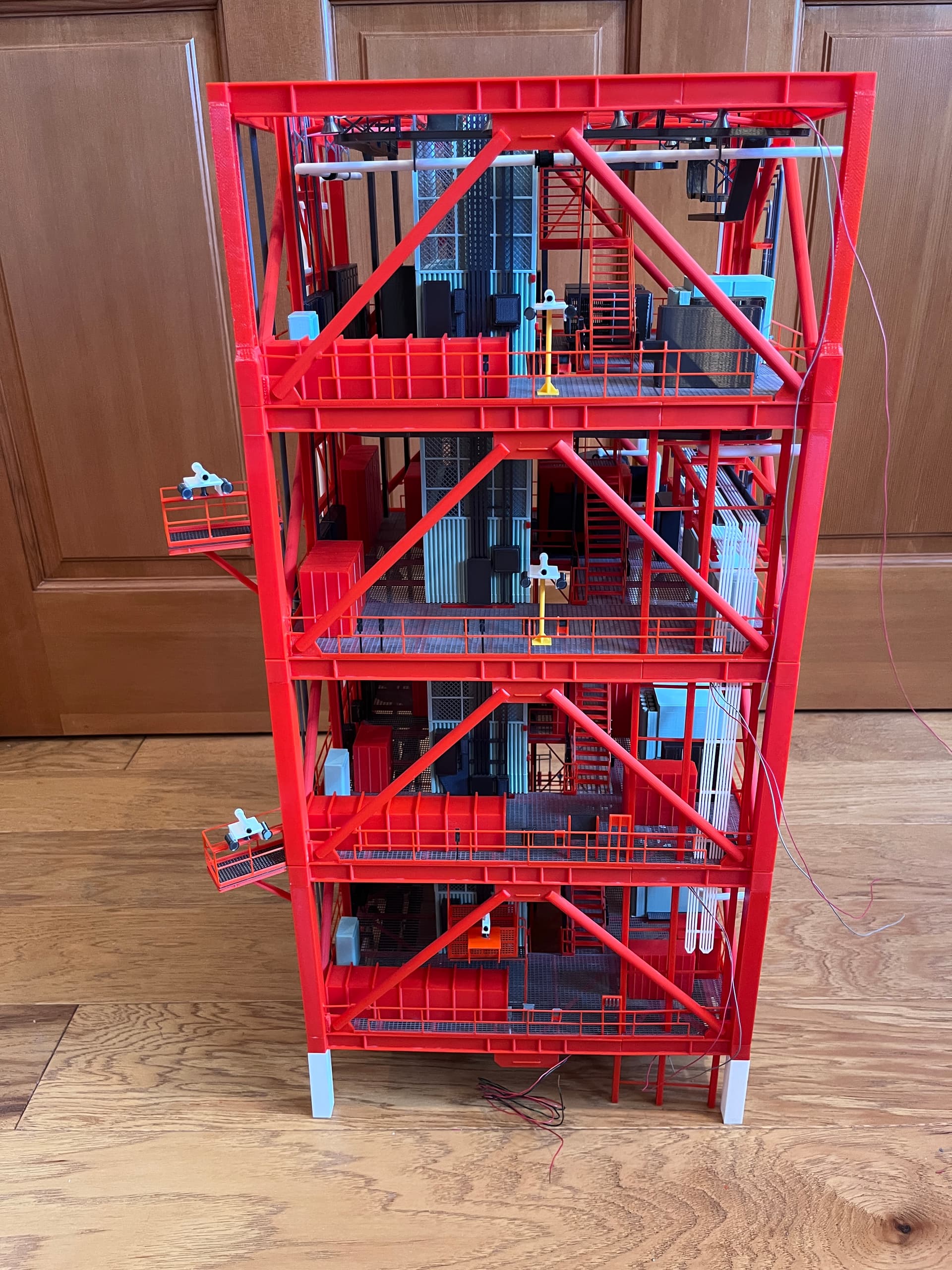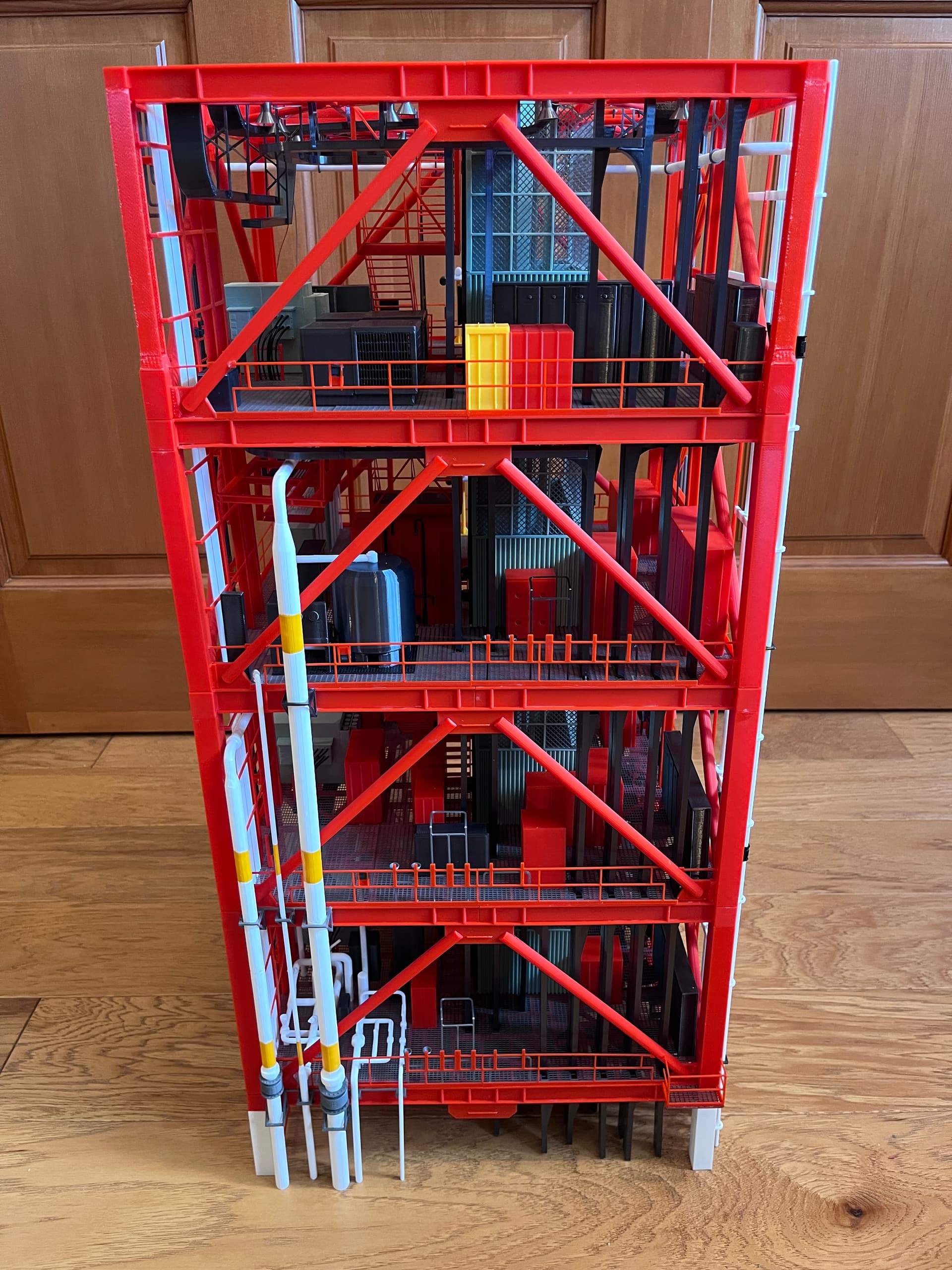 The outer sides are complete except for a few small parts and the swing arms/walkways. Here is side 3. There is a small platform at level 200 which is to access the anemometer antenna. I have not installed that yet because it will be too easy to break off. Here is the antenna.