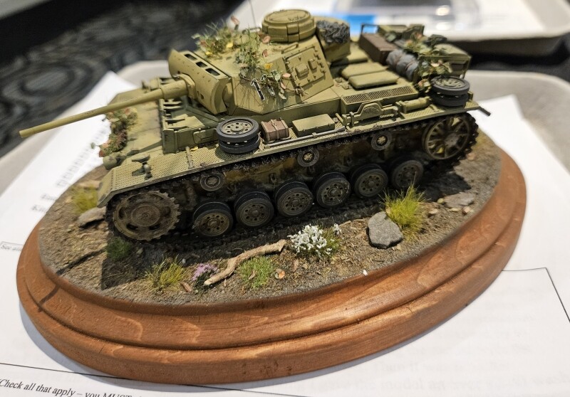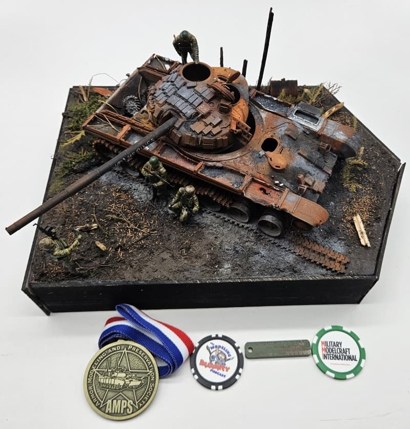 Had a great time at the show this weekend meeting up with buddies and talking models. I ended up with silvers for the KV-2 and Battle of the Bulge diorama and a gold for the T-72 piece. That piece also netted me some challenge coins from the Modeling Insanity Podcast and MMI magazine and a very neat metal piece that on one side says “Battle for Kyiv- T-72” and the other “Made in Russia, Recycled in Ukraine.” I included what struck my fancy-- I left some challenge coins of my own on some pieces.