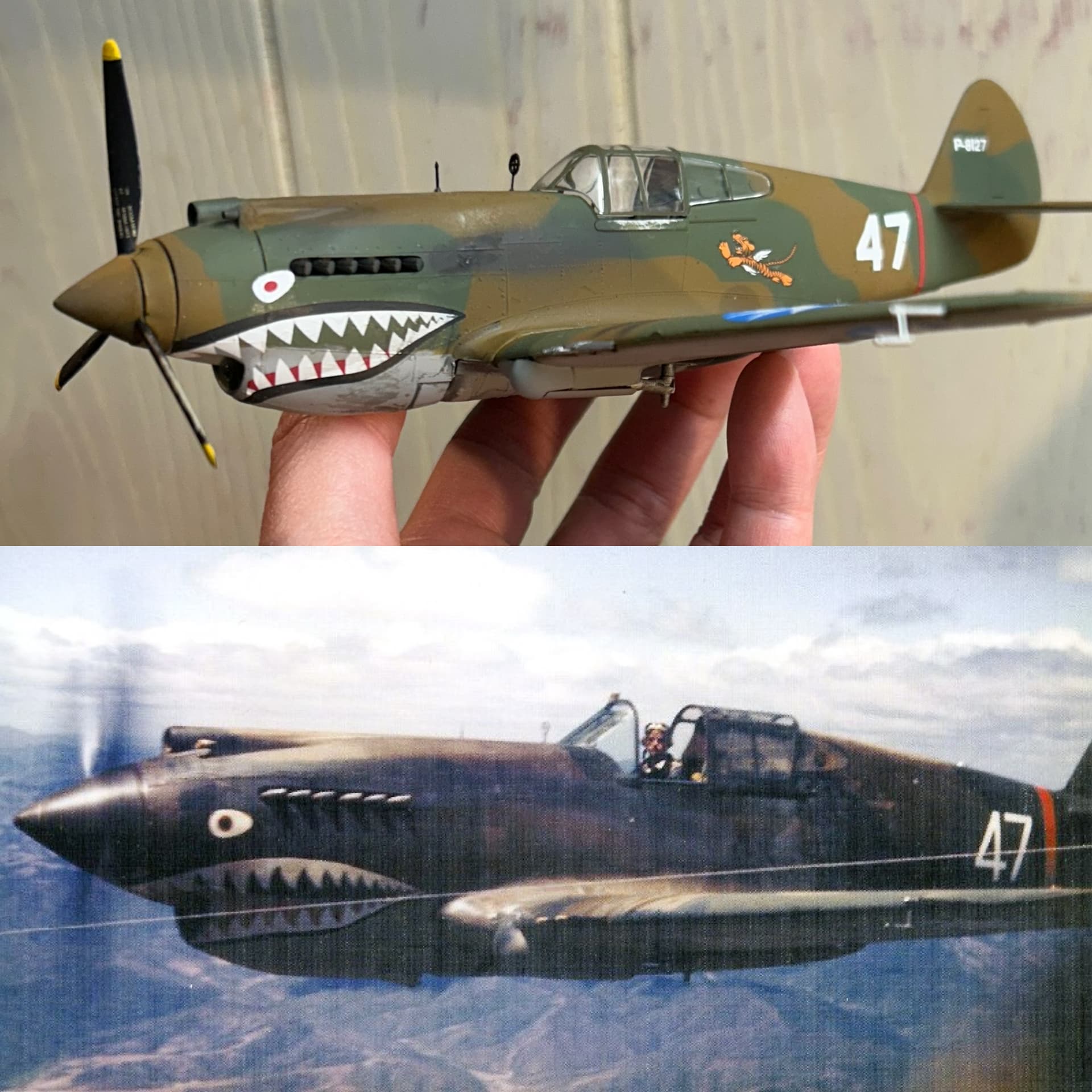 Thanks for being so welcoming everybody! Just finished this Revell P-40B tonight. As everyone knows, it’s an old kit, and not very accurate, but my younger brother bought it for me at Christmas remembering that I built one of these kits when we were kids. I corrected the gunsights to be offset to the right, paintjob is the RAF dark green and dark earth (because the AVG planes were Lend-Lease airframes diverted from the Brits), corrected the markings to show #47, with a red stripe for the 3rd Pursuit Squadron of the American Volunteer Group.