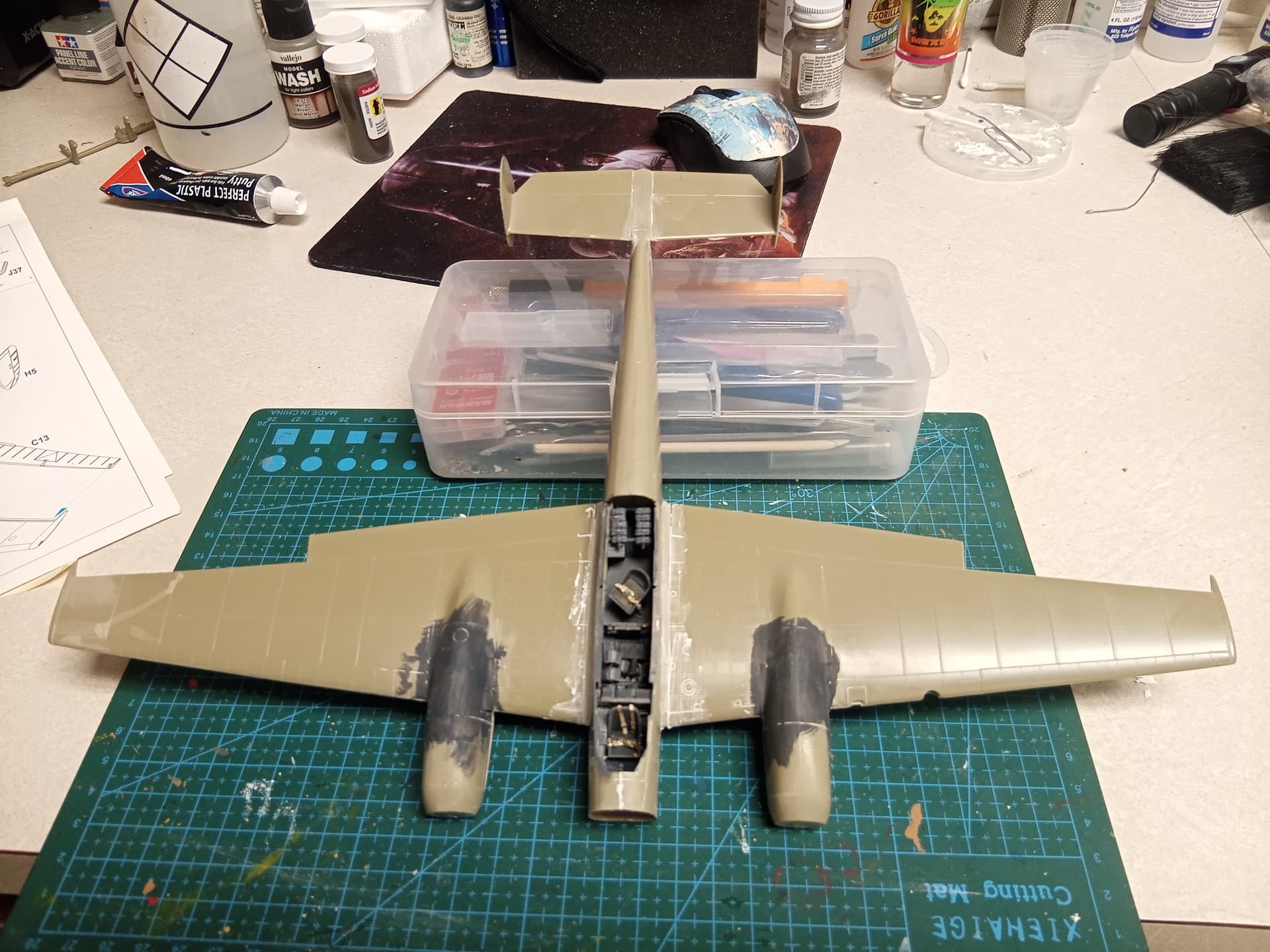 I was finally able to get back to the Beaufort. Summer tends to interrupt my modelling. The last time I posted, I was struggling to attach the engines to the wings due to what I believe is an error in the instructions. I was able to correct that.