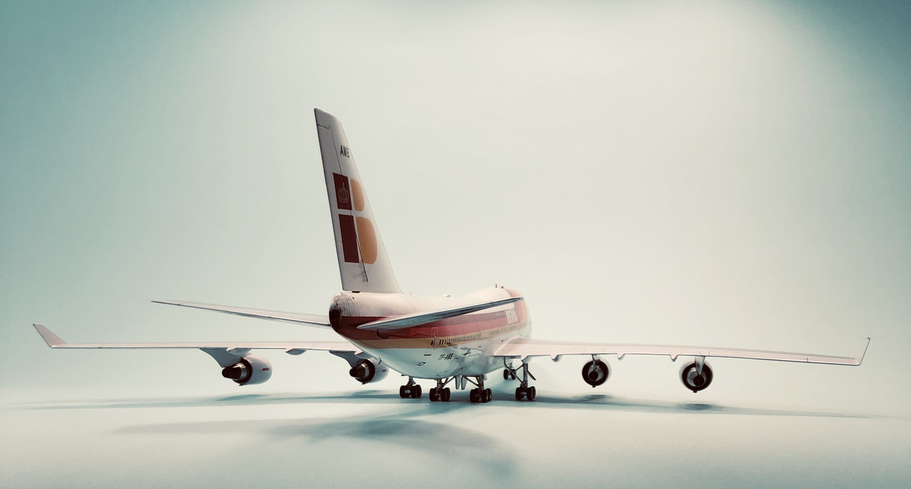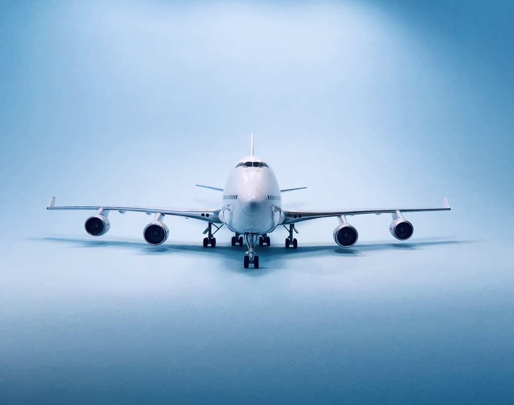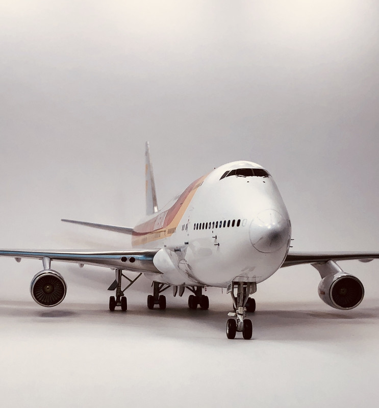 Here is my B747-400 all finished. It was a great build and provided lots of opportunity to work on my modeling skill set: finding ways to strenthen the structure, removing and rescribing panel lines, painting more details in engine intakes, mixing paints and masking curves to paint the stripes, wet sanding and polishing, and weathering. Lots of work, but also lots of fun. Hope you all enjoy.