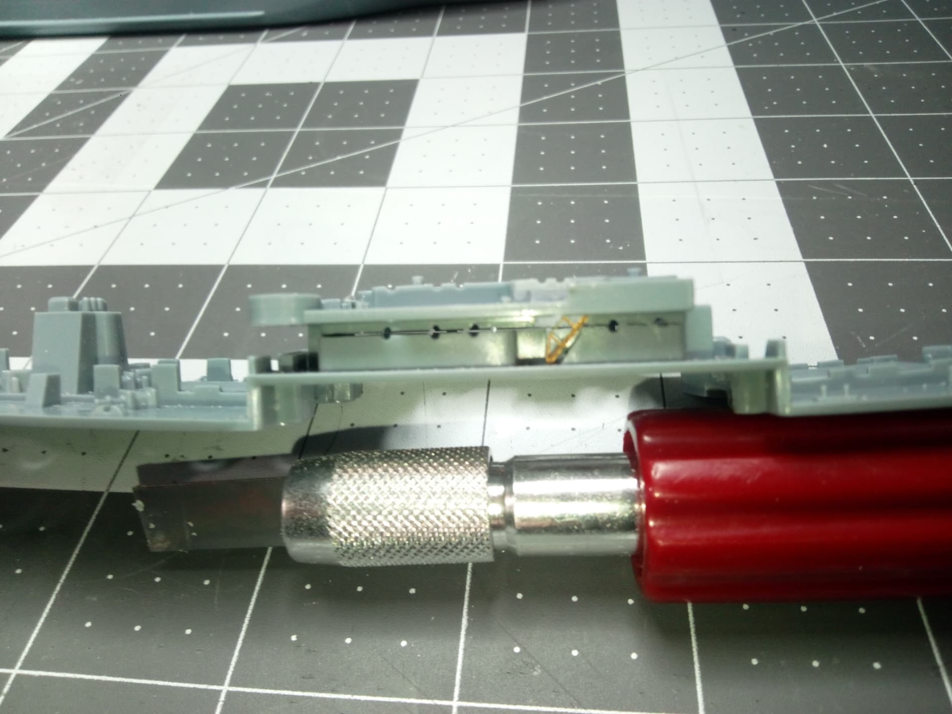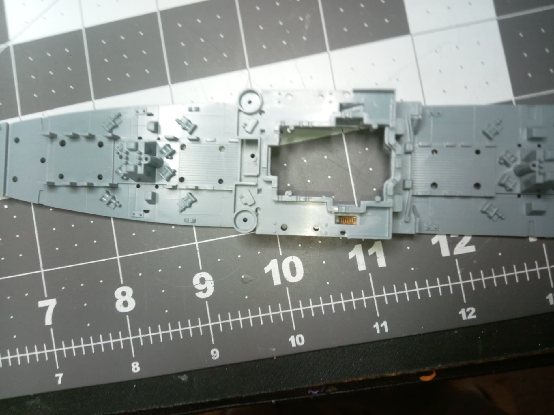 I feel that this has to be removed entirely, not just sanded off. It’s exactly the height and placement of where the pe would go. Frankly, I’m scared to cut this away and possiby damage a scarce model. Cutting may compromise the structure and deck fit. Below is additional photos of the area.