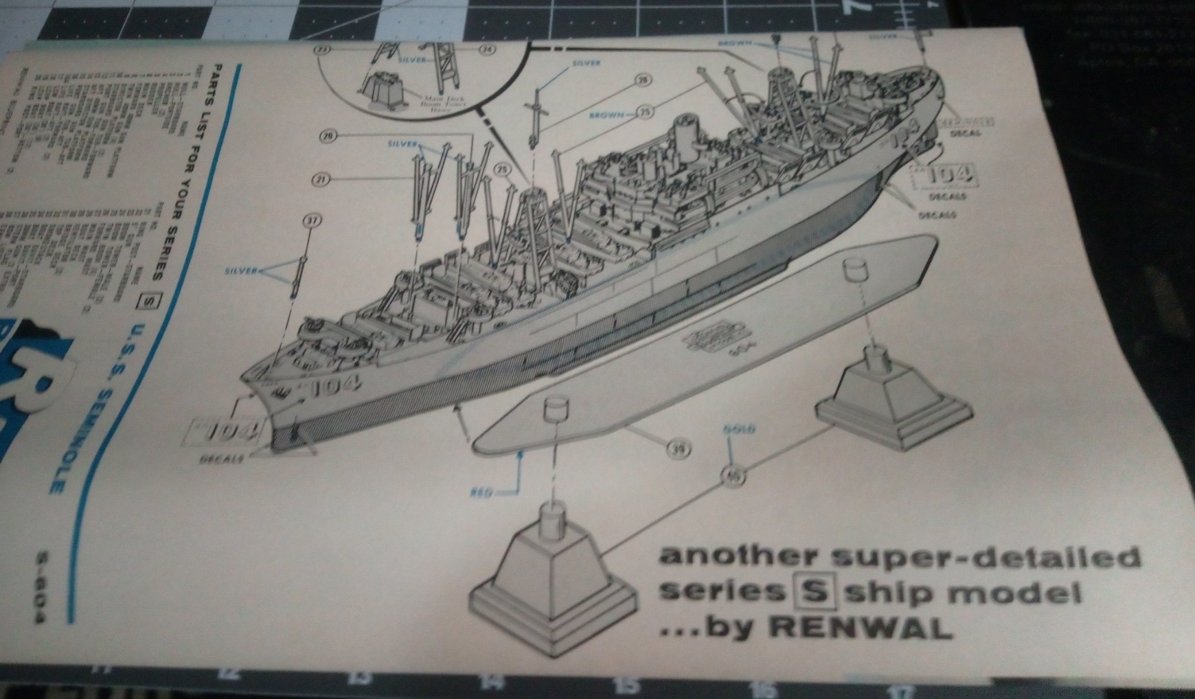 These ships are criminally overlooked by the model manufacturers in my opinion. I was fortunate to score this Vintage Renwal kit on ebay after several attempts. This was all I could find, and I’m not much of a scratch builder. I’ve heard that Atlantis Models in New York have the original molds, and there is a possibility they will be reissuing in the future, but who knows when that will be. Anyway, being made with 1950’s technology it has quirks that you would never see today, like the oddbal 1/500 scale, the 3 piece hull, the superstructure parts split horizontally in the middle, etc.