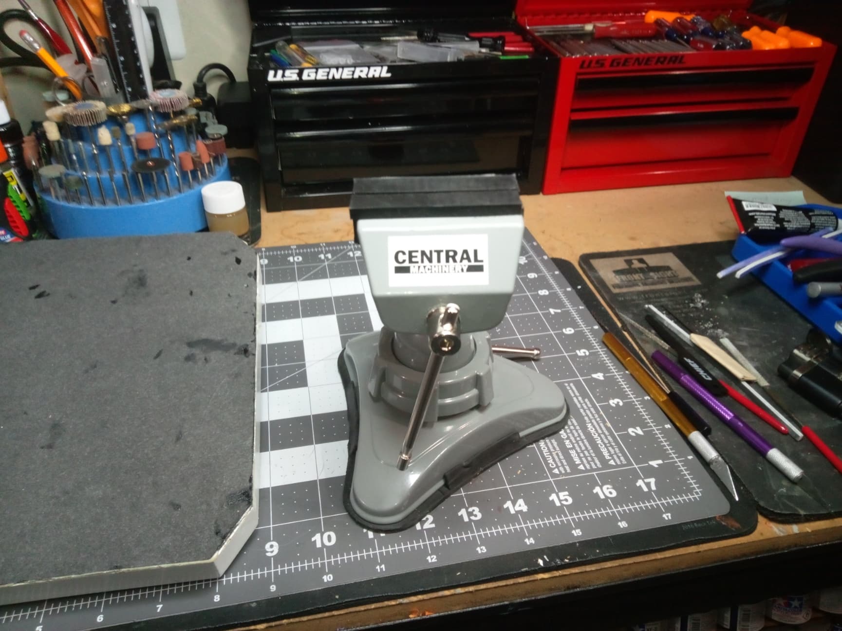 Additionally, I purchased one of their 2-1/2 inch mini vise which paid for itself by holding those towers in place while I trimmed them up. It suctions to the surface it sits on, has soft rubber jaws,