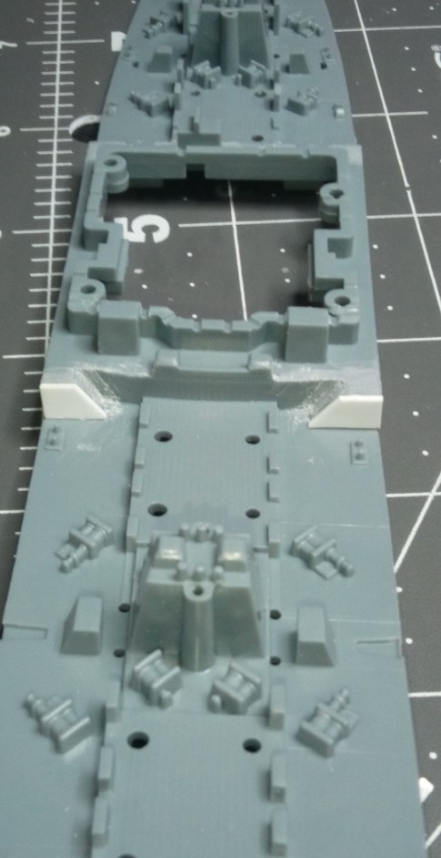 Found an issue. Renwal left out the mast connected to the smokestack that supports the signal mast (and the halyard). Got some scratch building to do. Took awhile to figure out, but I have a plan and will show you how it goes when I get there. Tomorrow I’ll begin installing pe on the main deck, paint the boot stripe, and maybe install the first deck of superstructure. I’ll also begin prepping all the landing craft for paint. Not sexy work by any means, but things will progress faster now, at least until the rigging phase. Until next time…happy modeling!