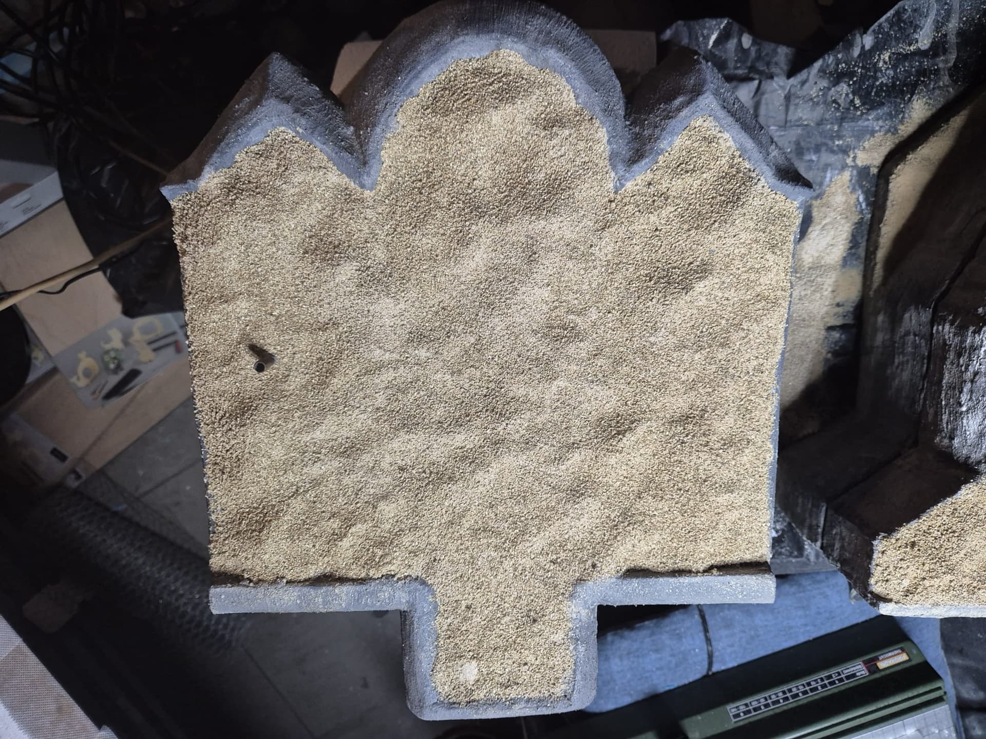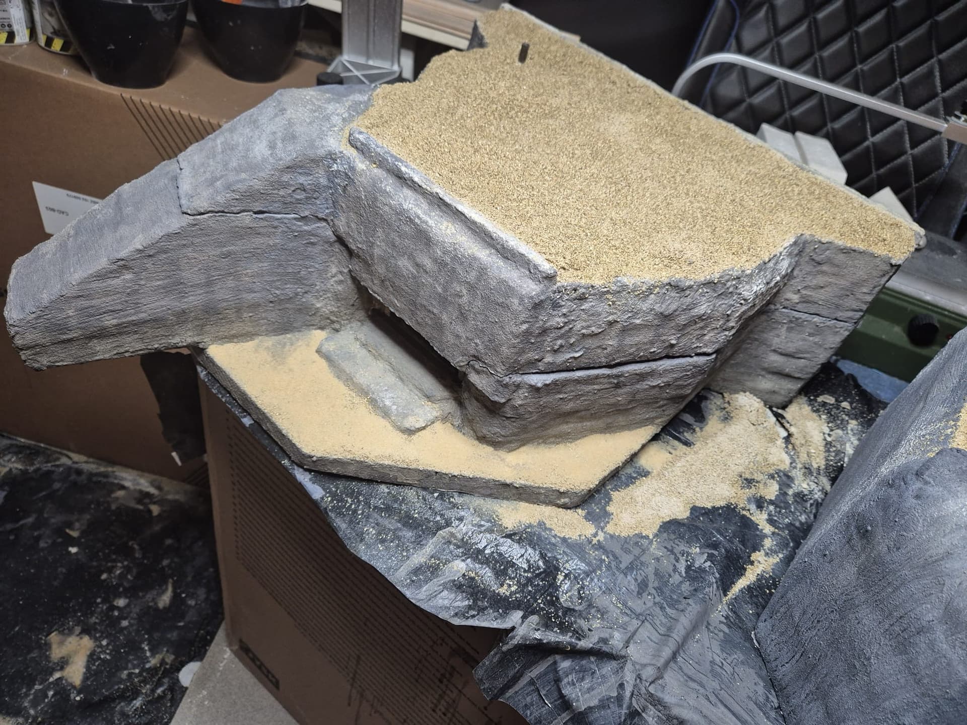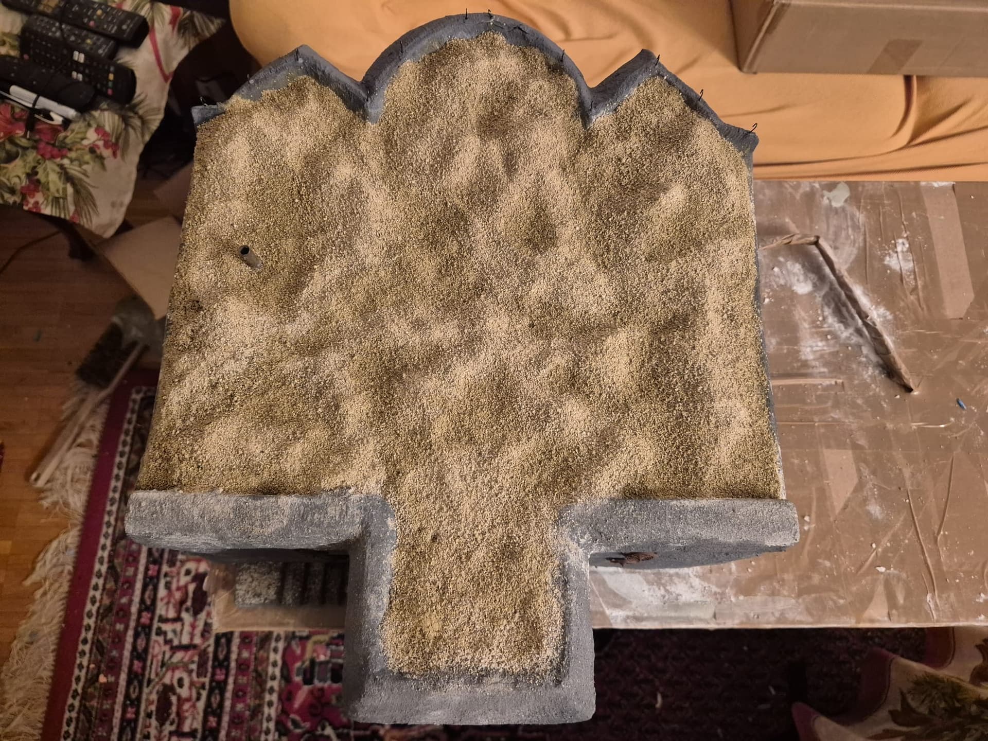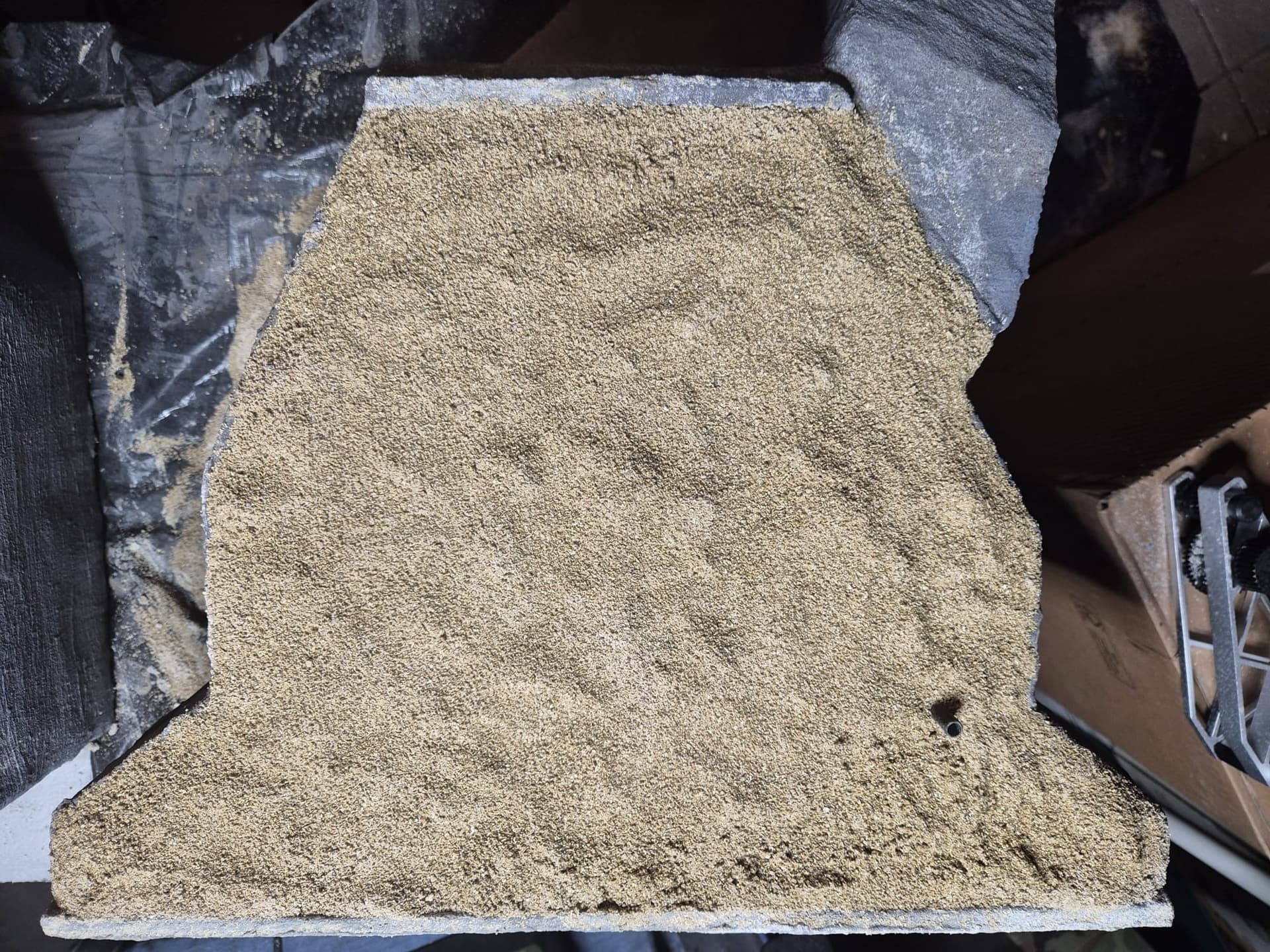 I also added more of the Mold-A-Scene to the front platform and sprayed it as before. On top of it I distributed real sand and once again fixed it with the same glue.