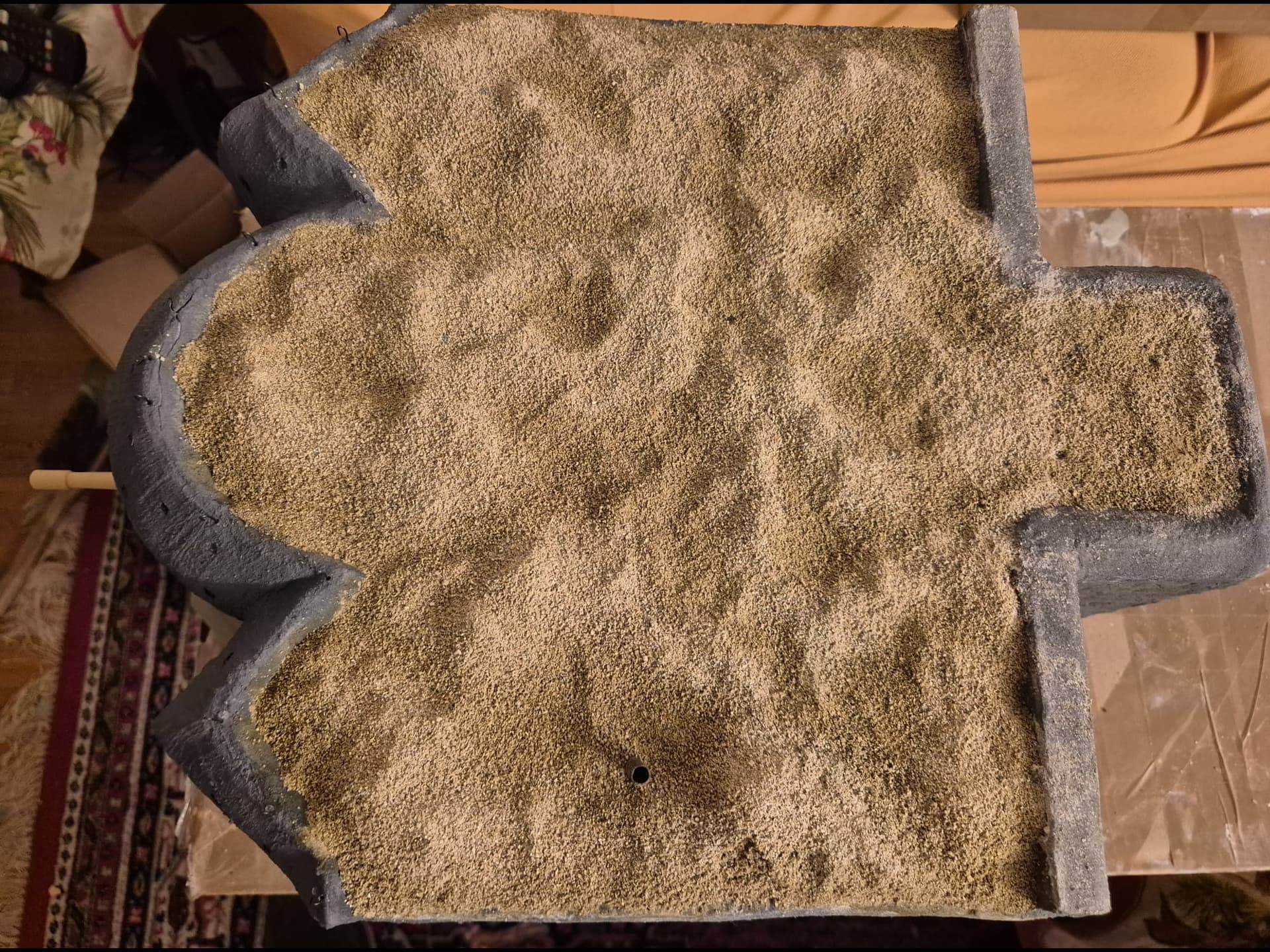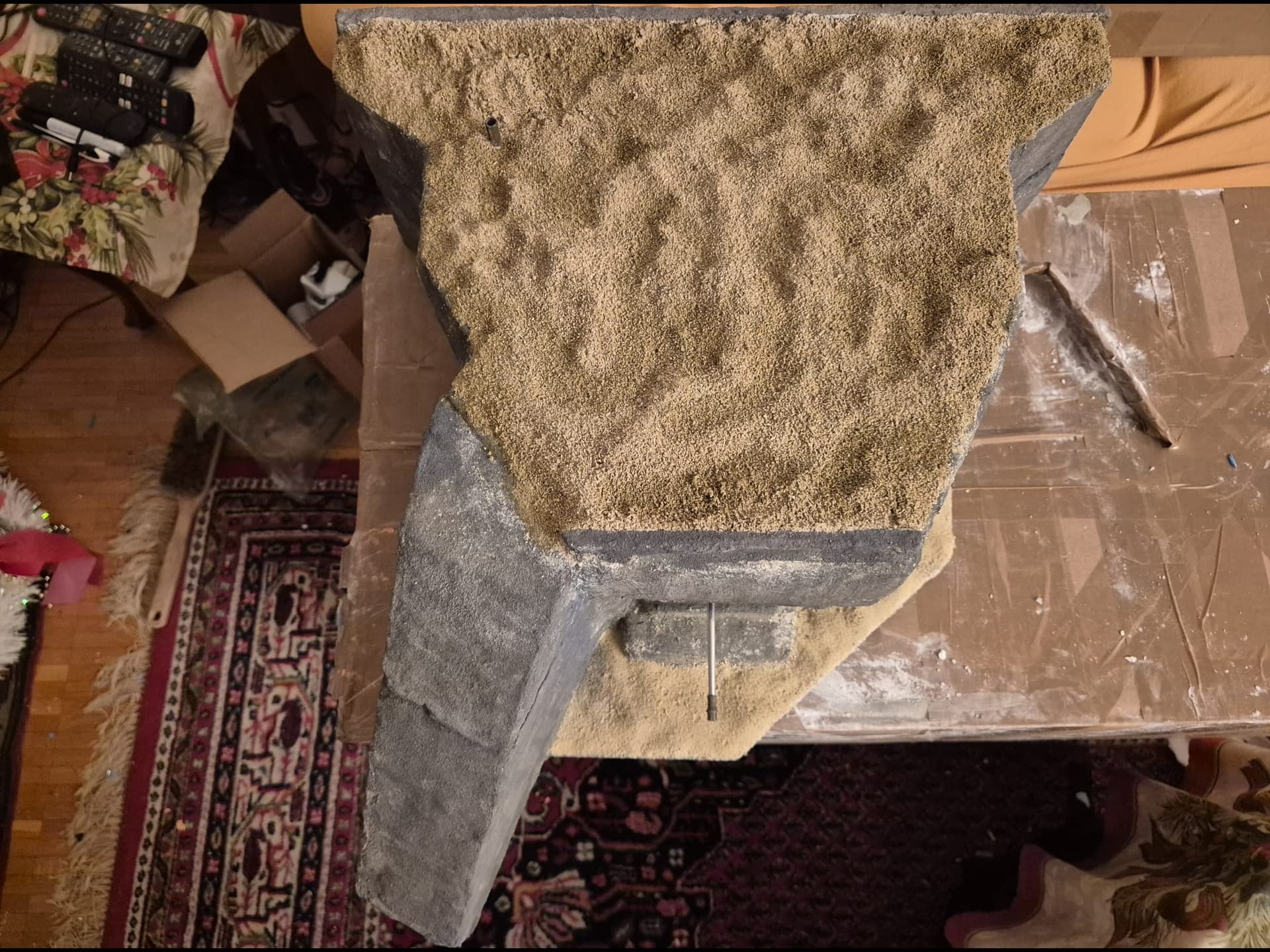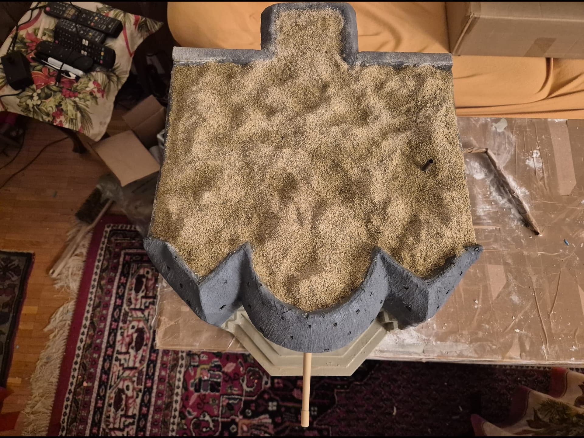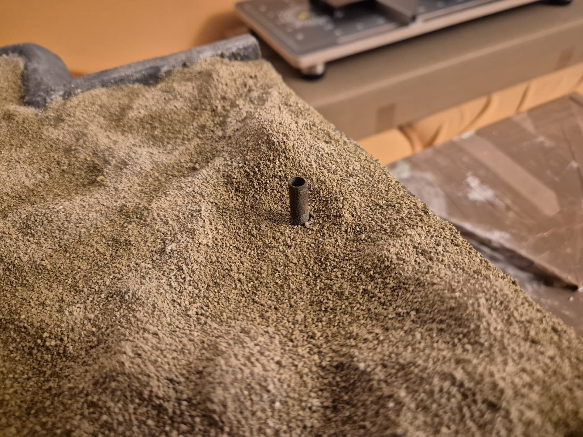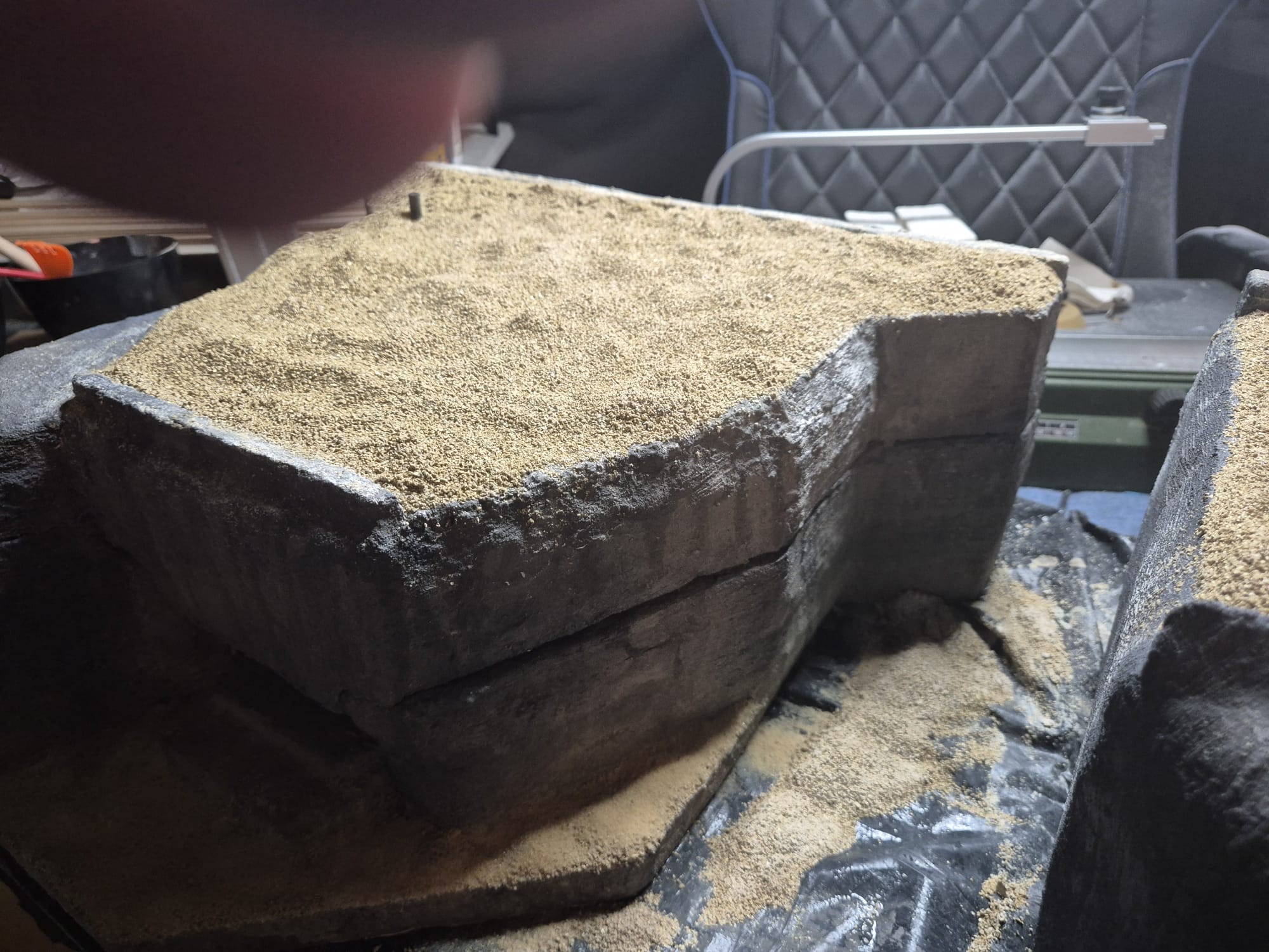 I also added more of the Mold-A-Scene to the front platform and sprayed it as before. On top of it I distributed real sand and once again fixed it with the same glue.