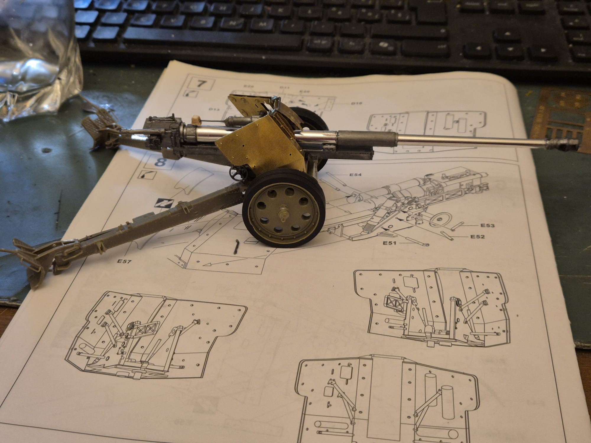 Only after that work is finished will I dedicate my full attention to both guns. While the 150mm naval gun is already in its own casemate, the PAK43/41 88mm AT gun needs some more tiny pieces to be added and its final shield mounted, which will take a while, due to the microscopic bolts that compose it holding two shields together.